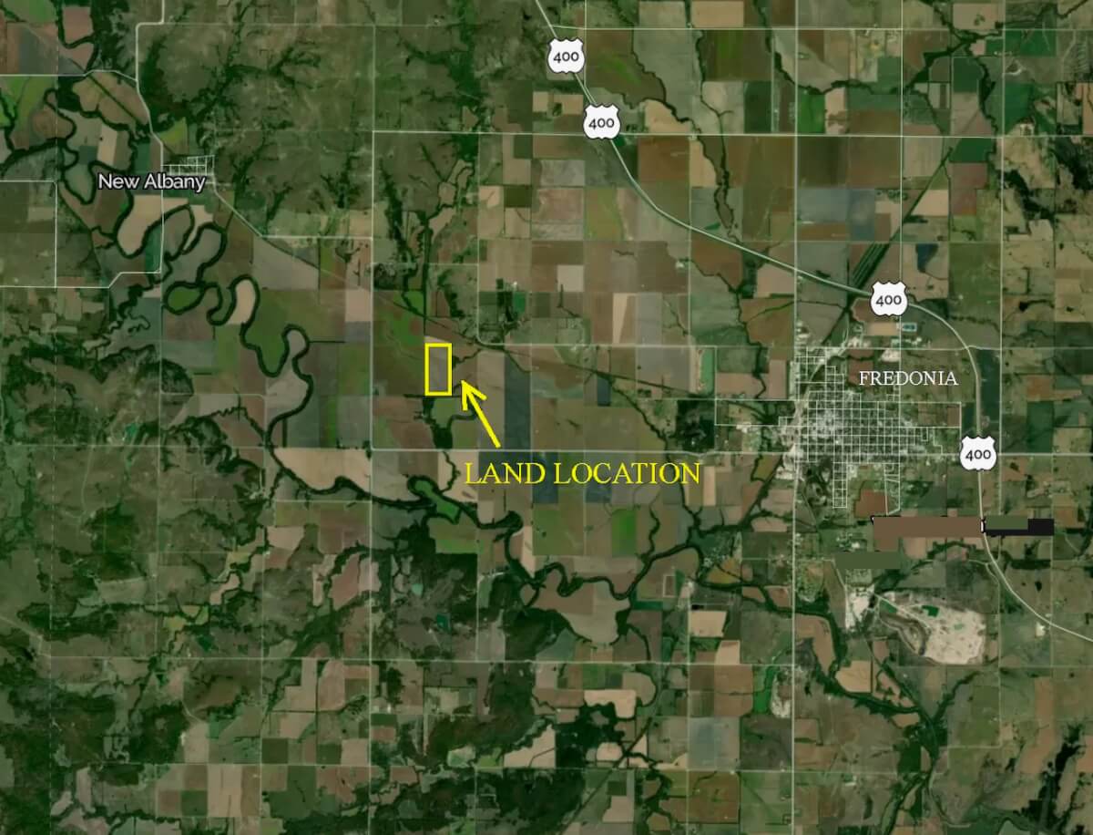 LAND LOCATION: From HWY 400 at the northwest edge of Fredonia, south on Harper Rd (2nd St) 3/4 mile to 1200 Rd., west on 1200 Rd 3 1/4 mile. The last 1/4 mile is an unmaintained path through a neighboring property. See maps for details.