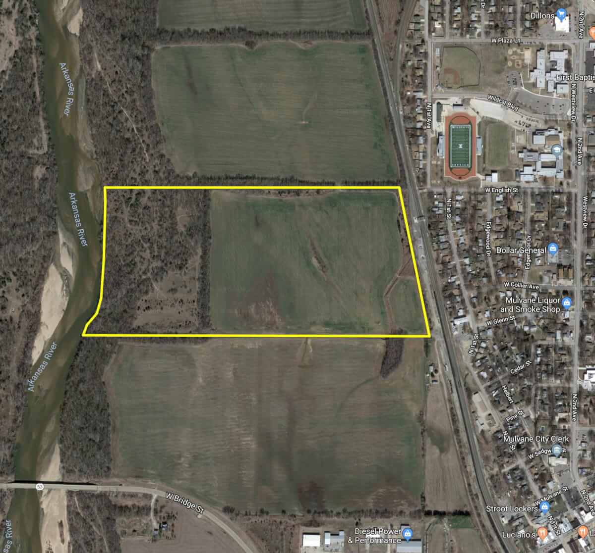 LAND LOCATION: From K-15 and 2nd(Rock Rd), south on 2nd(Rock Rd) to English, west on English to 1st, south on 1st to the entrance to Mulvane Parks Department. Property is immediately west of the Parks Department, across the train tracks. Call Sundgren Realty at 316-321-7112 for more details.