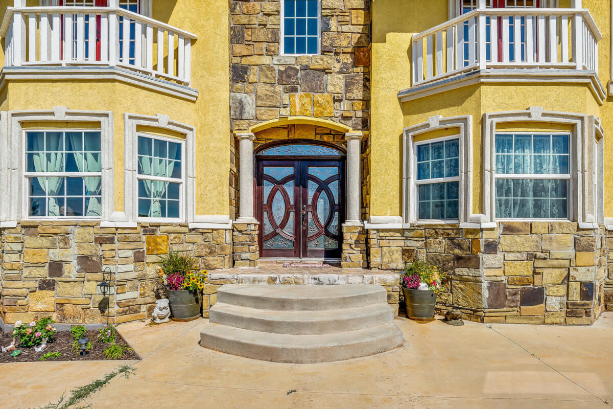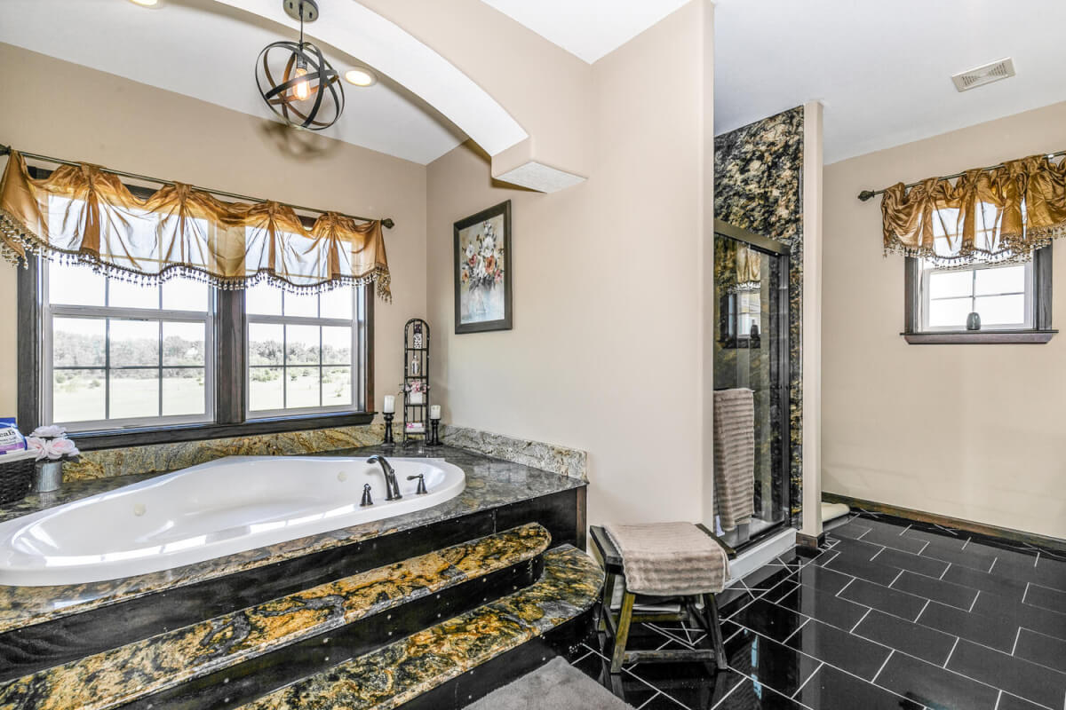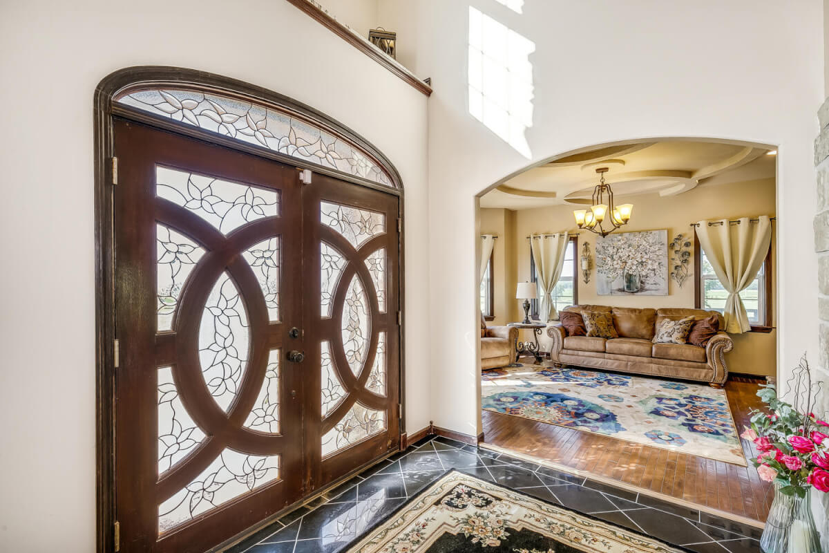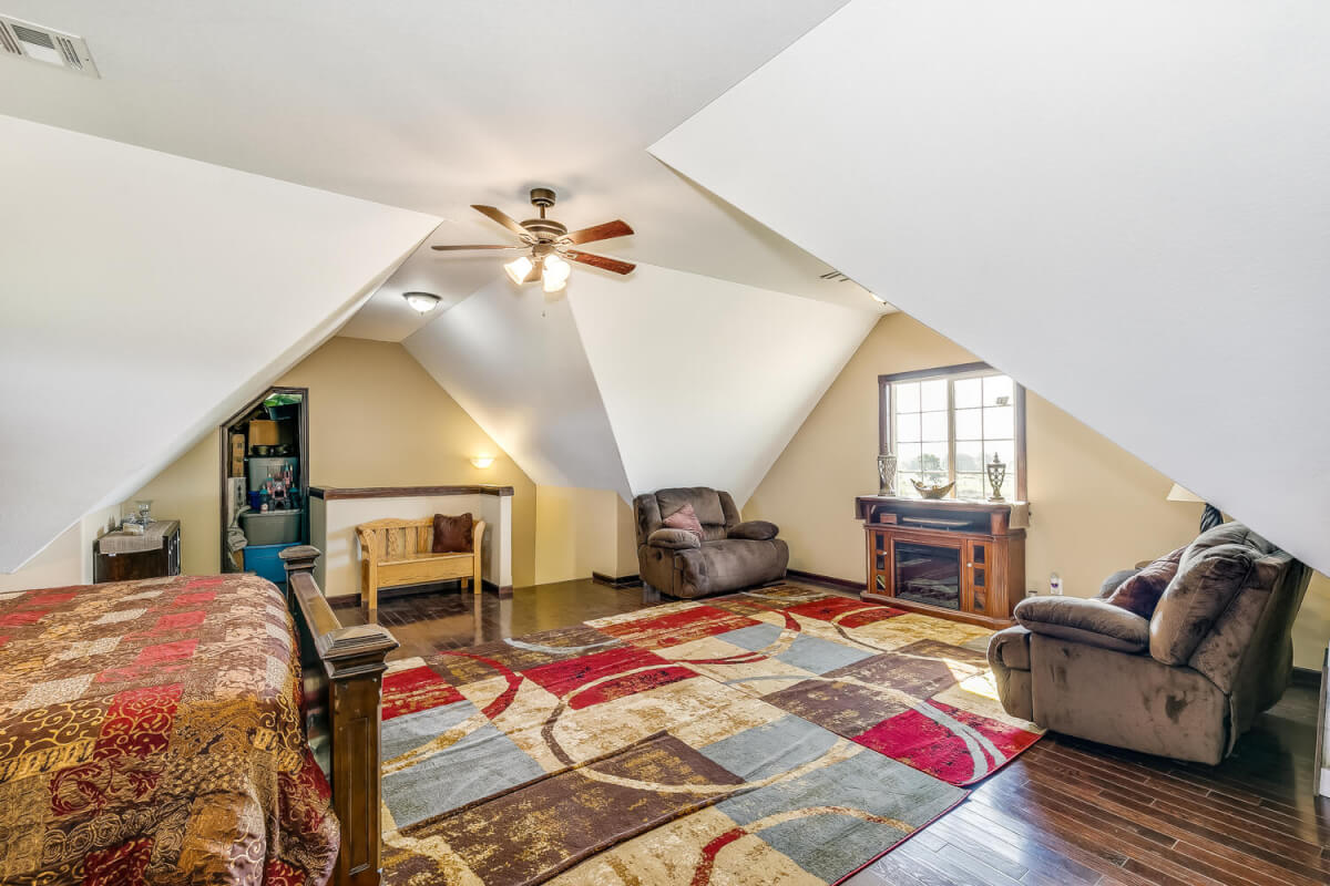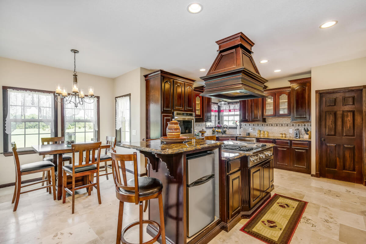 PROPERTY DESCRIPTION: This sprawling home on 58 +/- acres near Murdock, Kansas, is just 40 minutes from the Wichita airport! The impressive home has over 5,500 square feet, has 6 bedrooms, 4 full bathrooms, and 2 half baths, plus an attached oversized 3 car garage with a drive through overhang. The beautiful stucco and masonry siding, and the tile roof are very complimentary of each other. Walking through the front door, you will immediately notice the gorgeous stone archway, a hearth room with wood burning fireplace to your left, and a formal dining room to your right. Keep going straight past the stairway to enter into the living room on your left, with another wood burning fireplace, and the huge kitchen with tons of seating area on your right. The floors are mainly hardwood throughout, with touches of marble flooring in the entry and hallway, and tile in the kitchen. The kitchen has granite countertops, a pantry, a double door stainless steel refrigerator, an island, and a desk. Upstairs, the beauty continues with four bedrooms and three baths, and a gorgeous ensuite bathroom with separate jetted tub, walk-in shower and granite counters. Down in the walk-out basement is two more bedrooms and a bath, plus a beautiful dry bar with more stone features. Walking out back from the basement, you will notice the two-level deck and the gazebo. Even though the pictures are beautiful, they do not do this home justice. You must see this property in person to truly appreciate its uniqueness and beauty!