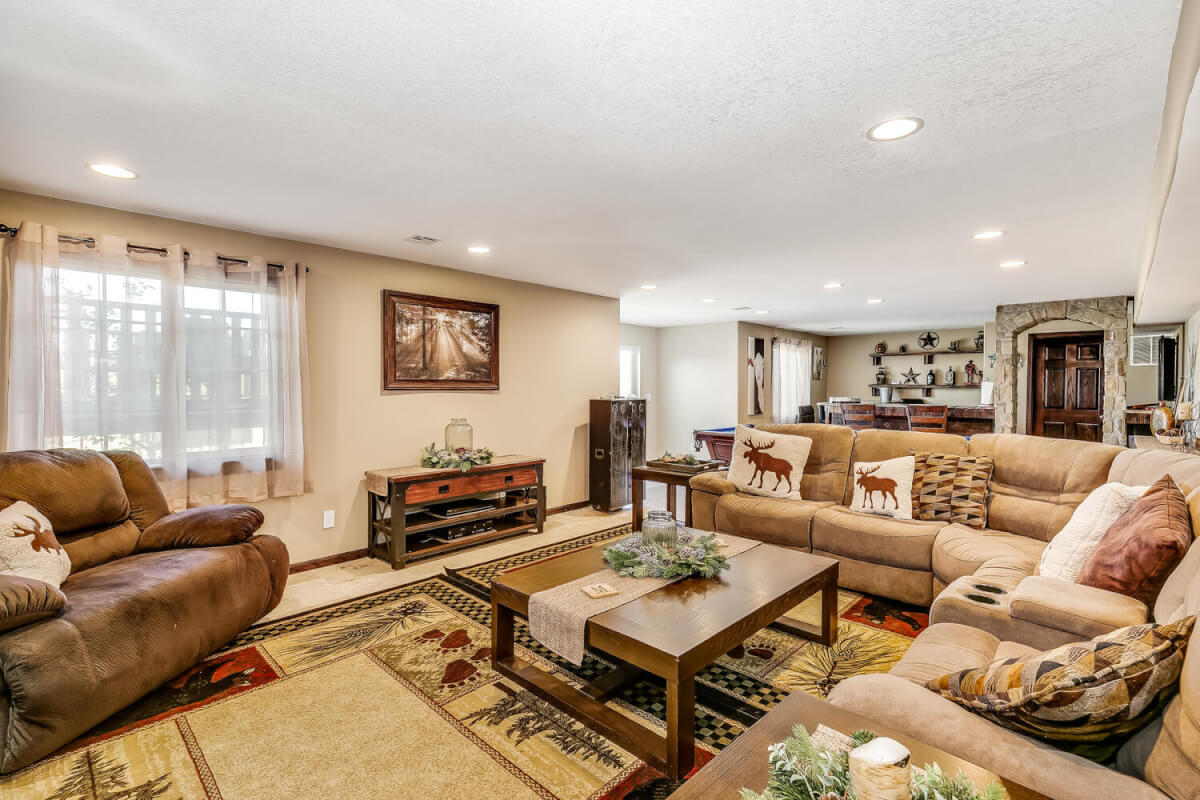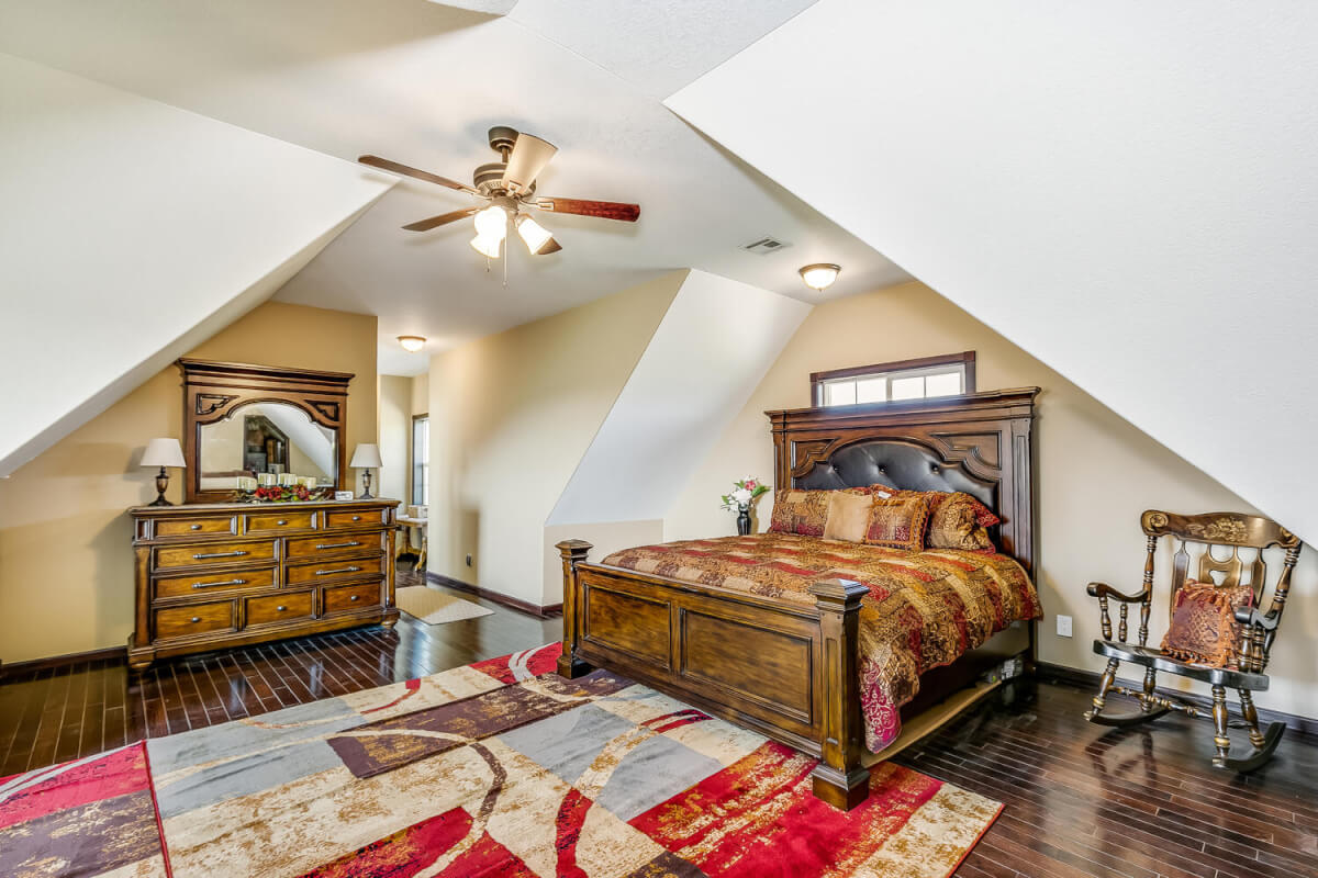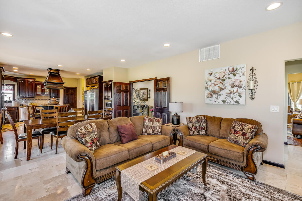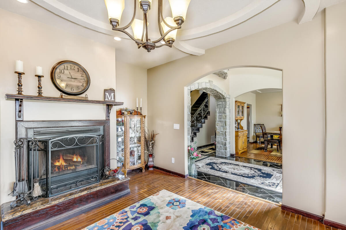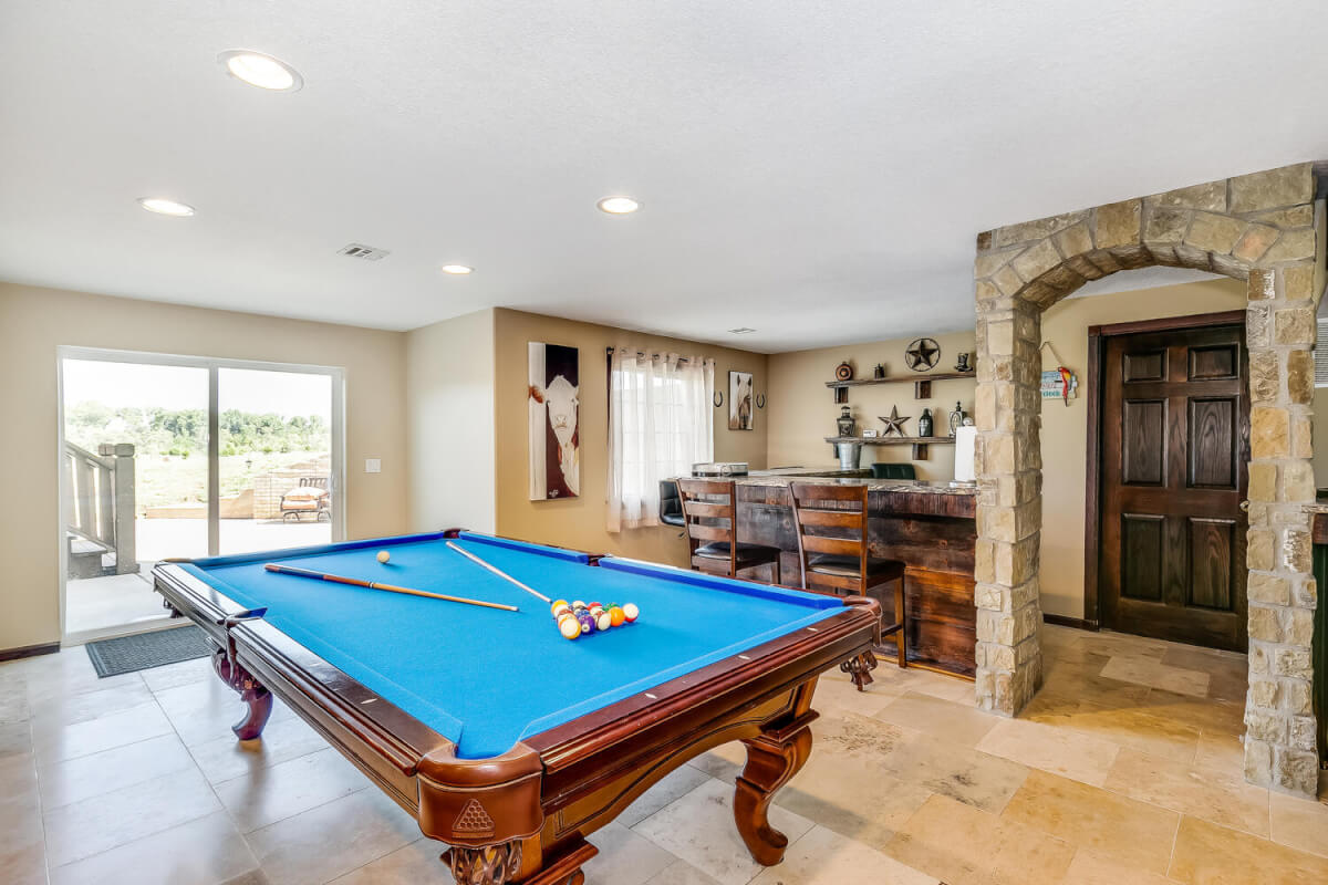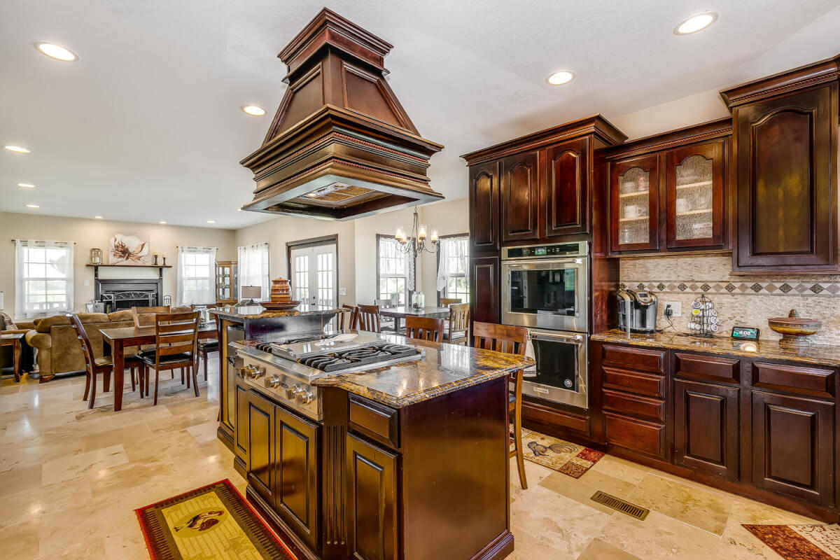 PROPERTY DESCRIPTION: This sprawling home on 58 +/- acres near Murdock, Kansas, is just 40 minutes from the Wichita airport! The impressive home has over 5,500 square feet, has 6 bedrooms, 4 full bathrooms, and 2 half baths, plus an attached oversized 3 car garage with a drive through overhang. The beautiful stucco and masonry siding, and the tile roof are very complimentary of each other. Walking through the front door, you will immediately notice the gorgeous stone archway, a hearth room with wood burning fireplace to your left, and a formal dining room to your right. Keep going straight past the stairway to enter into the living room on your left, with another wood burning fireplace, and the huge kitchen with tons of seating area on your right. The floors are mainly hardwood throughout, with touches of marble flooring in the entry and hallway, and tile in the kitchen. The kitchen has granite countertops, a pantry, a double door stainless steel refrigerator, an island, and a desk. Upstairs, the beauty continues with four bedrooms and three baths, and a gorgeous ensuite bathroom with separate jetted tub, walk-in shower and granite counters. Down in the walk-out basement is two more bedrooms and a bath, plus a beautiful dry bar with more stone features. Walking out back from the basement, you will notice the two-level deck and the gazebo. Even though the pictures are beautiful, they do not do this home justice. You must see this property in person to truly appreciate its uniqueness and beauty!