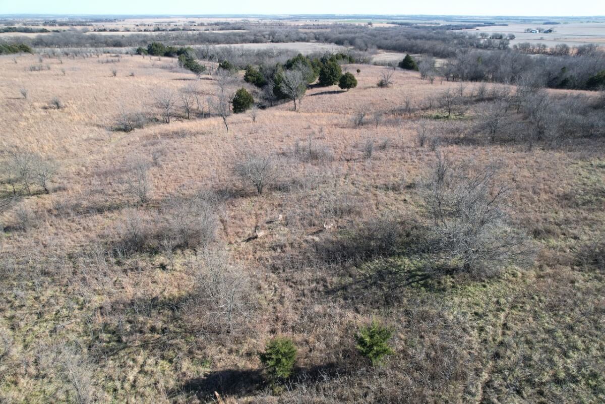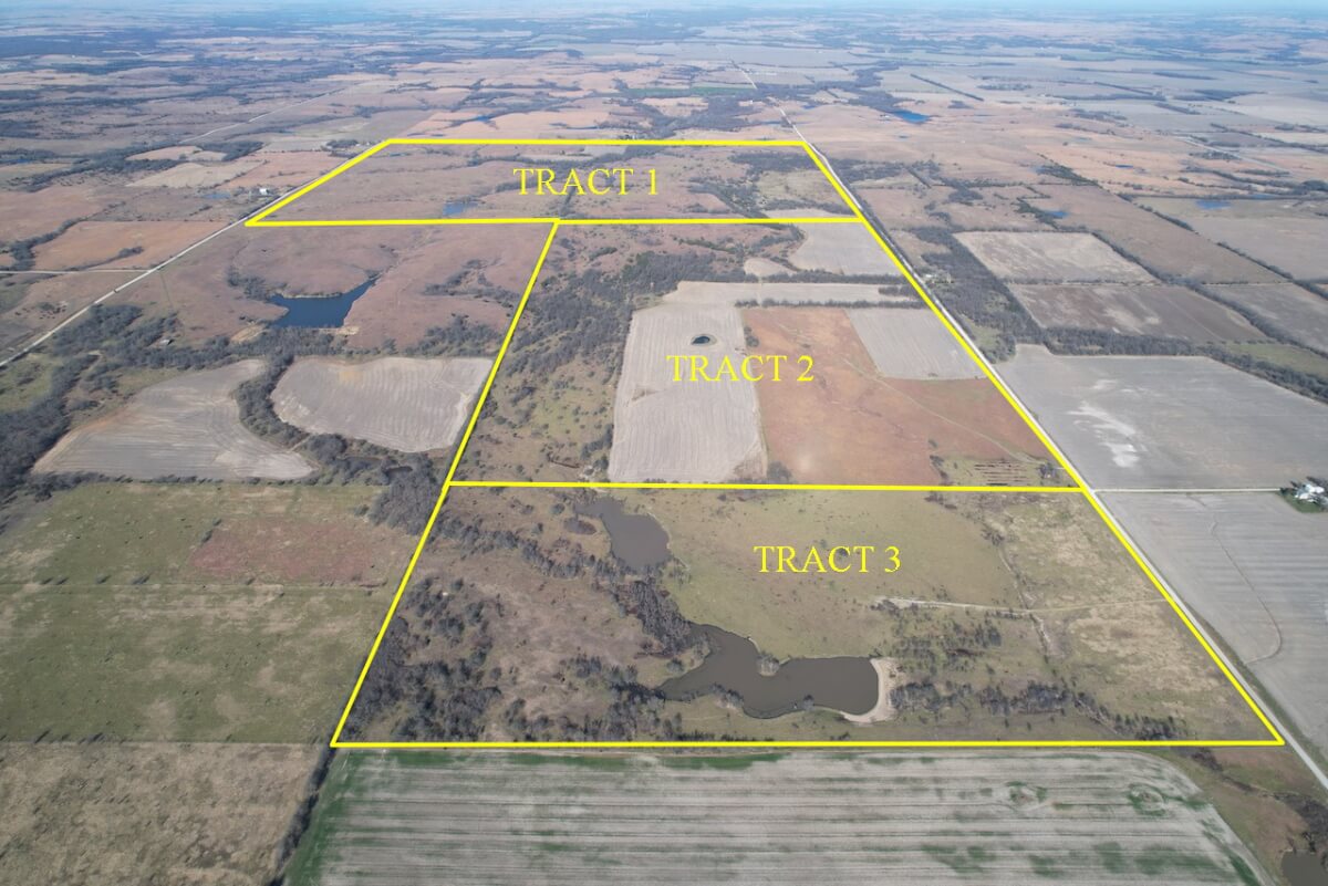 TRACT 2 PROPERTY DESCRIPTION: 240+- acres of tillable farm ground, pasture, and wildlife habitat located northwest of Fredonia in Wilson County, Kansas. Access is provided by township gravel road along the west boundary of the property, less than 1 mile from blacktop. There are approximately 87 acres of tillable farm ground, 47 acres of hay meadow, 3 small ponds, and some exceptionally good habitat for Kansas Whitetail Deer.