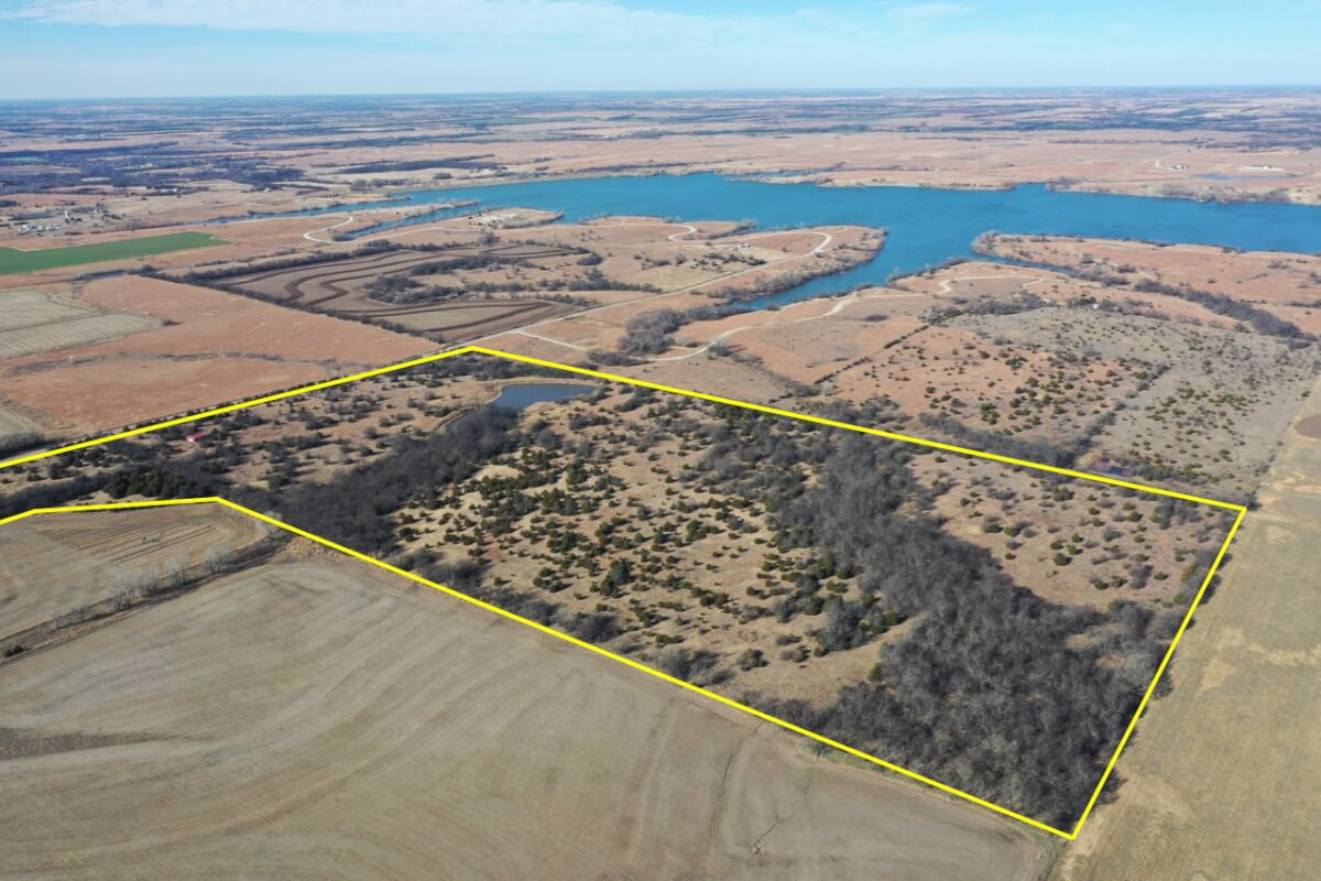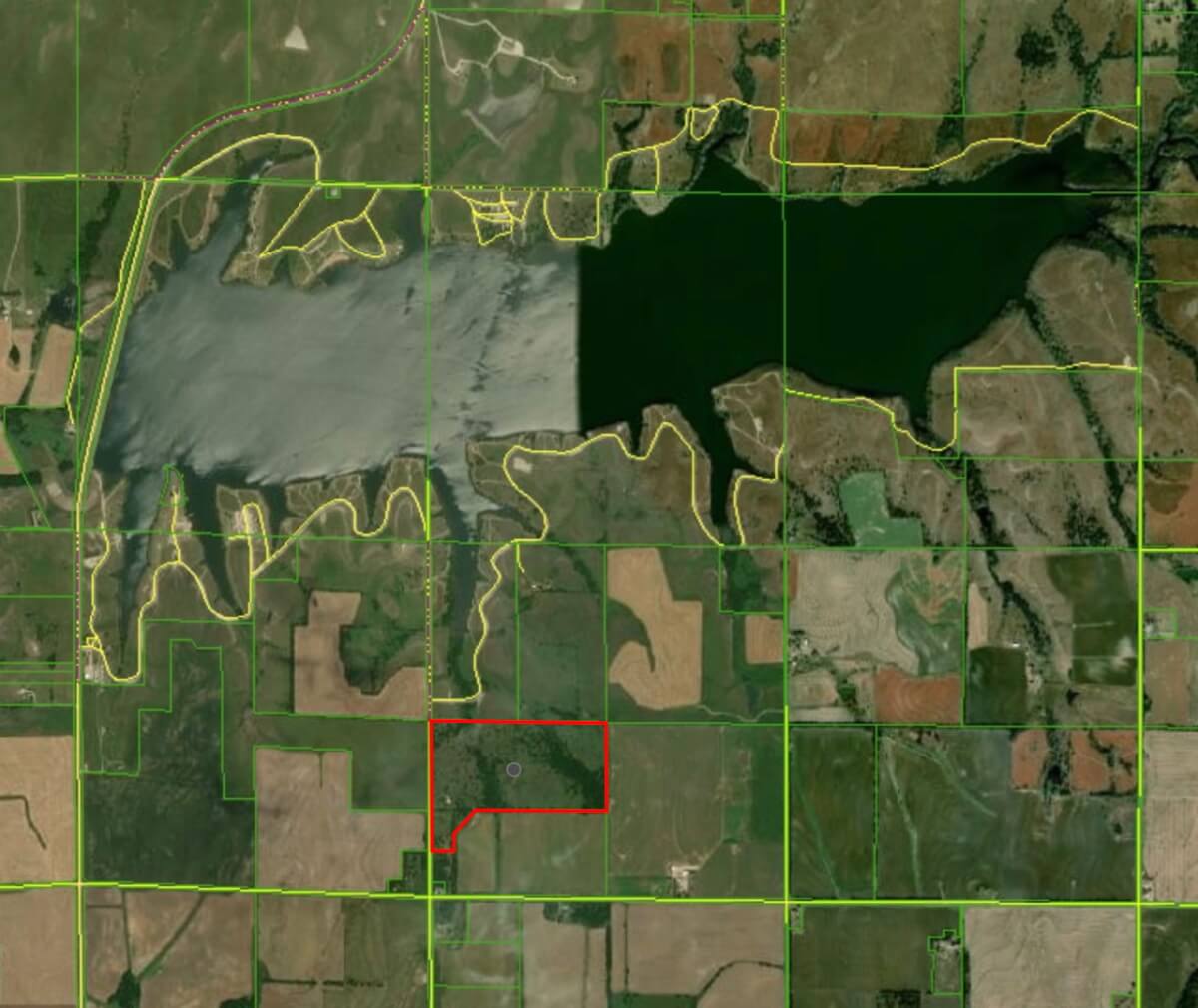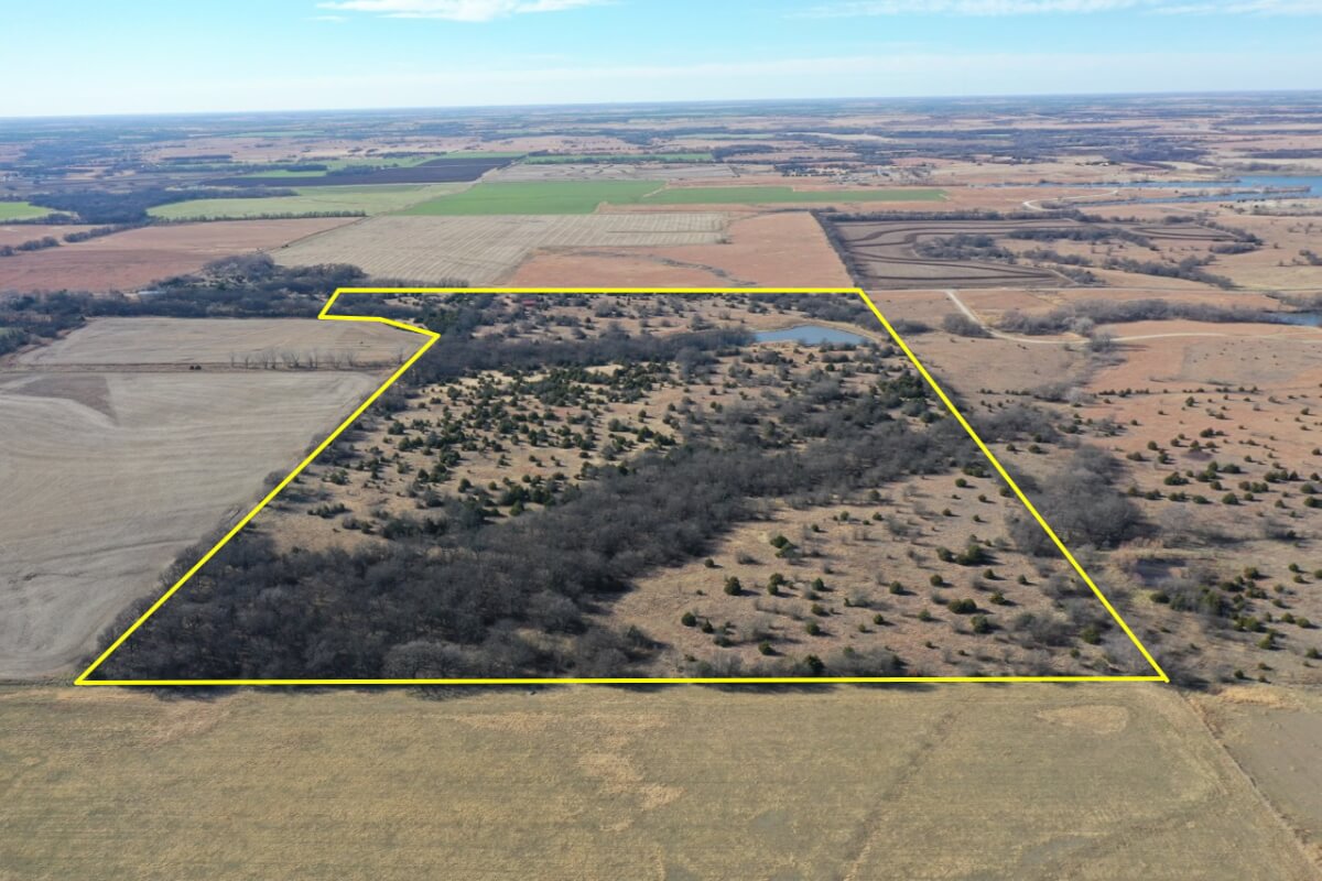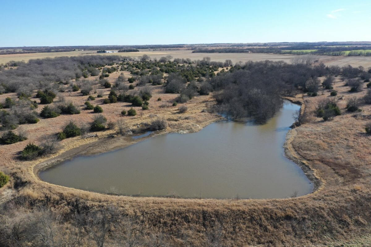 PROPERTY DESCRIPTION: 86.8 acres of heavy timber, brush, and native pasture with a 2 acre pond and a 40′ x 30′ metal building located immediately south of Winfield City Lake. The building has a concrete floor. You’ll be hard pressed to find better Kansas Whitetail Deer hunting. This property has everything they need; cover, water, and farm feed fields next door. Blacktop frontage and a dead end road give good access with adequate privacy. Invest In Land!