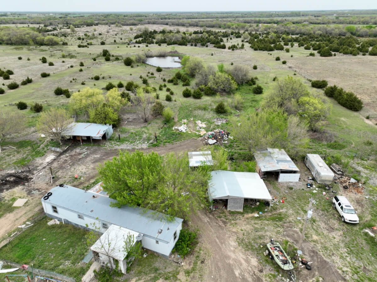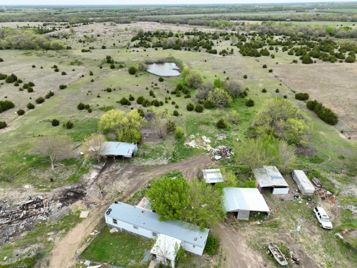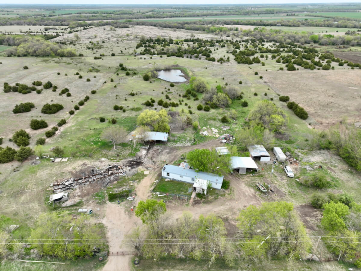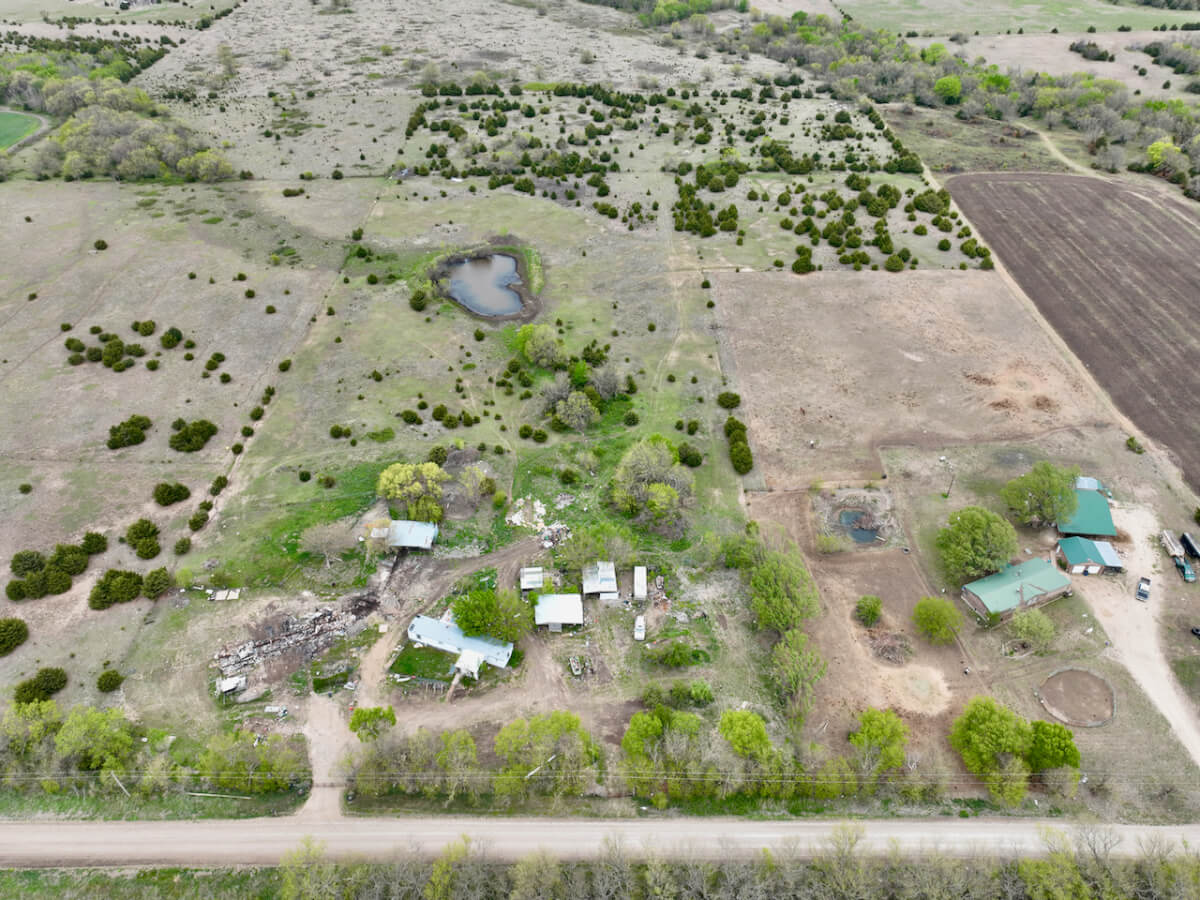 PROPERTY DESCRIPTION: Unique opportunity to purchase a buildable 18+- acres between El Dorado and Rosalia with utilities. Options for this property include building a new home, barn home, utilizing the current structures, or moving on new trailers. There is currently a 68′ x 14′ single wide trailer house located on the property that was built in 1995, plus the frame to an additional single wide trailer house. With current Butler County zoning, rarely do you find a property that 2 single wide trailer houses are allowed, like is the case here. That situation is grandfathered in with the county, call Sundgren Realty for more specific details. There is a nice pond in the center of property with good water, in spite of the current drought we are experiencing in the area. Utilities include water provided by Rural Water #3, electric, and a lagoon.
