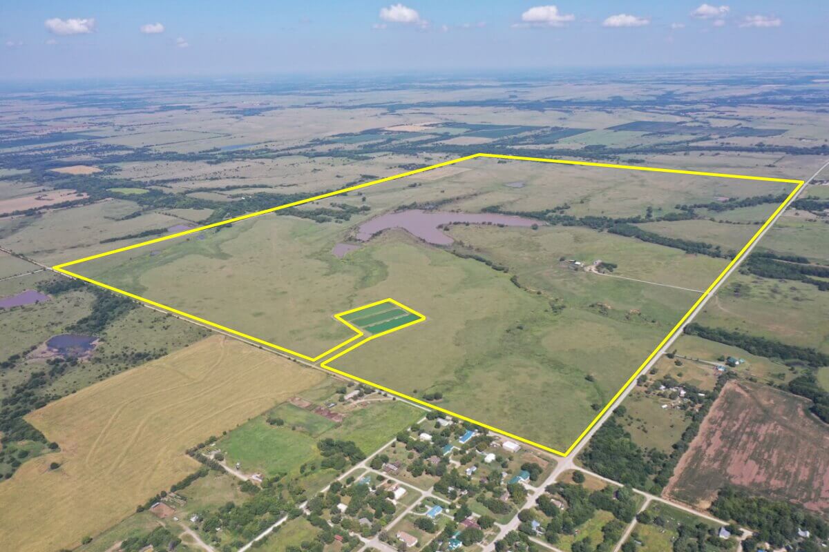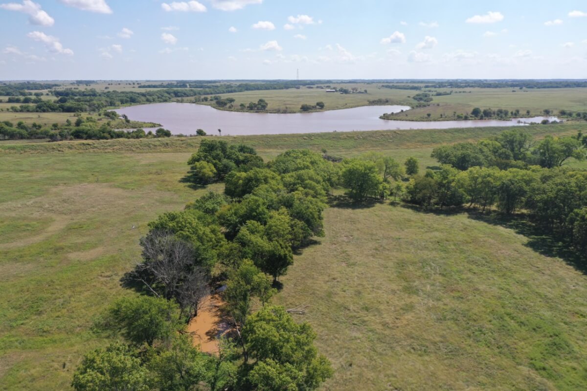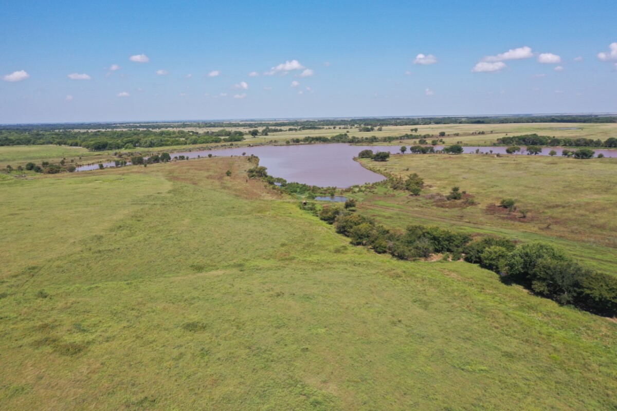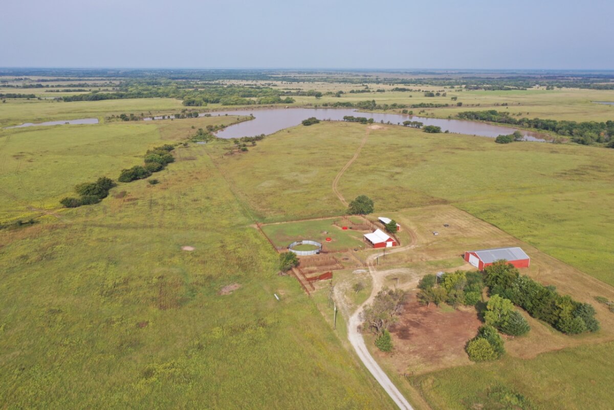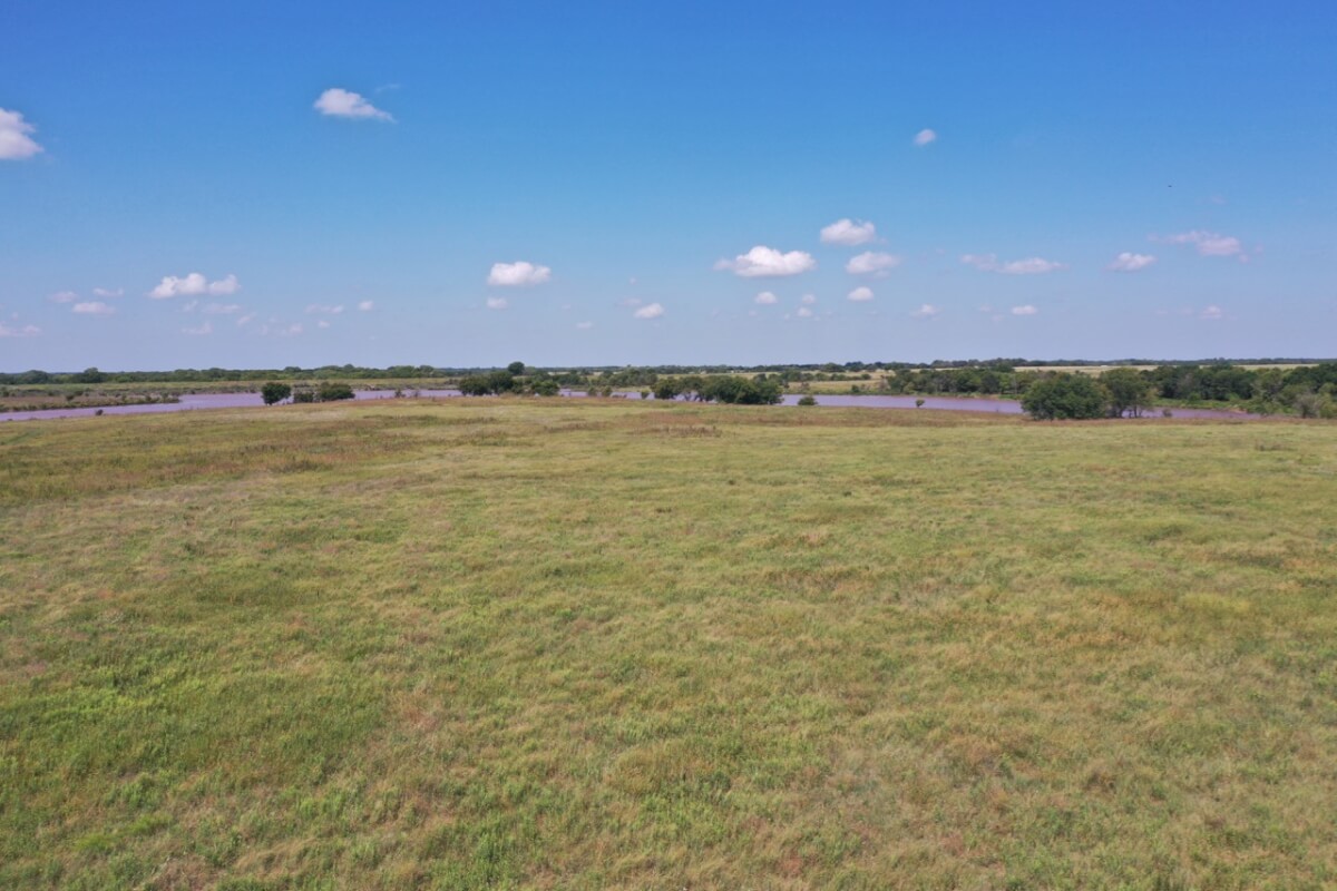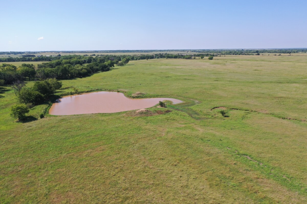 PROPERTY DESCRIPTION: 923+- acres of good quality Kansas Flint Hills pasture, timber, 40+- acre watershed lake, 9 stock ponds, creeks, and improvements. There is a good spring in the creek west of the watershed lake. Perimeter fencing and cross fences on the property are nearly all new or like new. This unique opportunity is entirely contiguous with perimeter roadway all around the property, including 1 1/2 miles of blacktop frontage! Improvements include a 72′ x 45′ foot metal building, a livestock barn, calving shed, livestock working pens, active electric, rural water meter, and 2 windmills, all conveniently set up ready for your livestock operation! There is 18+- acres of tillable in the northwest corner of the property. The timber lined creeks running into and out of the watershed lake provide excellent cover for wintering livestock, but also act as natural traffic ways for an abundance of wildlife that includes Kansas Whitetail Deer, turkey, and quail. If you are looking to start or expand a livestock operation or if you want to include income producing land in your portfolio, this property is turnkey.