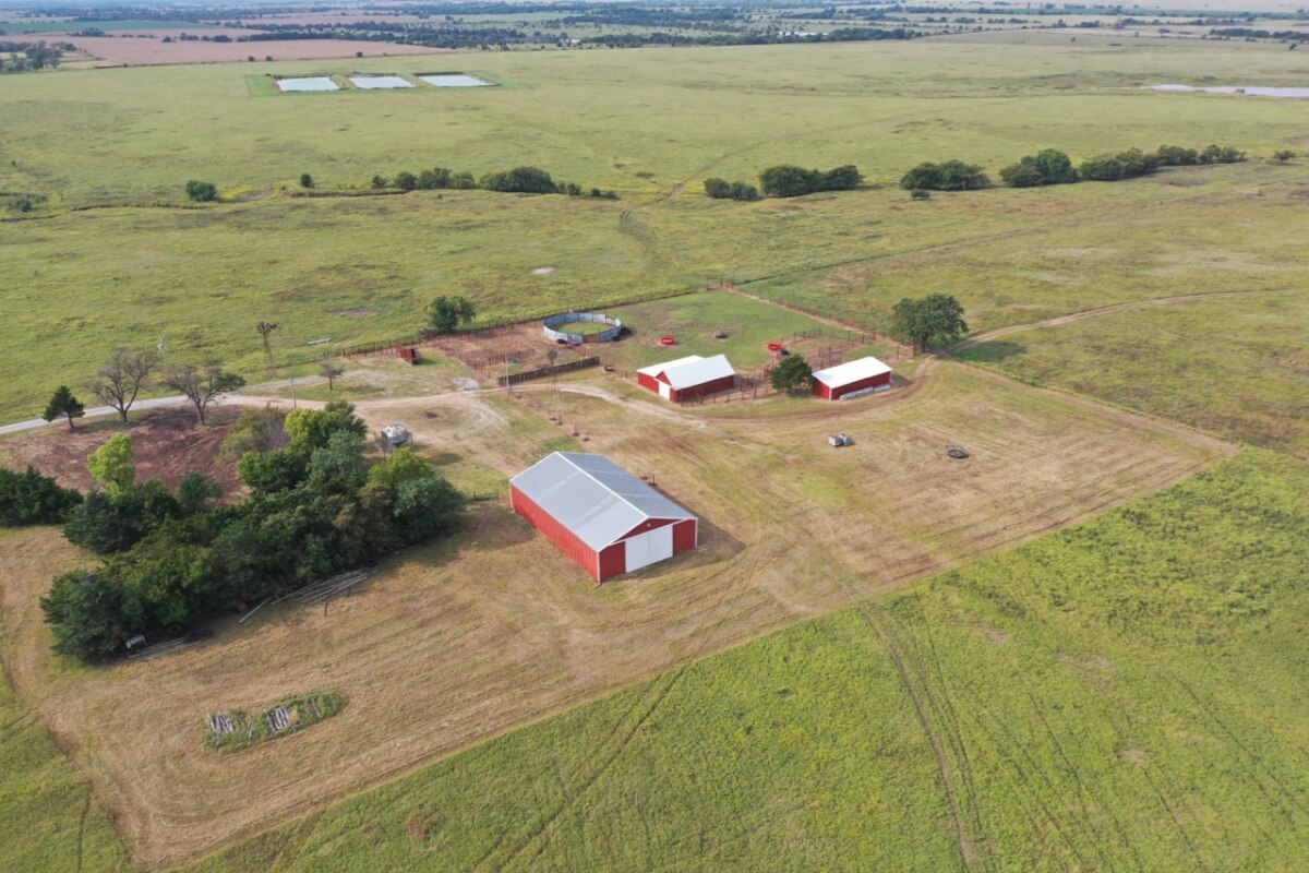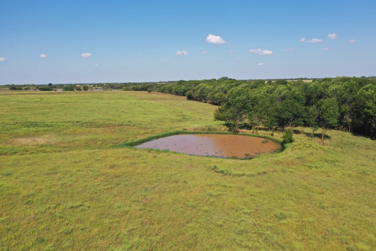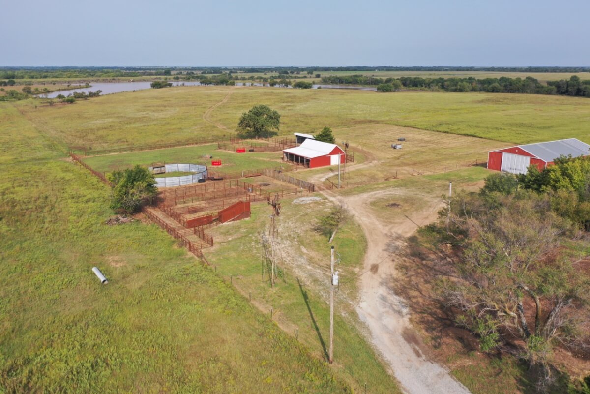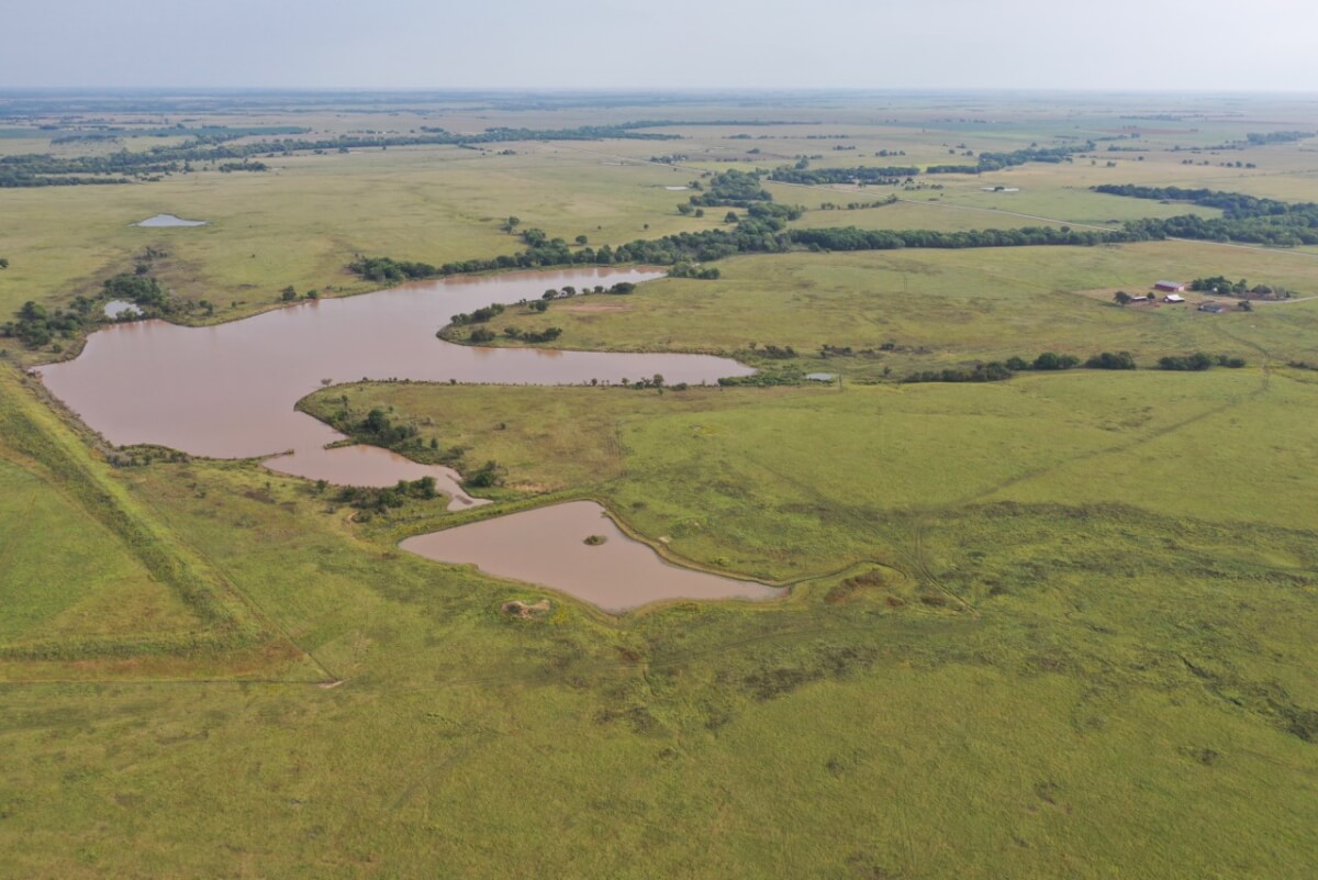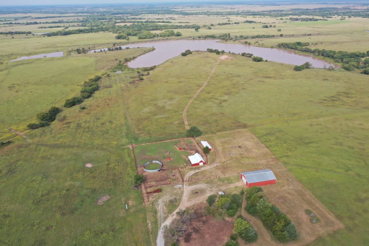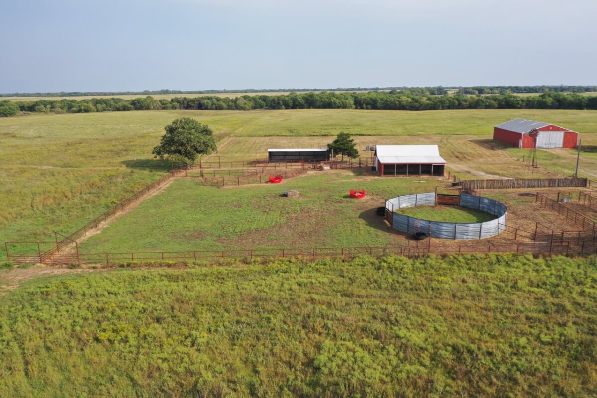 PROPERTY DESCRIPTION: 923+- acres of good quality Kansas Flint Hills pasture, timber, 40+- acre watershed lake, 9 stock ponds, creeks, and improvements. There is a good spring in the creek west of the watershed lake. Perimeter fencing and cross fences on the property are nearly all new or like new. This unique opportunity is entirely contiguous with perimeter roadway all around the property, including 1 1/2 miles of blacktop frontage! Improvements include a 72′ x 45′ foot metal building, a livestock barn, calving shed, livestock working pens, active electric, rural water meter, and 2 windmills, all conveniently set up ready for your livestock operation! There is 18+- acres of tillable in the northwest corner of the property. The timber lined creeks running into and out of the watershed lake provide excellent cover for wintering livestock, but also act as natural traffic ways for an abundance of wildlife that includes Kansas Whitetail Deer, turkey, and quail. If you are looking to start or expand a livestock operation or if you want to include income producing land in your portfolio, this property is turnkey.