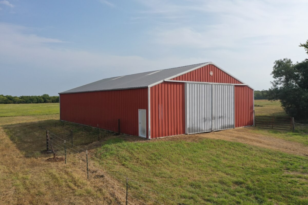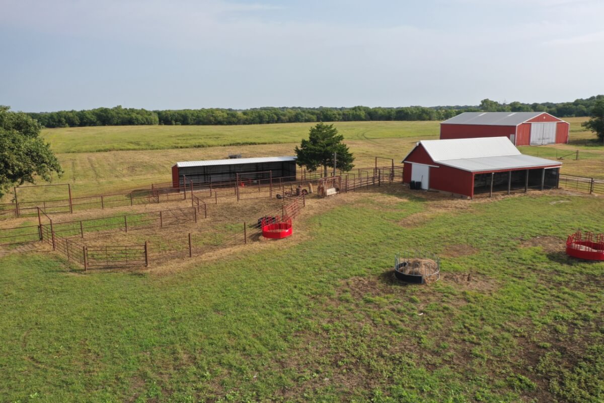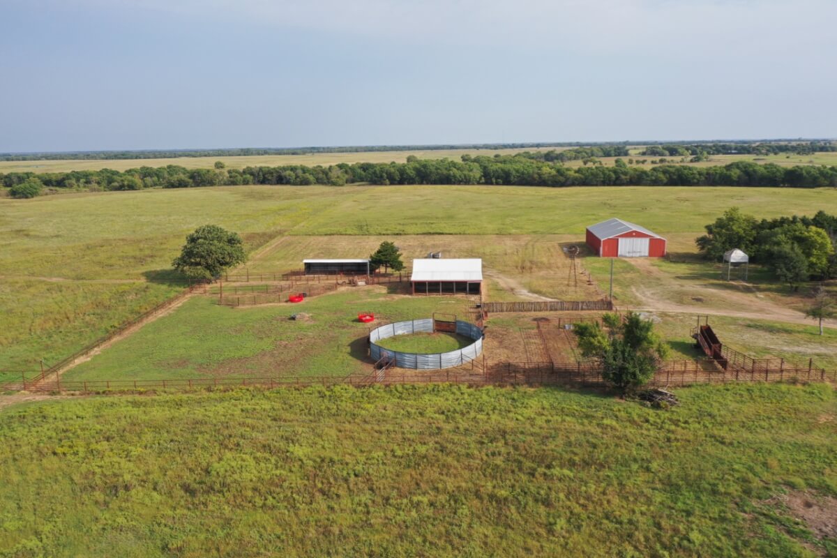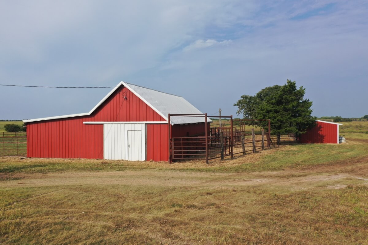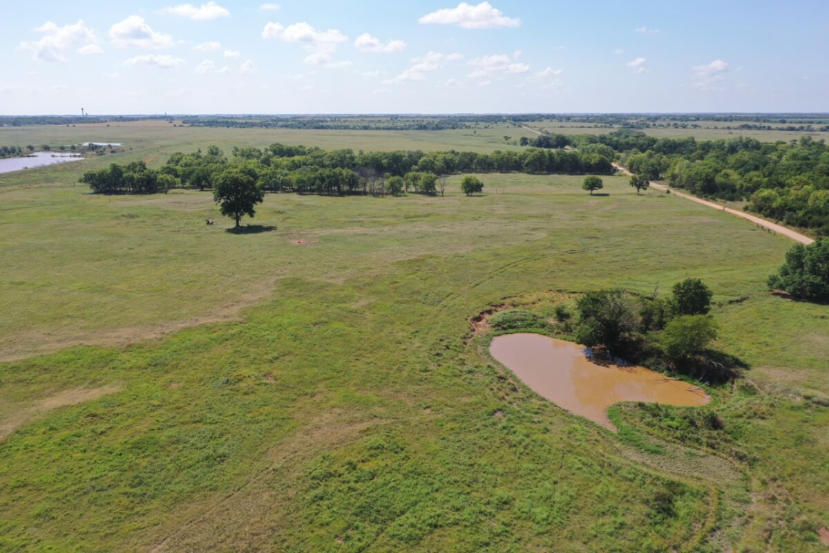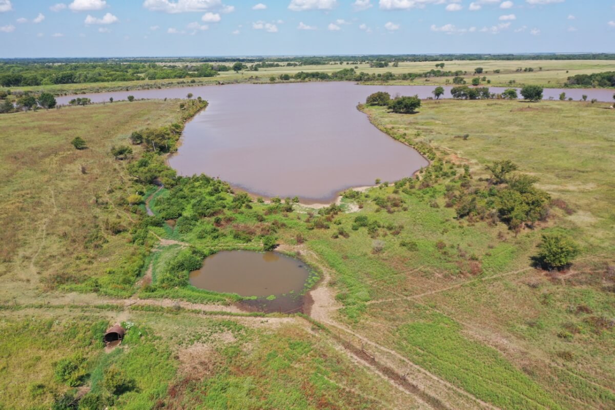 PROPERTY DESCRIPTION: 923+- acres of good quality Kansas Flint Hills pasture, timber, 40+- acre watershed lake, 9 stock ponds, creeks, and improvements. There is a good spring in the creek west of the watershed lake. Perimeter fencing and cross fences on the property are nearly all new or like new. This unique opportunity is entirely contiguous with perimeter roadway all around the property, including 1 1/2 miles of blacktop frontage! Improvements include a 72′ x 45′ foot metal building, a livestock barn, calving shed, livestock working pens, active electric, rural water meter, and 2 windmills, all conveniently set up ready for your livestock operation! There is 18+- acres of tillable in the northwest corner of the property. The timber lined creeks running into and out of the watershed lake provide excellent cover for wintering livestock, but also act as natural traffic ways for an abundance of wildlife that includes Kansas Whitetail Deer, turkey, and quail. If you are looking to start or expand a livestock operation or if you want to include income producing land in your portfolio, this property is turnkey.