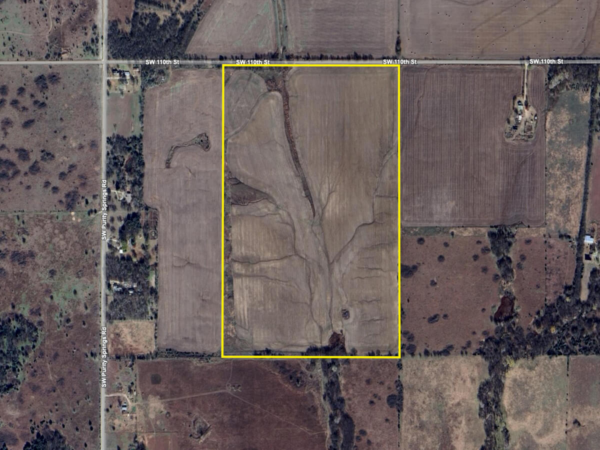 PROPERTY DESCRIPTION: 96 acres east of Augusta in Butler County, Kansas. This land tract is primarily tillable farm ground, with 90 acres of tillable consisting of 91+% Irwin silty clay loam and Vanoss silt loam soils. The balance of the property includes a short tree row in the northwest corner and a pocket of trees at the center of the southern border. The 2025 soybean crop produced 52 bushel/acre beans! Butler Rural Water District #4 has a 4″ rural water line along Purity Springs Rd. Access is provided by township gravel road all along the north boundary, less than 1 1/2 miles from blacktop. Take a look at this excellent opportunity to Invest In Land!