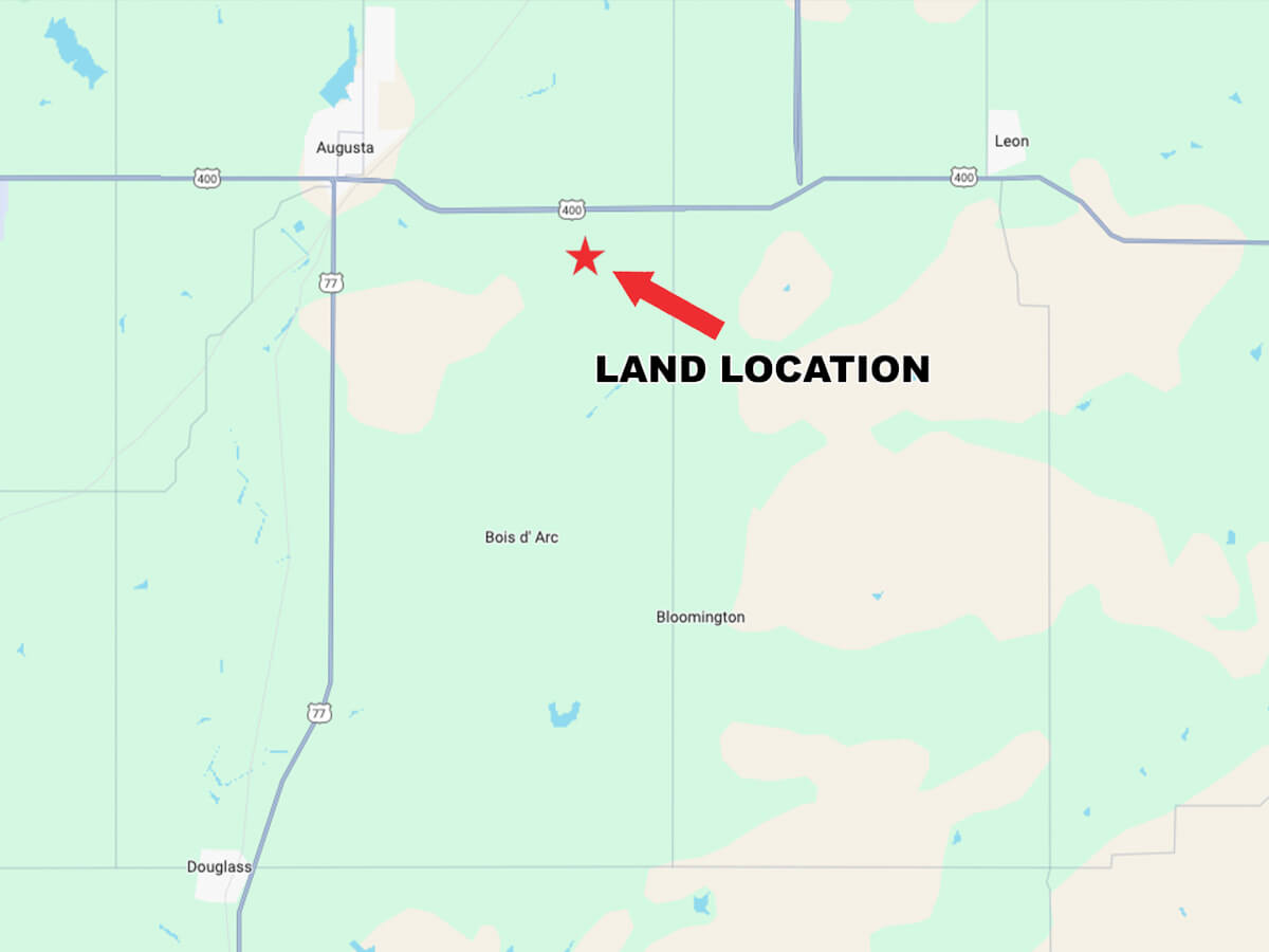 LAND LOCATION FROM AUGUSTA: East on SW 100th St to Purity Springs Rd., south 1 mile to SW 110th St, east to the property.