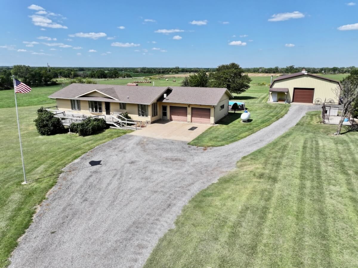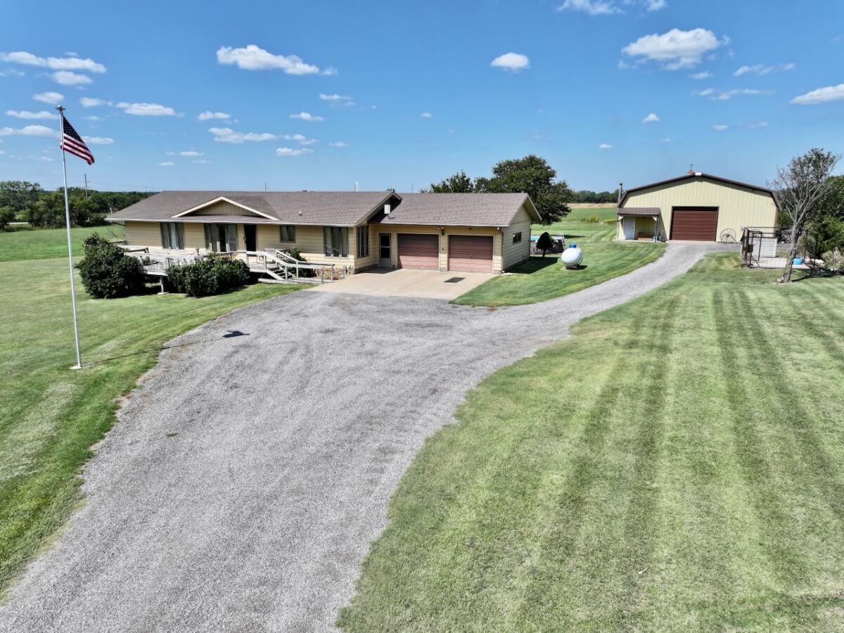9884 NW 60th St., Potwin, KS 67123 – House, Large Shop & Pond on 8.8 Acres