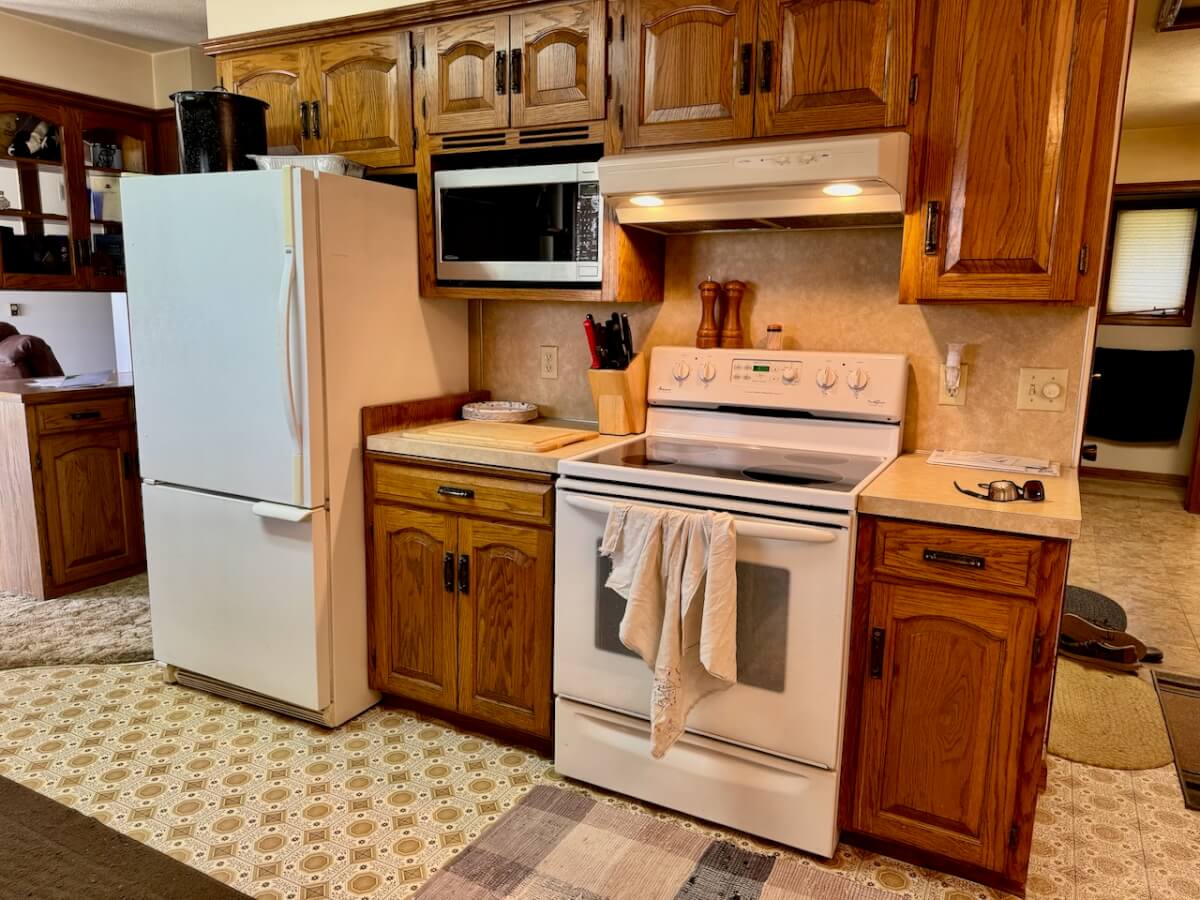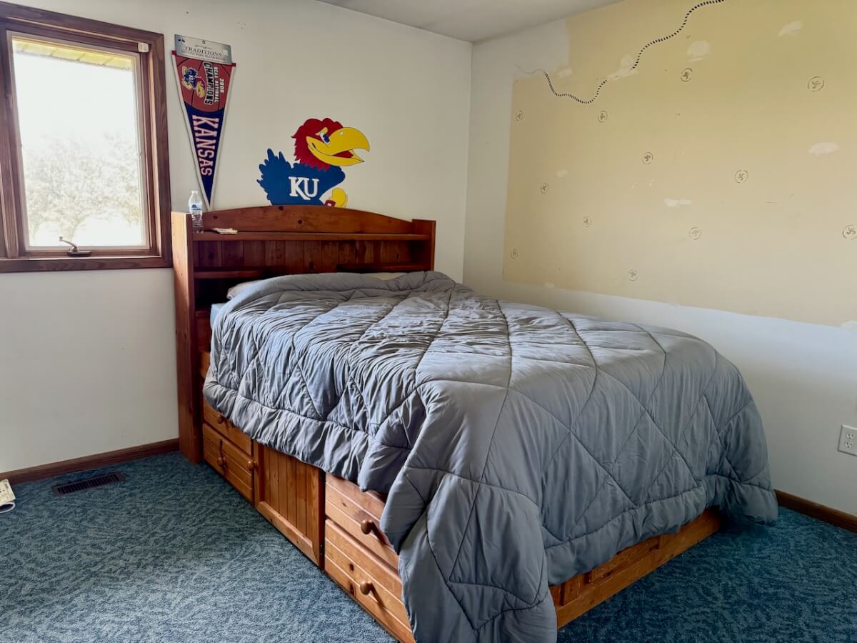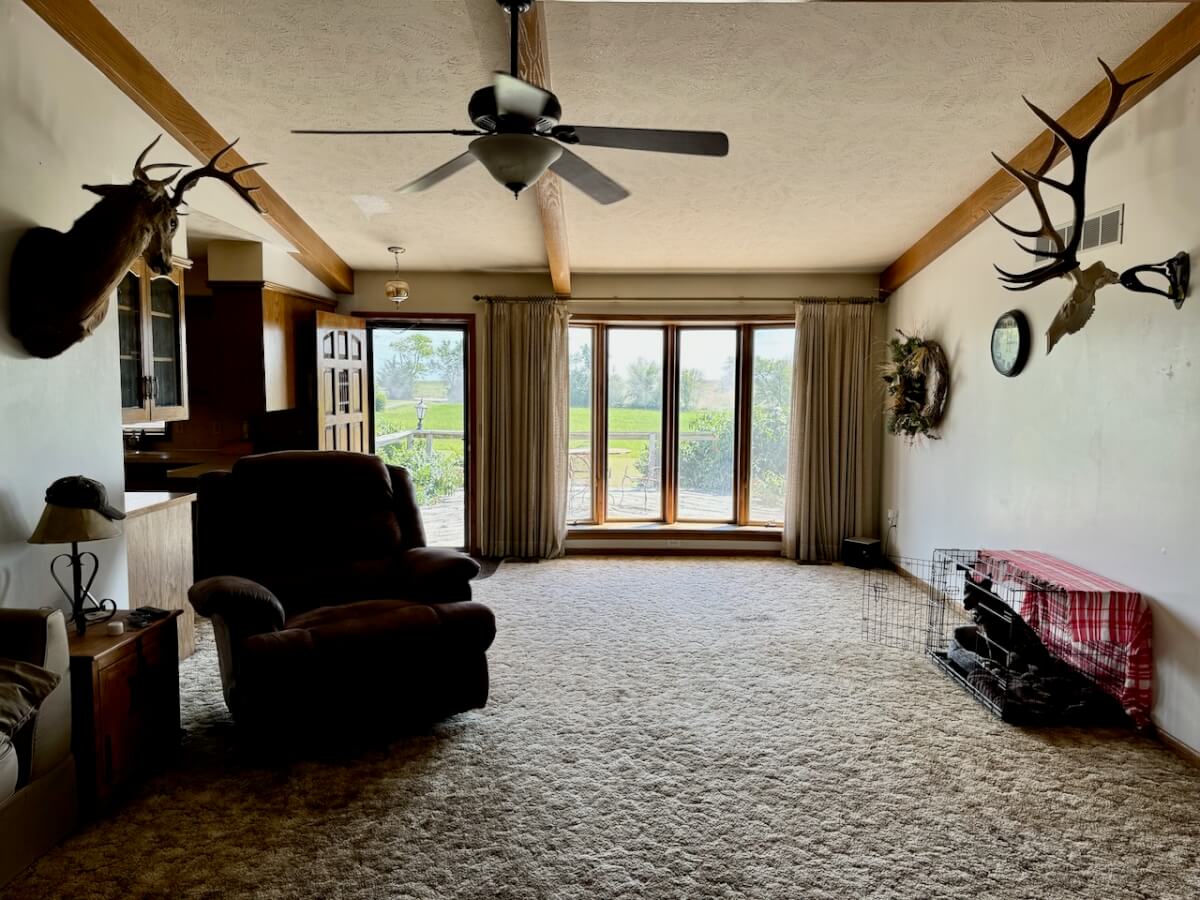 PROPERTY DESCRIPTION: House and shop building on 8.8 acres between Towanda and Potwin in Butler County, Kansas! This 2 bedroom 2 bath home has a full unfinished basement, allowing additional bedrooms or more living space as you see fit! Built in 1983, this ranch style home has 1540 square feet of finished living area on the main floor. That space includes both bedrooms and bathrooms, kitchen with breakfast eating area, a formal dining space, living room, and large laundry room. Each bedroom has a nice big walk-in closet! Utilities include water well, propane-leased and septic. All appliances will be included; refrigerator, stove/oven, washer & dryer. The 80′ x 42′ shop building has a concrete floor throughout, with a majority of the space open for tools and equipment. What a great opportunity to live in rural Butler County, Kansas with excellent blacktop access!