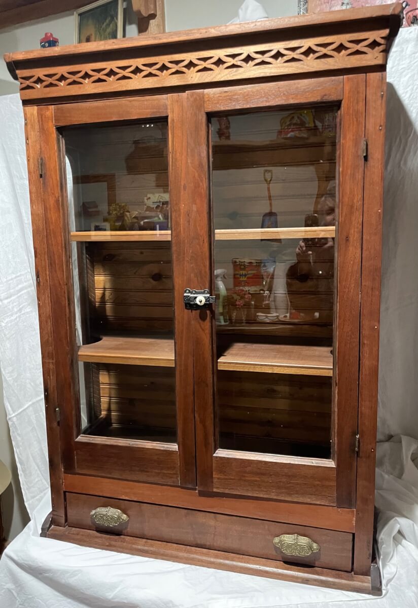 2 Walnut glass front cabinet, tabletop or wall
