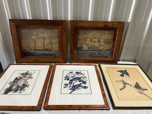 26 3 Vintage Bird Prints, 2 Vintage Ship Prints