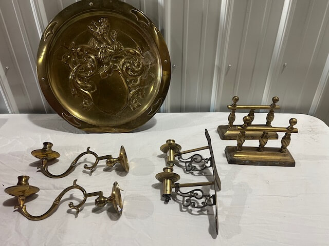 32 Brass Decorative Candlesticks & Plate