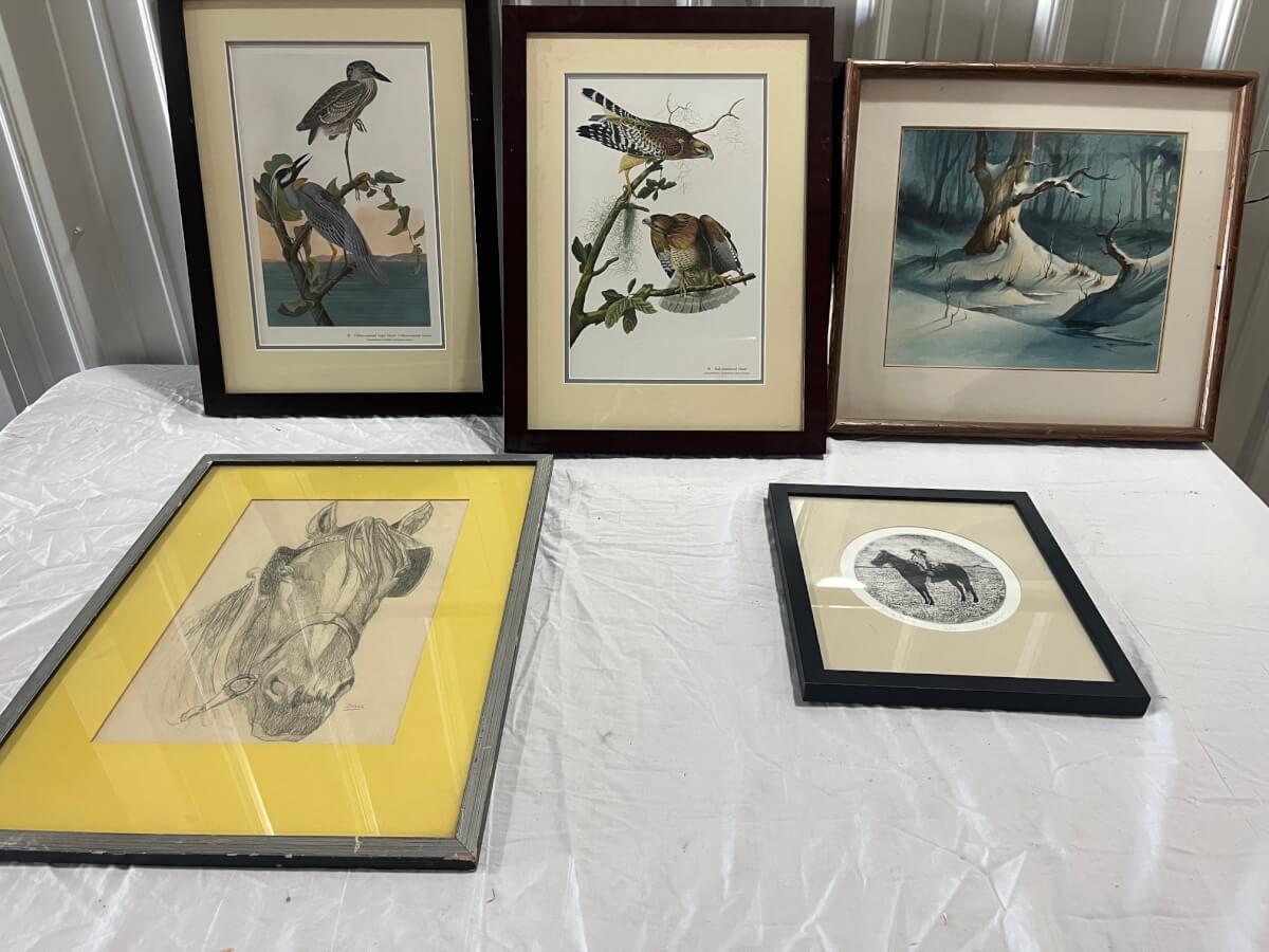 41 vintage bird pics, pen & Ink horse & original watercolor