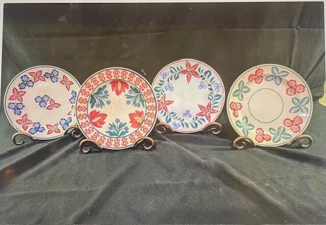 58 3 Stick Spatter 8″ plates 1 sm. bowl made in holland