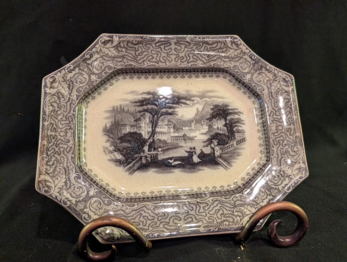 63 10″ black transferware platter/perfect condition