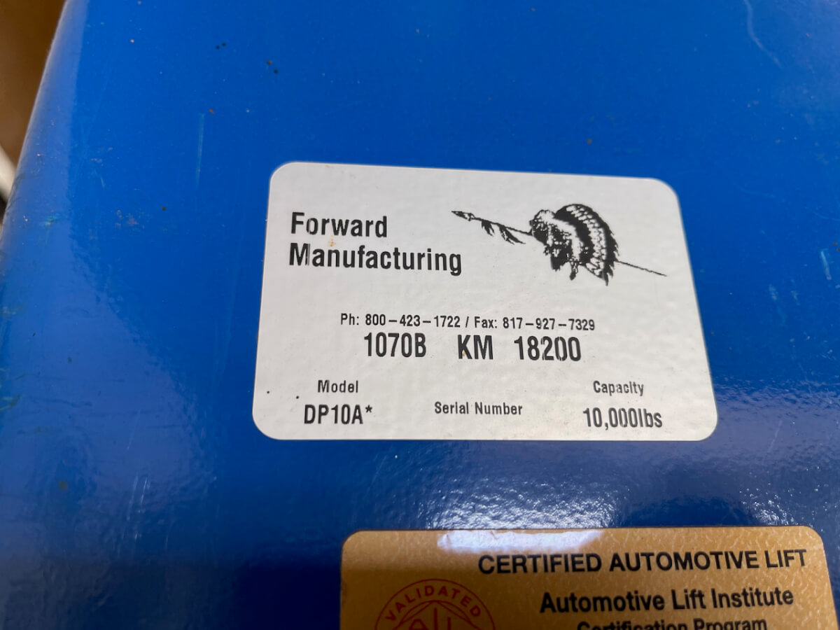 Forward MFG, 10,000 lb, 2 Post Lift