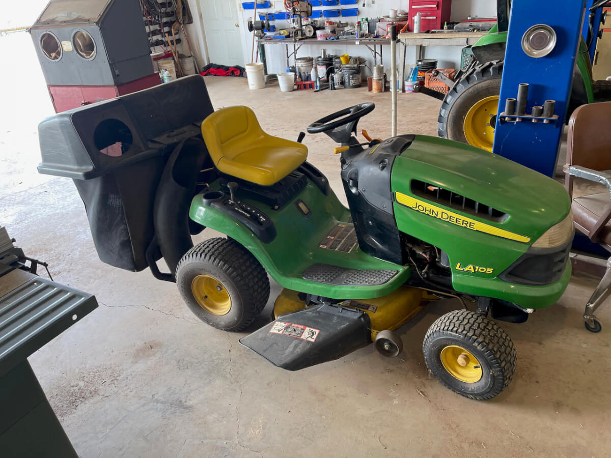 John Deere LA105 Riding Mower, Rear Bagger, 42” Cut