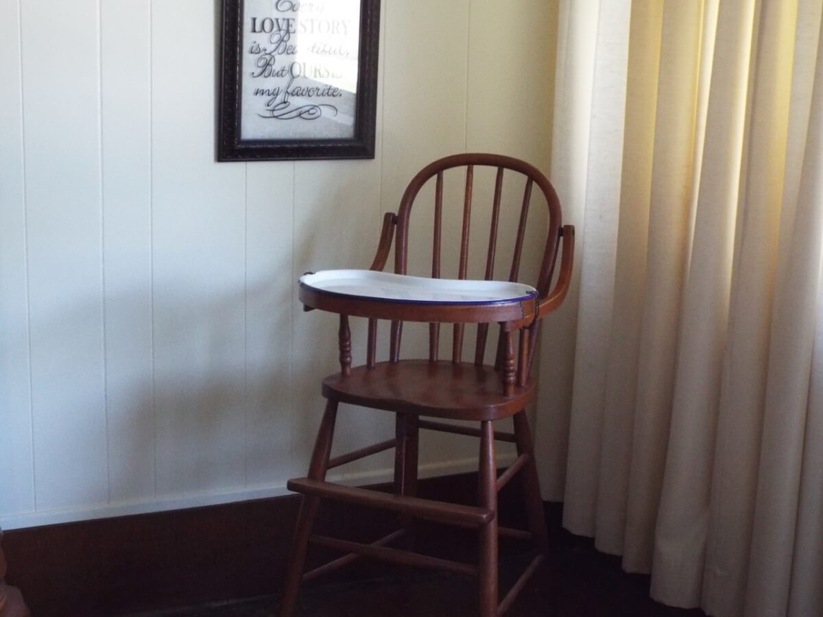 Enamel tray wooden high chair