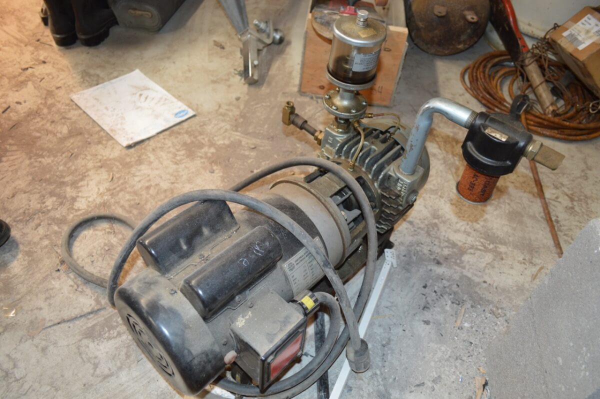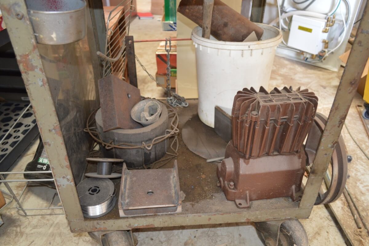 Older Air compressor on Warehouse Cart