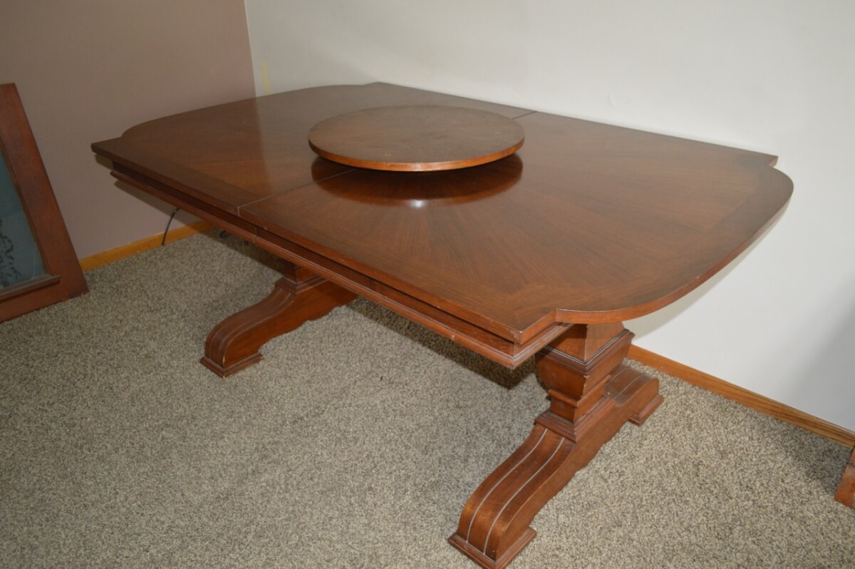 9 Piece Teakwood Dinette, Extra Leaves, Lazy Susan & Pads w/Matching Hutch