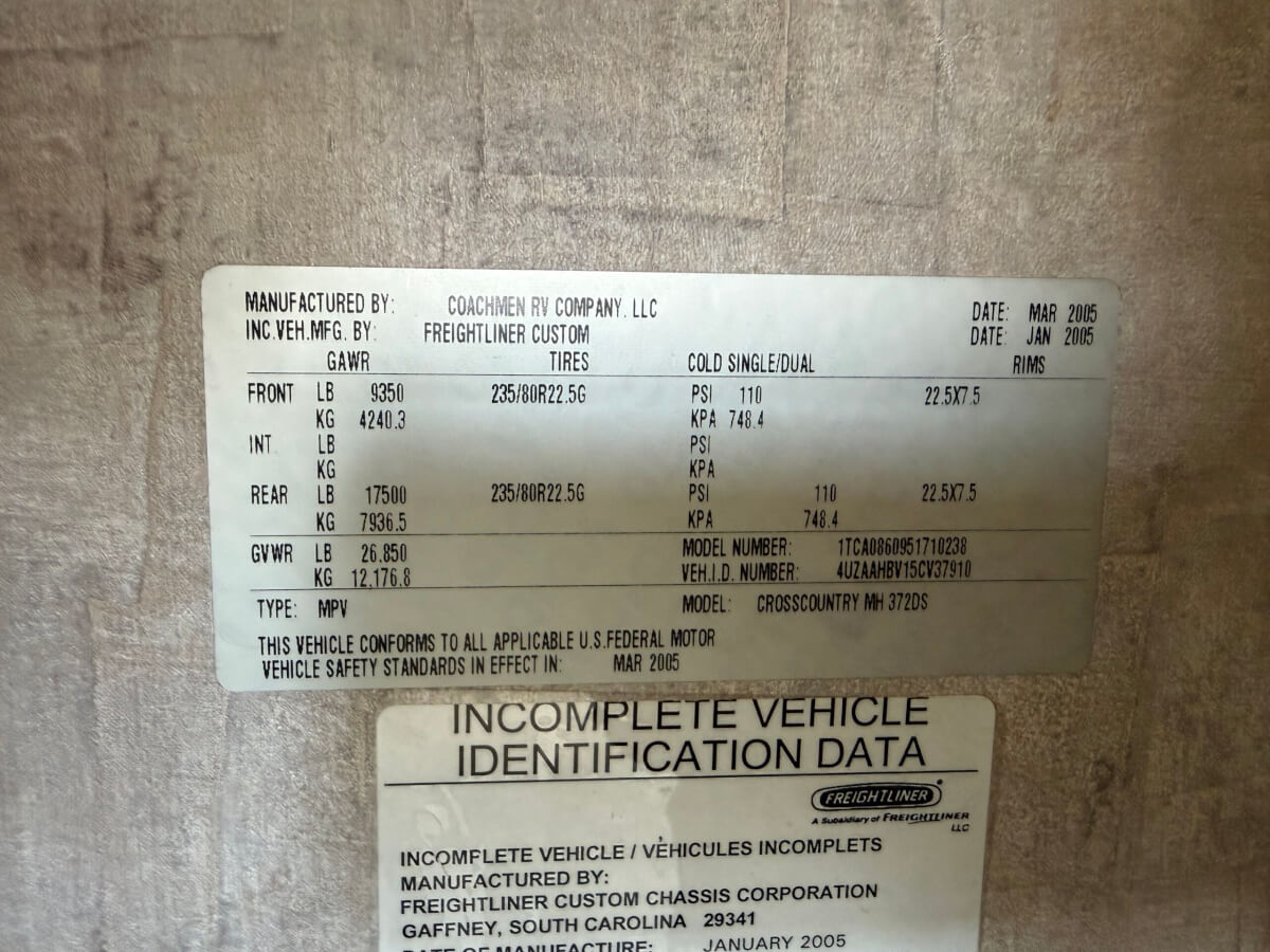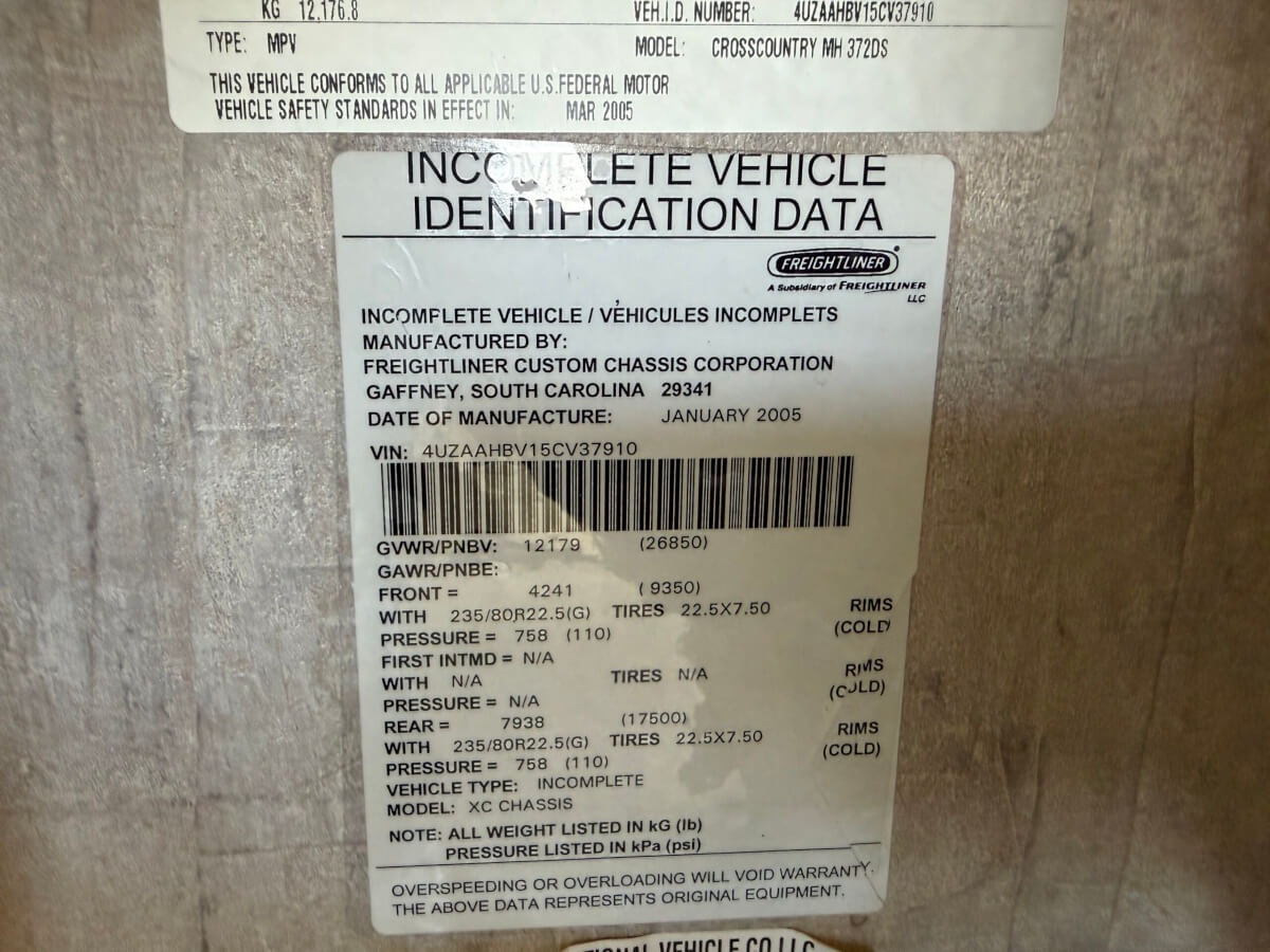 8) 2005 Coachmen Cross Country MH 372DS, Two Slide-Outs, 300 HP Turbo Diesel