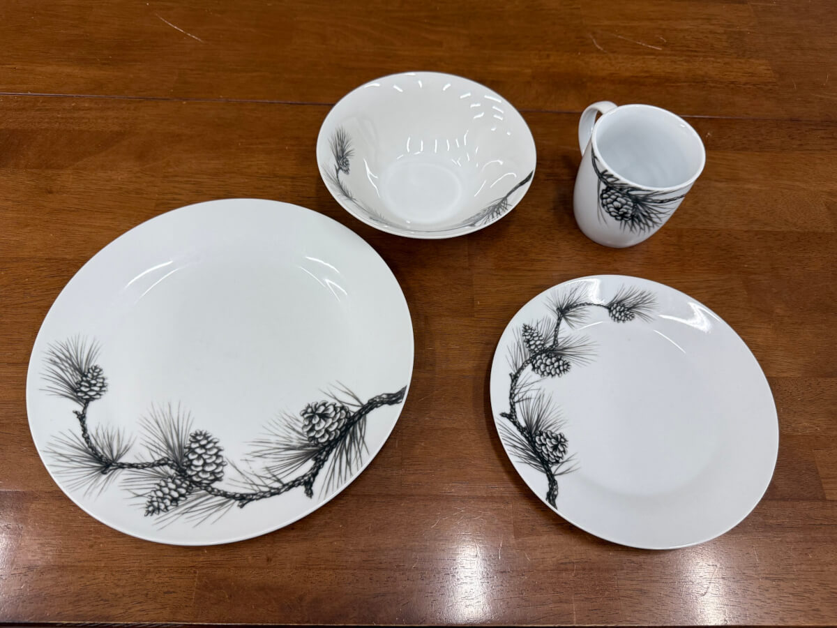10 Cabela’s Assorted Dishes 12 Plates 11 Small Plates 12 Cups 9 Bowls