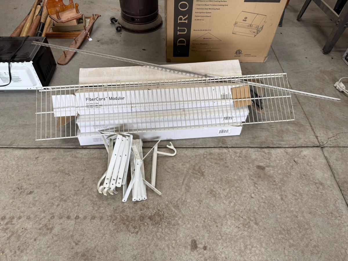 13 Building Supplies – Shelving Brackets, Carpet Tiles, Rug