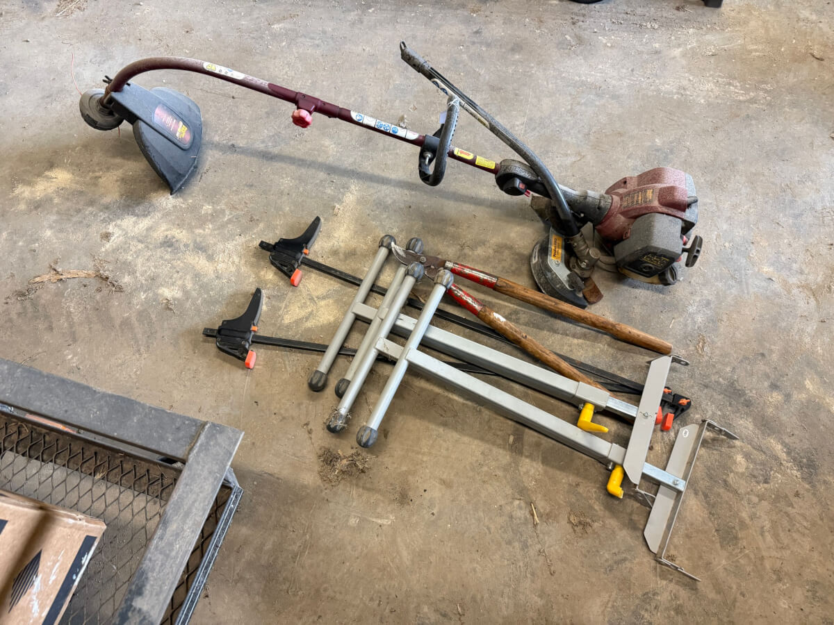 61 Poulan Pro Weed eater, Shears, Bar Clamps, Roller Stands