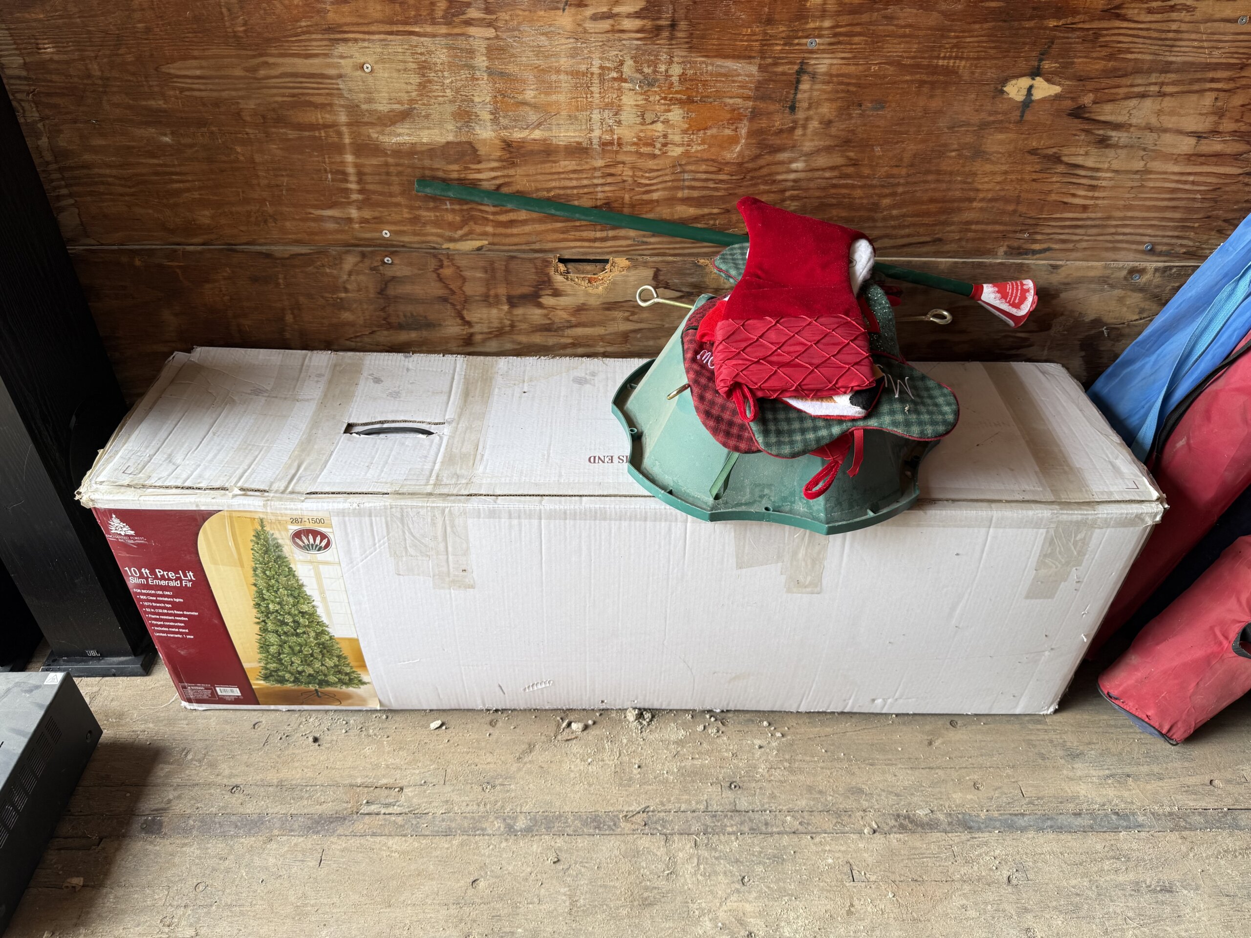 83 10′ Pre Lit Christmas Tree, Stand and Decor