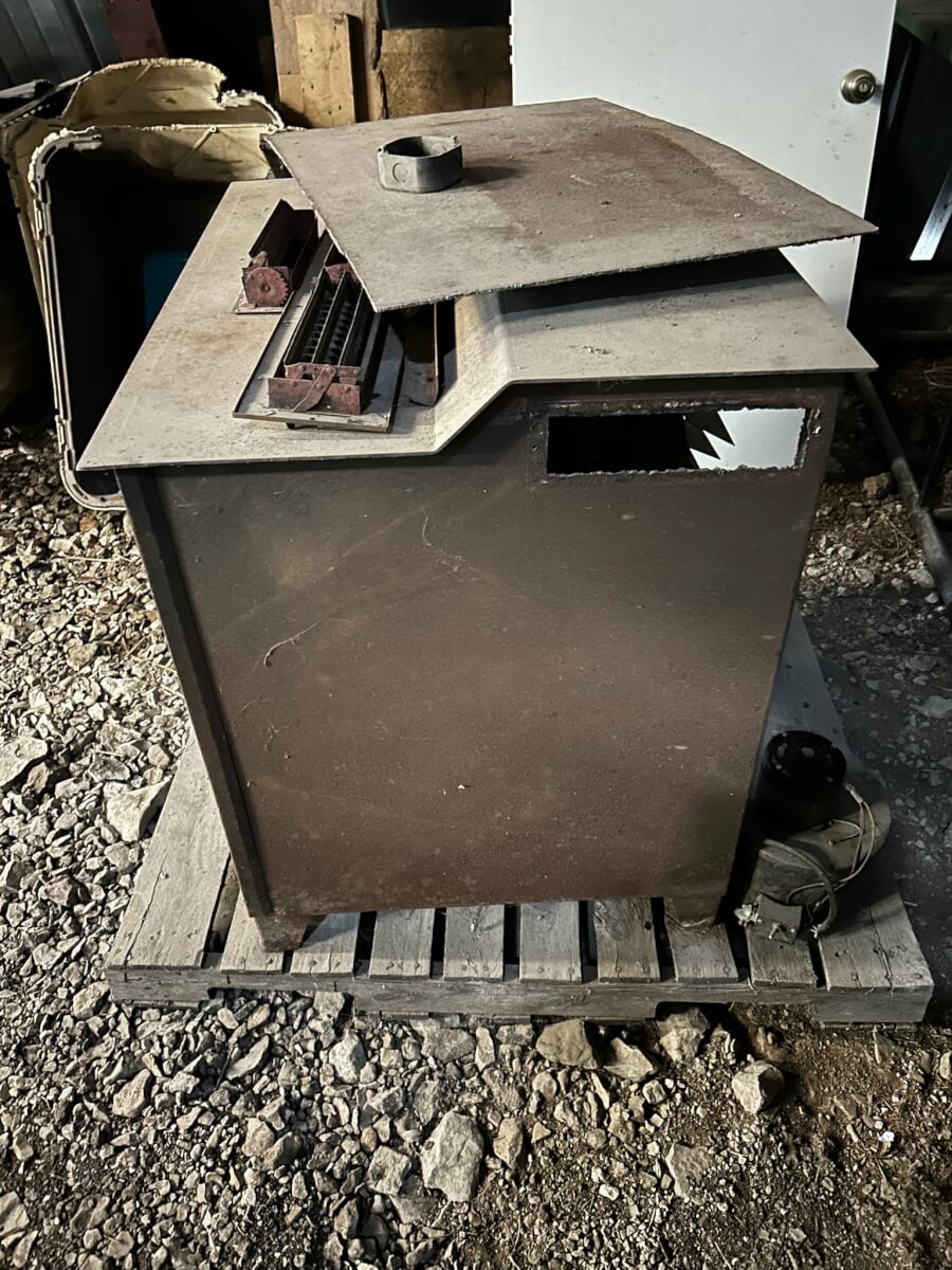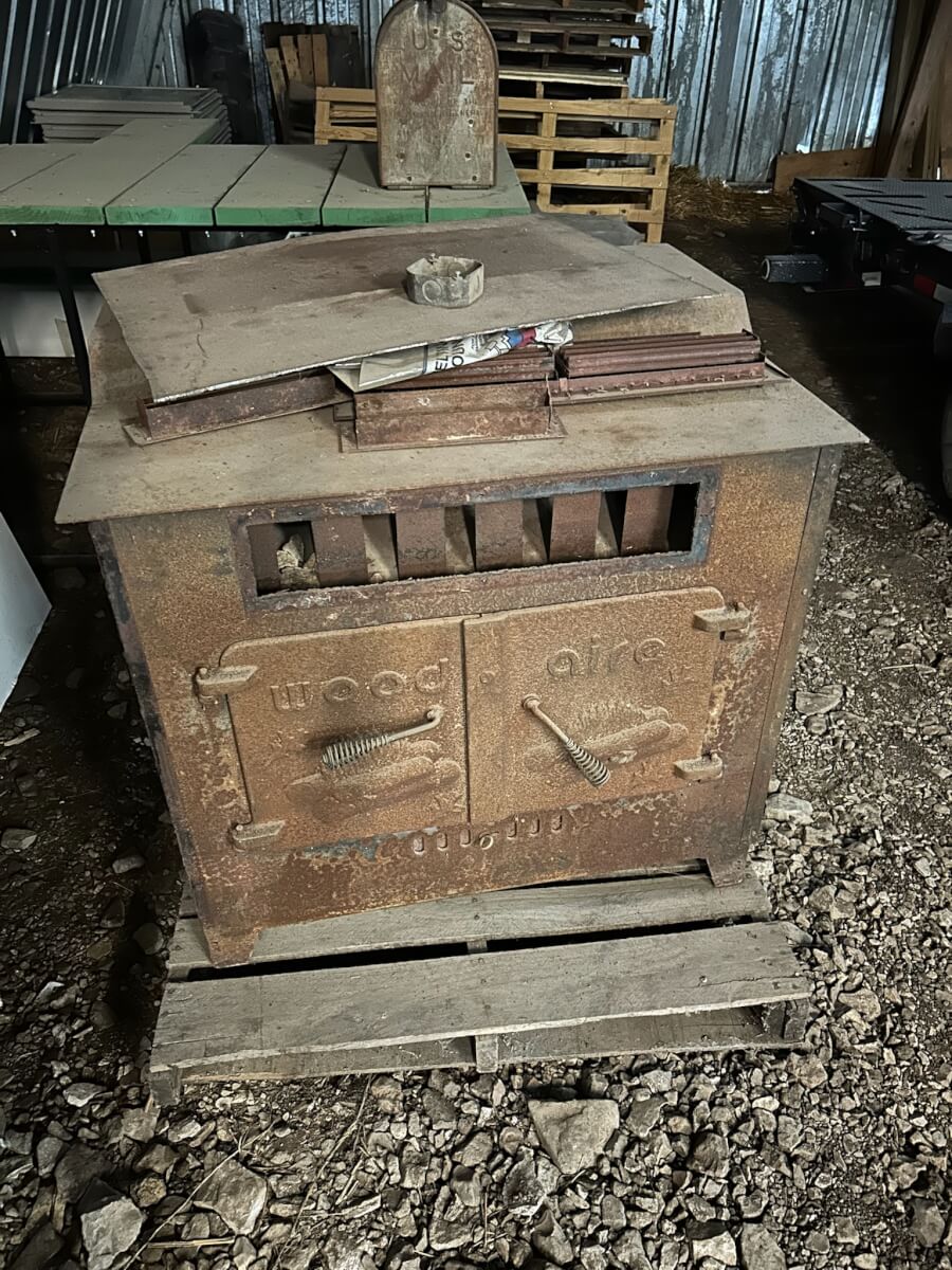 154 Wood Aire Wood Burning Stove. Complete with all parts and fan.