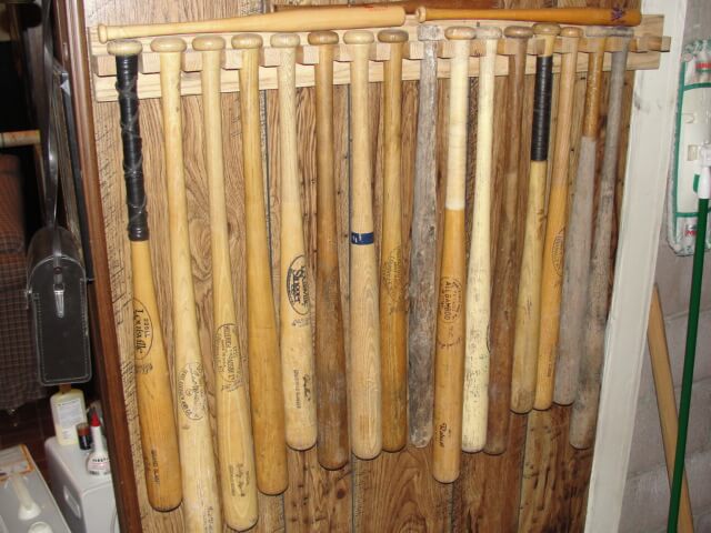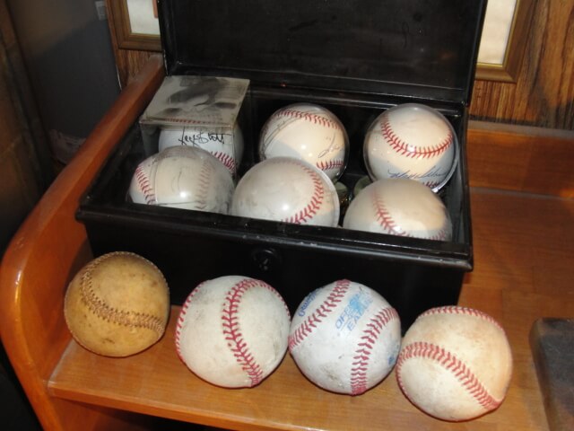 Baseball bats, balls, glove, several signed balls
