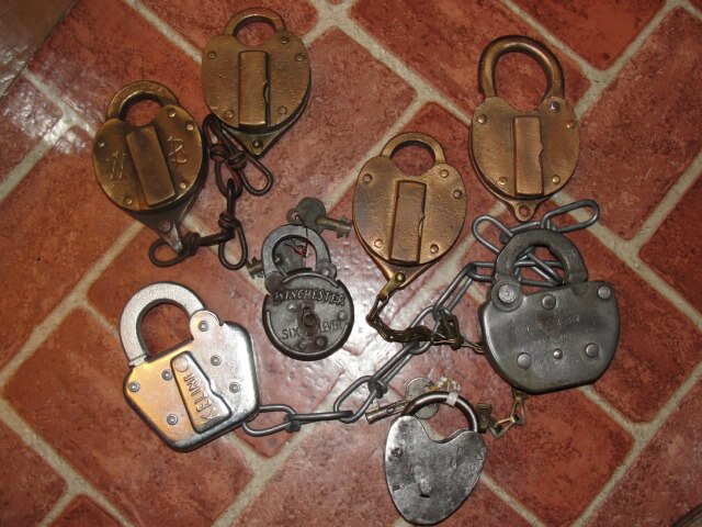 20+ Old Locks including, Winchester, Santa Fe, St. Louis Railroad, Regel Md 50 Trigger Lock