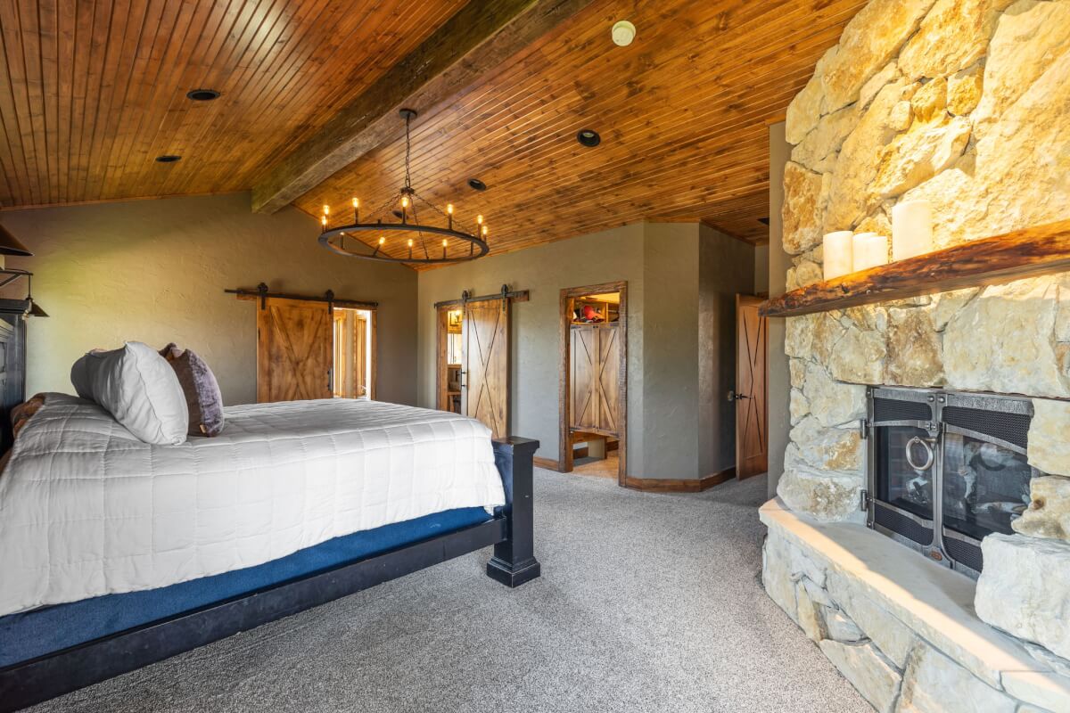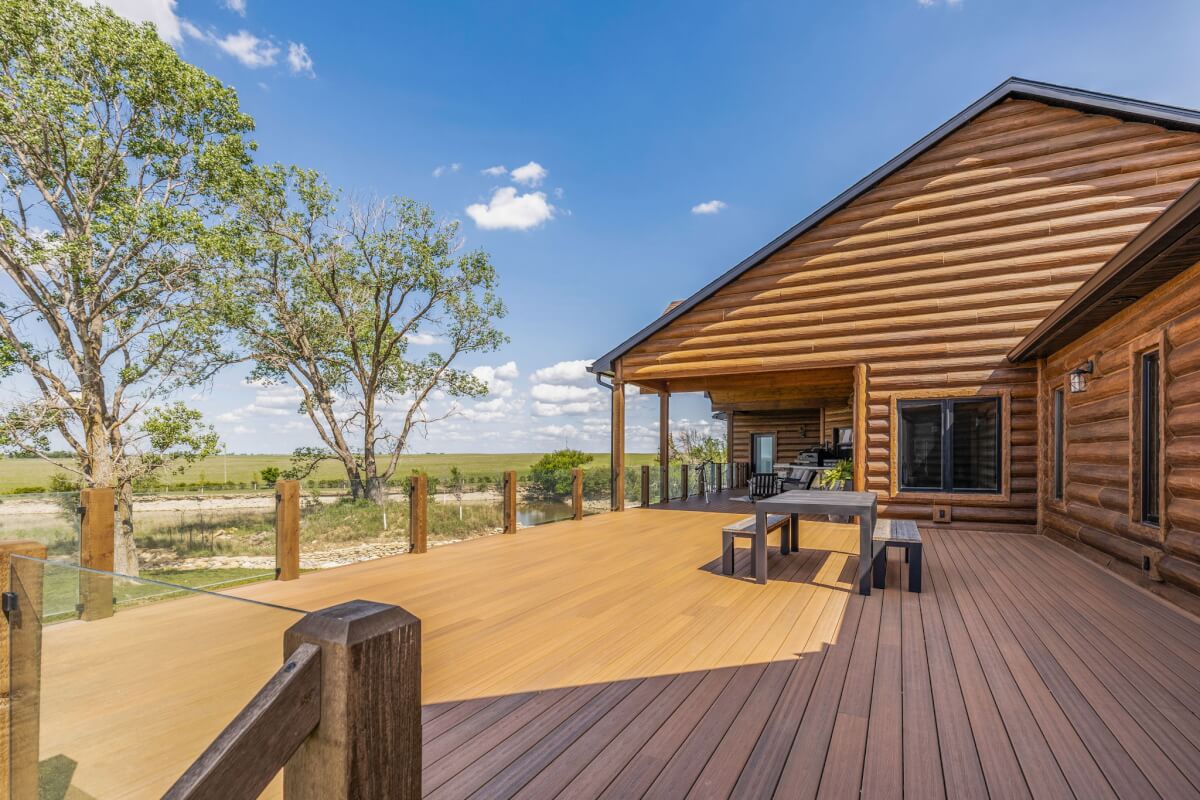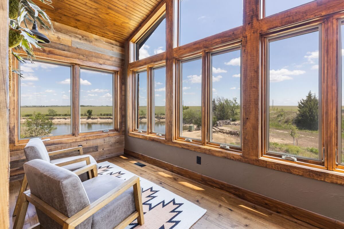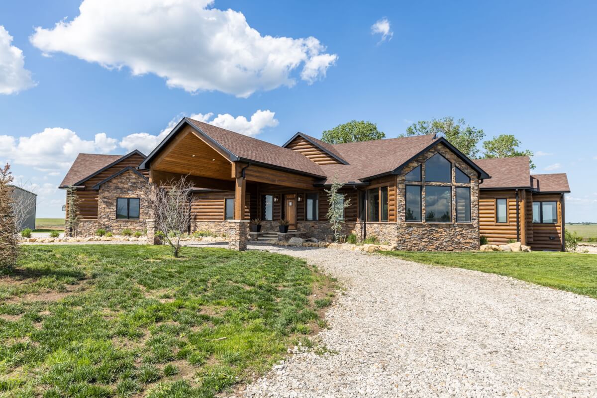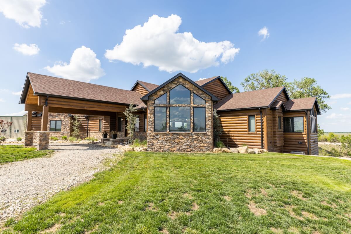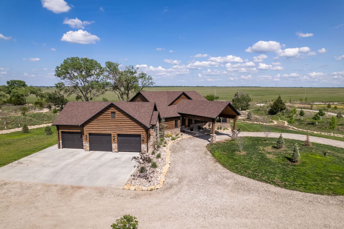 HOUSE & GENERAL DESCRIPTION: 5 Bedroom 4.5 Bath home on 154 acres east of Leon in Butler County, Kansas with a beautiful home, tremendous shop building, rock quarry lake, cabin, ponds, and pasture just 30 minutes east of Andover, Kansas. The house was completed in 2022 and has 2810 square feet of finished living area on the main level plus a full finished basement. Additional rooms include an office, craft room, theatre/workout room, sun room, safe room, main floor laundry, mud room and pantry. There is an attached 3 car oversized garage Large bedrooms with oversized closets in each. Very large oversized master bedroom closet with built-in drawers and adjustable hanging racks. “Car Wash” master shower with body sprays, hand spray, shower head, ceiling waterfall PLUS heated tile floor in master bathroom. You will love the incredible dining room with native stone archway, large windows on 3 sides, perfectly positioned and angled to capture the beautiful country sunrise, sunset, incoming storms, native pasture, and Colorado-inspired landscaping all in 1 room. Truly one of a kind space with unmatched views of the ranch, any time of day. One of many features of the basement is the unique and rustic custom wet bar. It includes a stainless fridge, ice maker, sink, glass cleaner, wine racks, ample cabinet storage, magnetic child safety locks, LED accent lighting, wood slab bar counter, lower granite counter. There is an amazing composite back deck with glass panel handrails to maintain scenic views of the backyard, Colorado cobblestone creek, and rock quarry lake.A large covered roof is over the sitting area and grilling station to enjoy the view in any weather, with a large uncovered area to enjoy your time in the sun. Wires stubbed out on deck for future TV. The ultimate custom grilling station on the deck has the XL Big Green Egg, Yoder YS640S wifi pellet smoker, large Blackstone flat grill, propane side burner, and ample stainless storage cabinets. Propane supply is plumbed directly from the house so you never have to replace propane bottles.