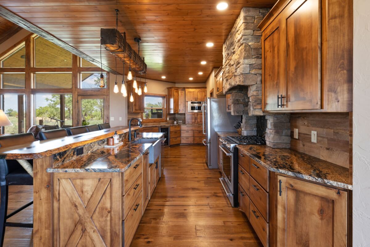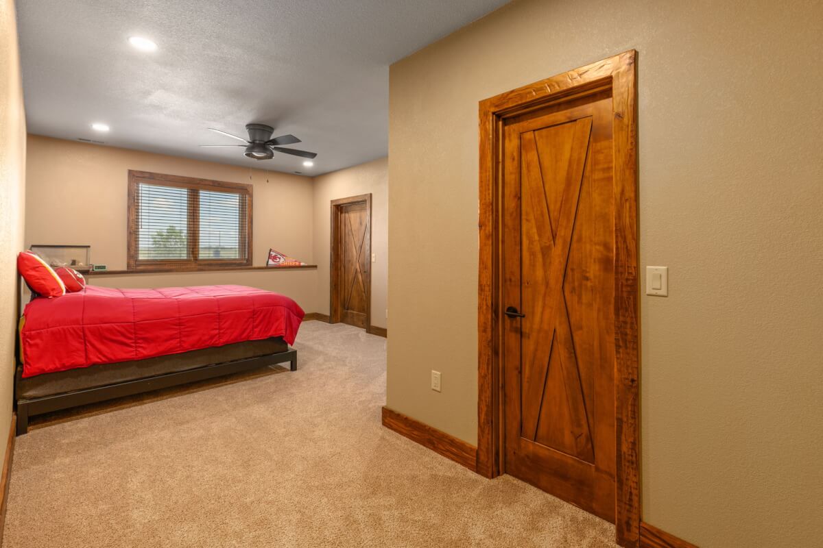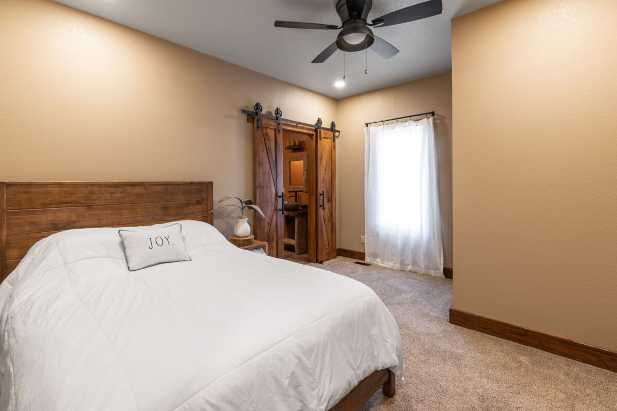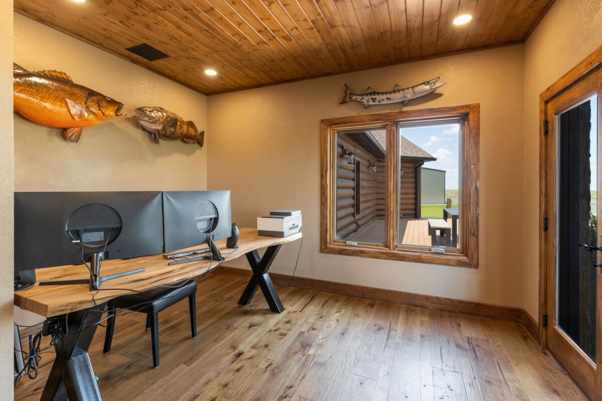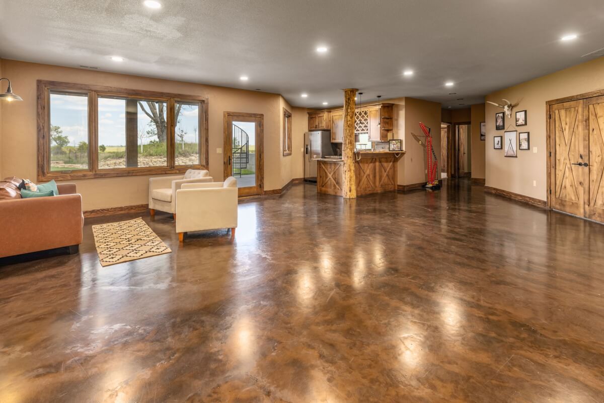 HOUSE & GENERAL DESCRIPTION: 5 Bedroom 4.5 Bath home on 154 acres east of Leon in Butler County, Kansas with a beautiful home, tremendous shop building, rock quarry lake, cabin, ponds, and pasture just 30 minutes east of Andover, Kansas. The house was completed in 2022 and has 2810 square feet of finished living area on the main level plus a full finished basement. Additional rooms include an office, craft room, theatre/workout room, sun room, safe room, main floor laundry, mud room and pantry. There is an attached 3 car oversized garage Large bedrooms with oversized closets in each. Very large oversized master bedroom closet with built-in drawers and adjustable hanging racks. “Car Wash” master shower with body sprays, hand spray, shower head, ceiling waterfall PLUS heated tile floor in master bathroom. You will love the incredible dining room with native stone archway, large windows on 3 sides, perfectly positioned and angled to capture the beautiful country sunrise, sunset, incoming storms, native pasture, and Colorado-inspired landscaping all in 1 room. Truly one of a kind space with unmatched views of the ranch, any time of day. One of many features of the basement is the unique and rustic custom wet bar. It includes a stainless fridge, ice maker, sink, glass cleaner, wine racks, ample cabinet storage, magnetic child safety locks, LED accent lighting, wood slab bar counter, lower granite counter. There is an amazing composite back deck with glass panel handrails to maintain scenic views of the backyard, Colorado cobblestone creek, and rock quarry lake.A large covered roof is over the sitting area and grilling station to enjoy the view in any weather, with a large uncovered area to enjoy your time in the sun. Wires stubbed out on deck for future TV. The ultimate custom grilling station on the deck has the XL Big Green Egg, Yoder YS640S wifi pellet smoker, large Blackstone flat grill, propane side burner, and ample stainless storage cabinets. Propane supply is plumbed directly from the house so you never have to replace propane bottles.