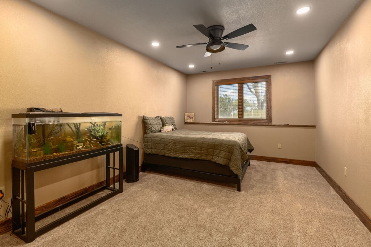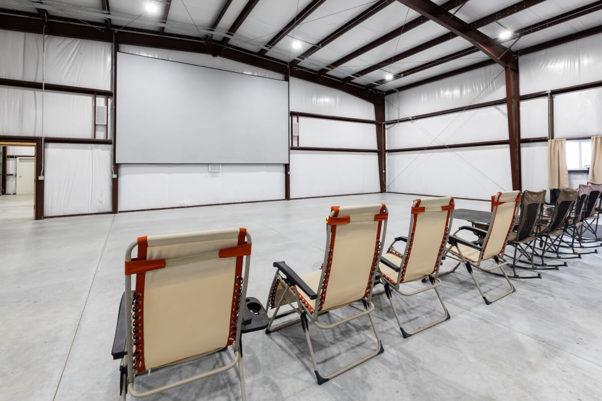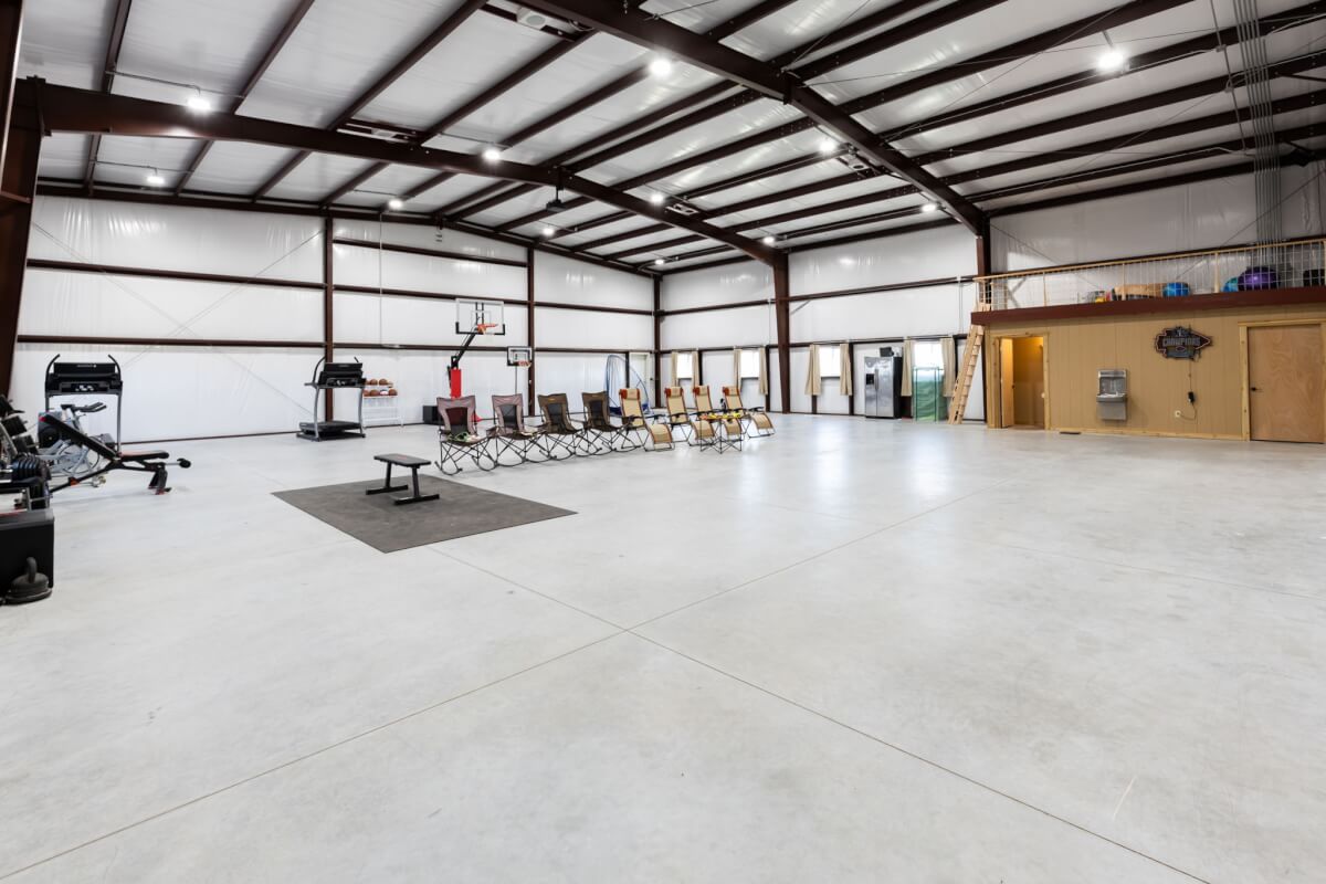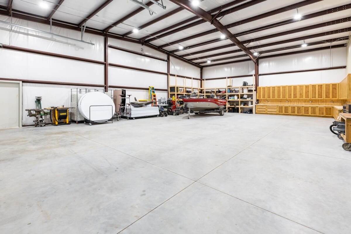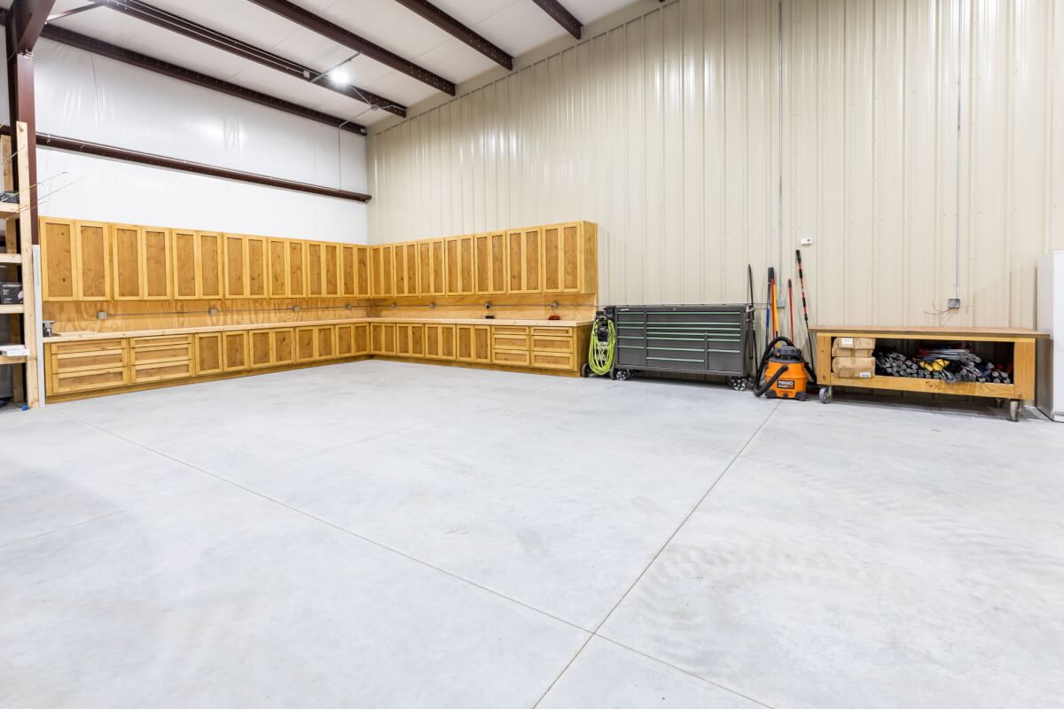 SHOP BUILDING: Features of this incredible 100′ x 60′ building include: 6” thick reinforced concrete floors * Full 2-zone heated floor system with 1.5 miles of tubing and insulated panels under concrete to increase efficiency. Able to maintain 70+ degrees inside during -10 temperatures outside * 18’ side walls * 2 oversized electric overhead doors * Full insulation on walls and ceiling * Ample storage with custom cabinets and shelving * Hot water heater * Water fountain with bottle filling station * Half bathroom * High-definition 4k projector * 27 ft permanent projector screen with diamond dust coating for the brightest picture possible* Blackout curtains to optimize projector viewing * 13.1 surround sound * High-end entertainment receiver * High powered exterior LED security lighting * Dimmable LED gymnasium-grade lighting throughout * Ample power outlets throughout for large gatherings * Strong wifi signal.