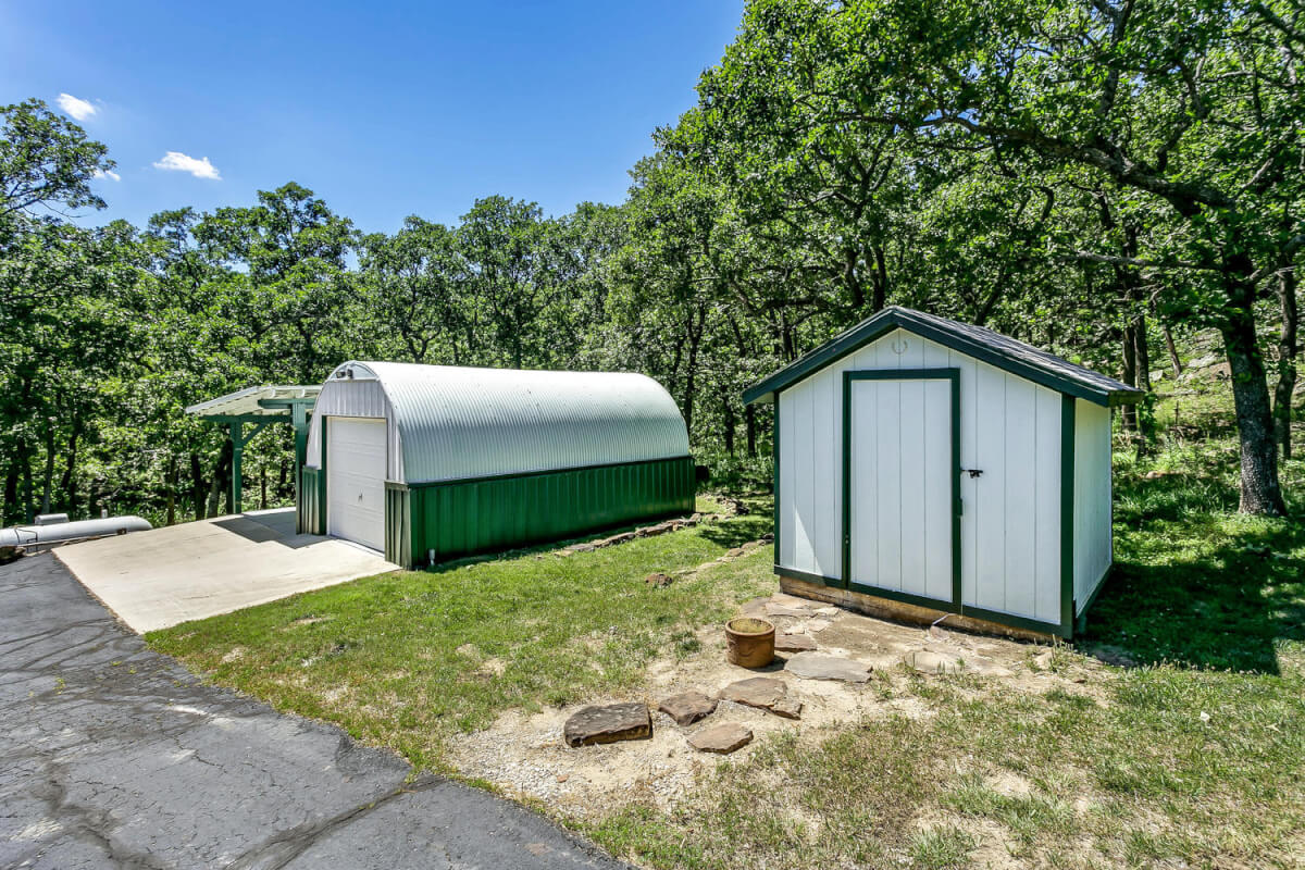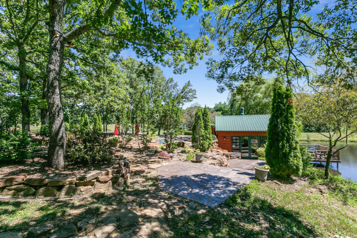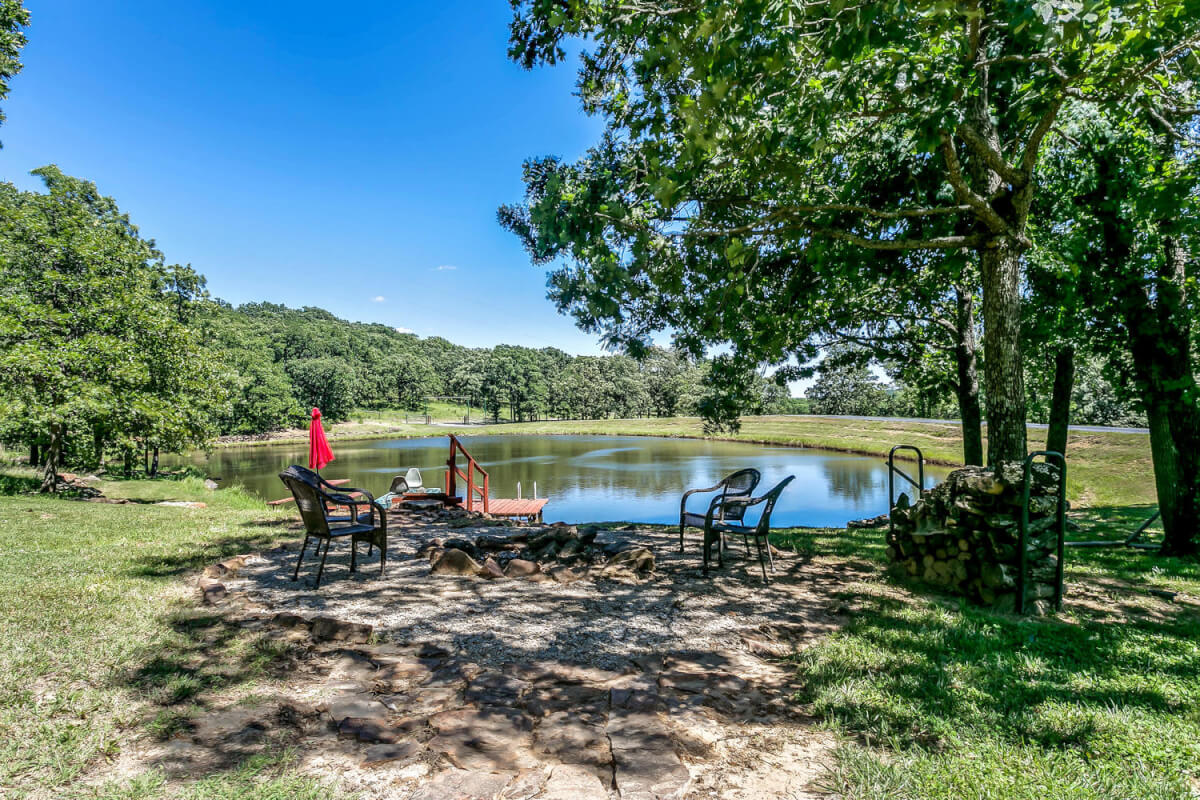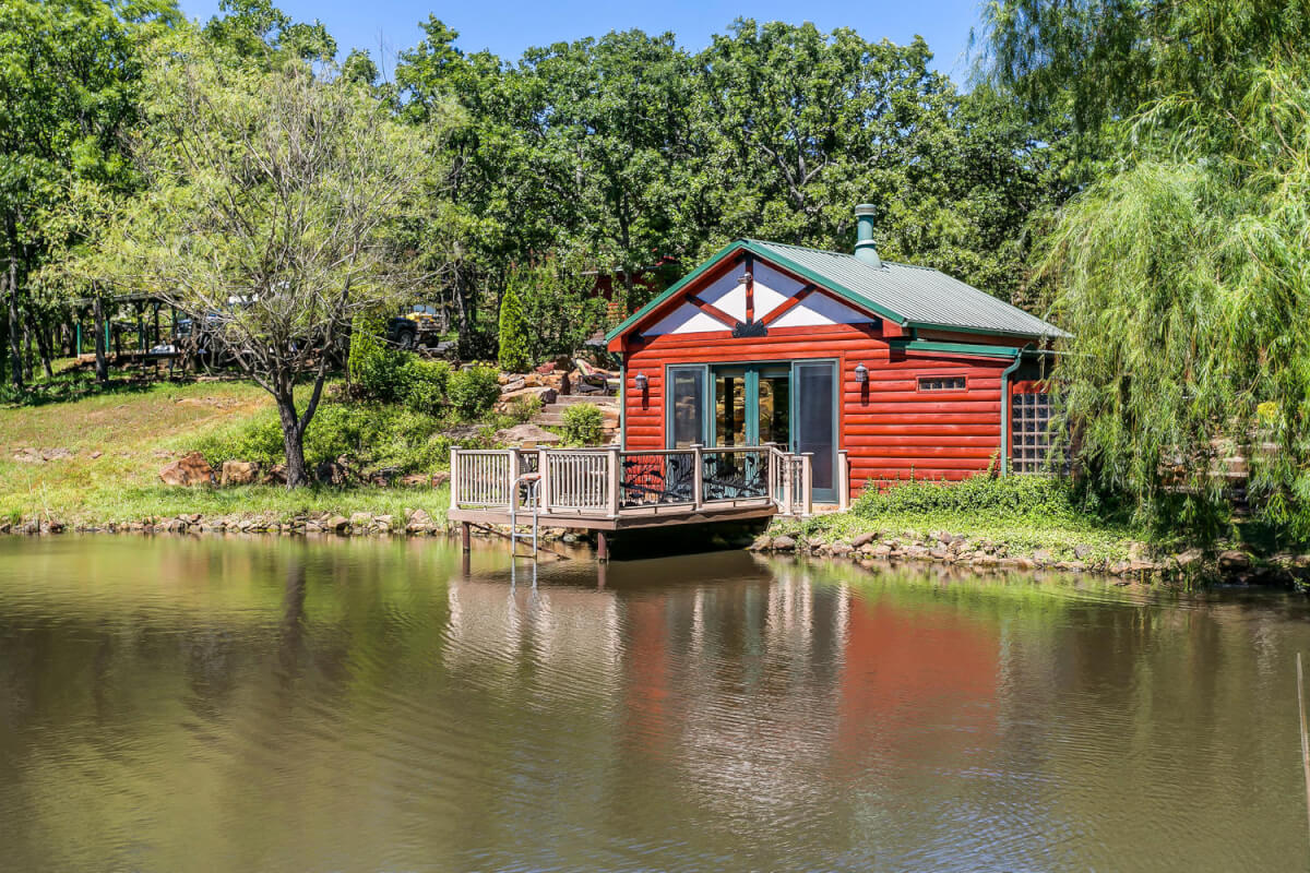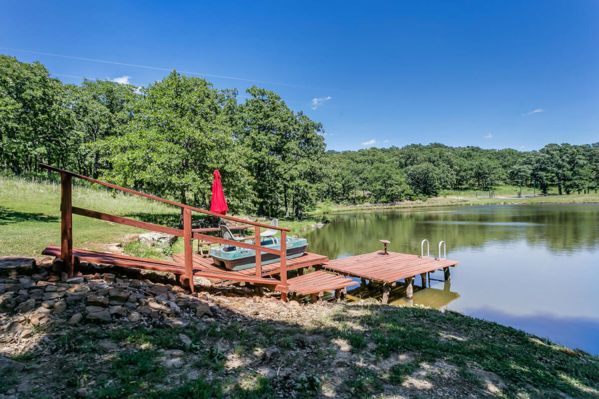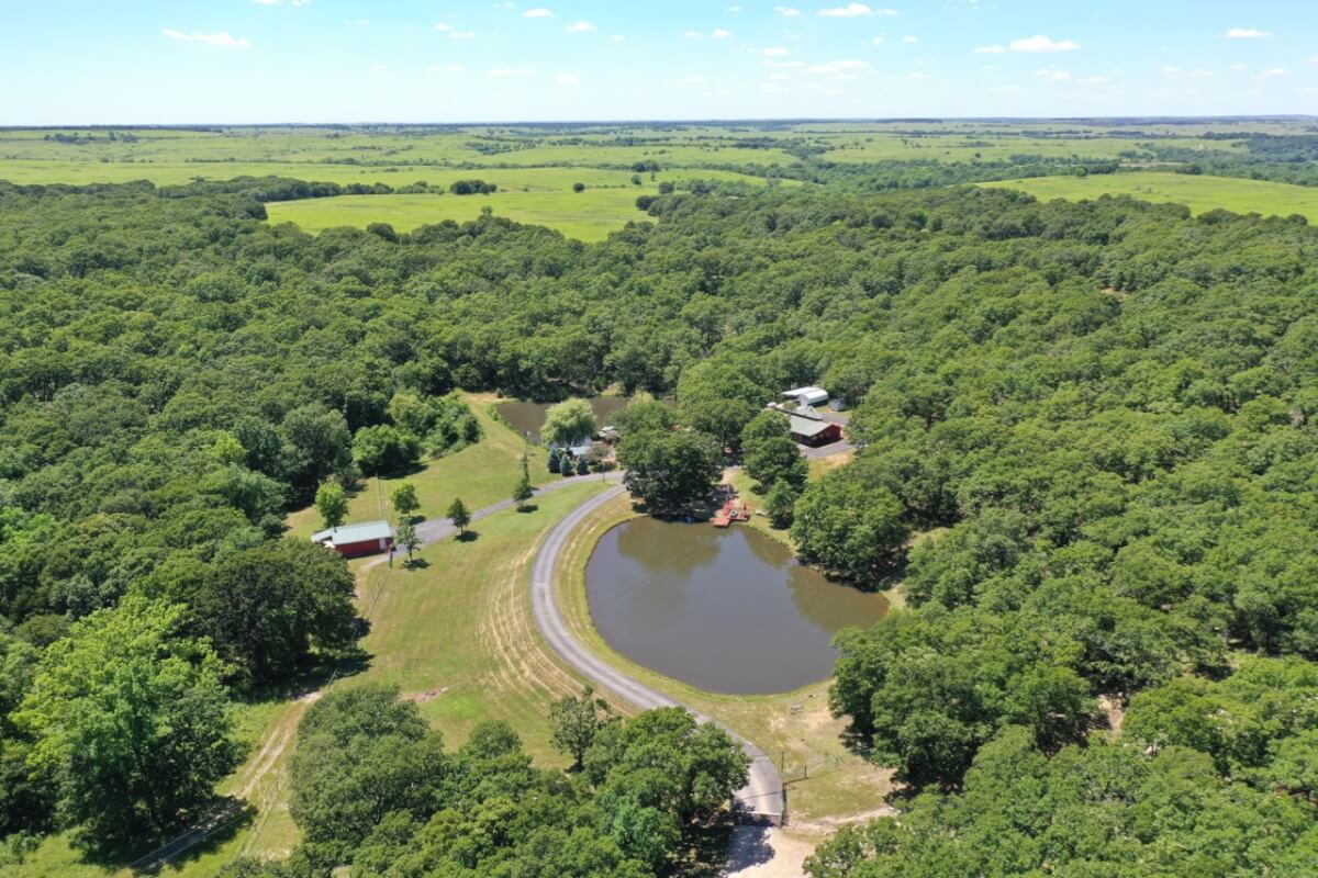 PROPERTY DESCRIPTION: 960+- acres of scenic retreat in the heart of the rolling hills of southeast Kansas. The main cabin is 1384 square feet currently set up with 3 bedrooms plus an additional bunk room. Furnishings, decor, and updates are all very tasteful and attractive. Enjoy both the interior and exterior fireplaces on a cool evening or during the heart of winter. Other amenities include steam shower, backup generator, reverse osmosis water filtration, and the list goes on and on!! The pool house has a native limestone wood burning fireplace, full bath, and an amazing view the native stone infinity pool, hot tub, and fishing pond.  Step right out the back door onto the dock and fish or jump in for a swim, then step into the outdoor shower to rinse off! Several additional buildings offer storage for vehicles, ATV’s, and gear. With two nice fishing ponds directly outside your front door, you won’t have an excuse not to fish!