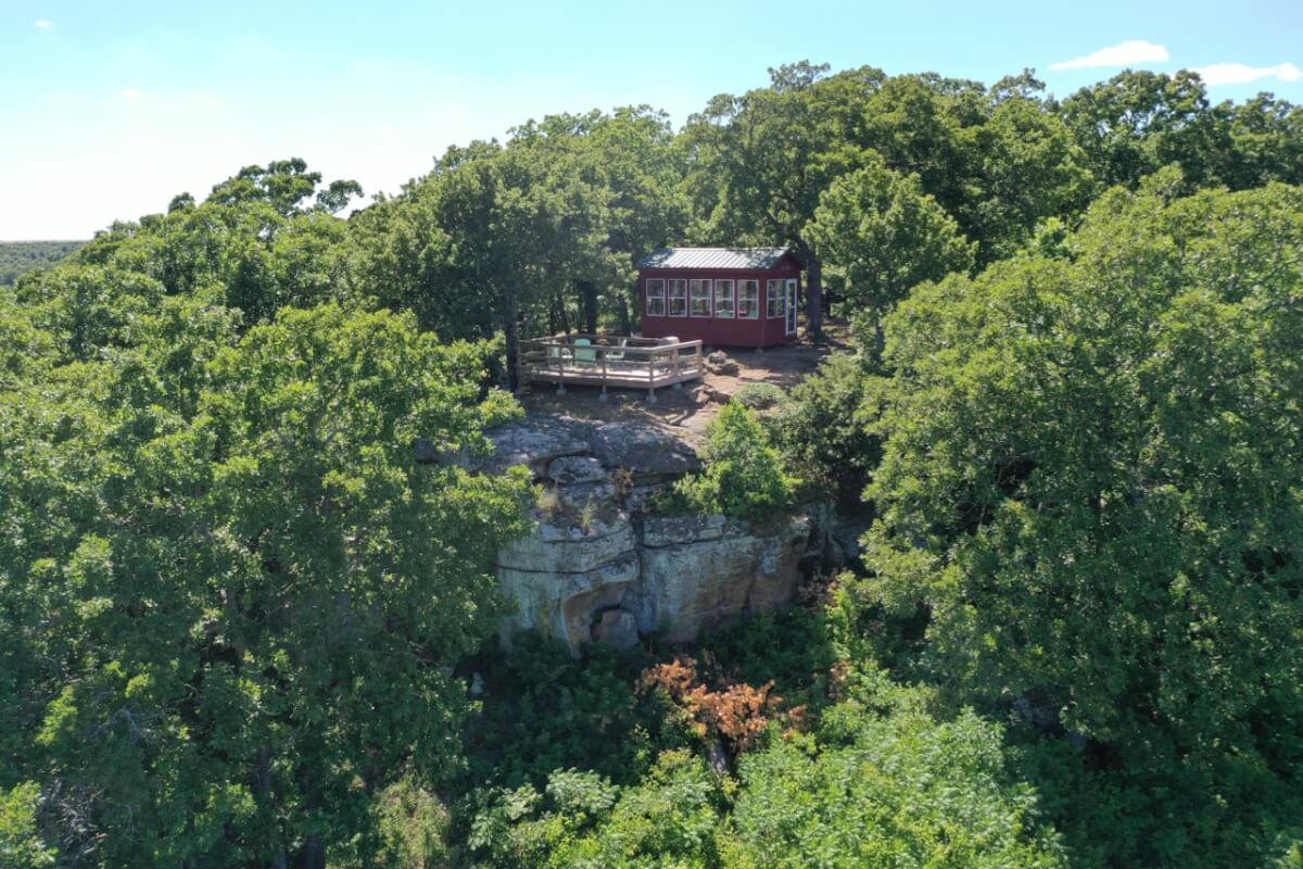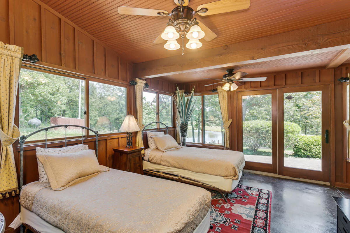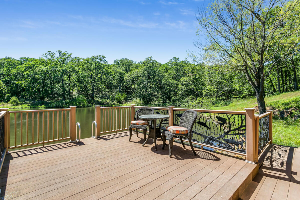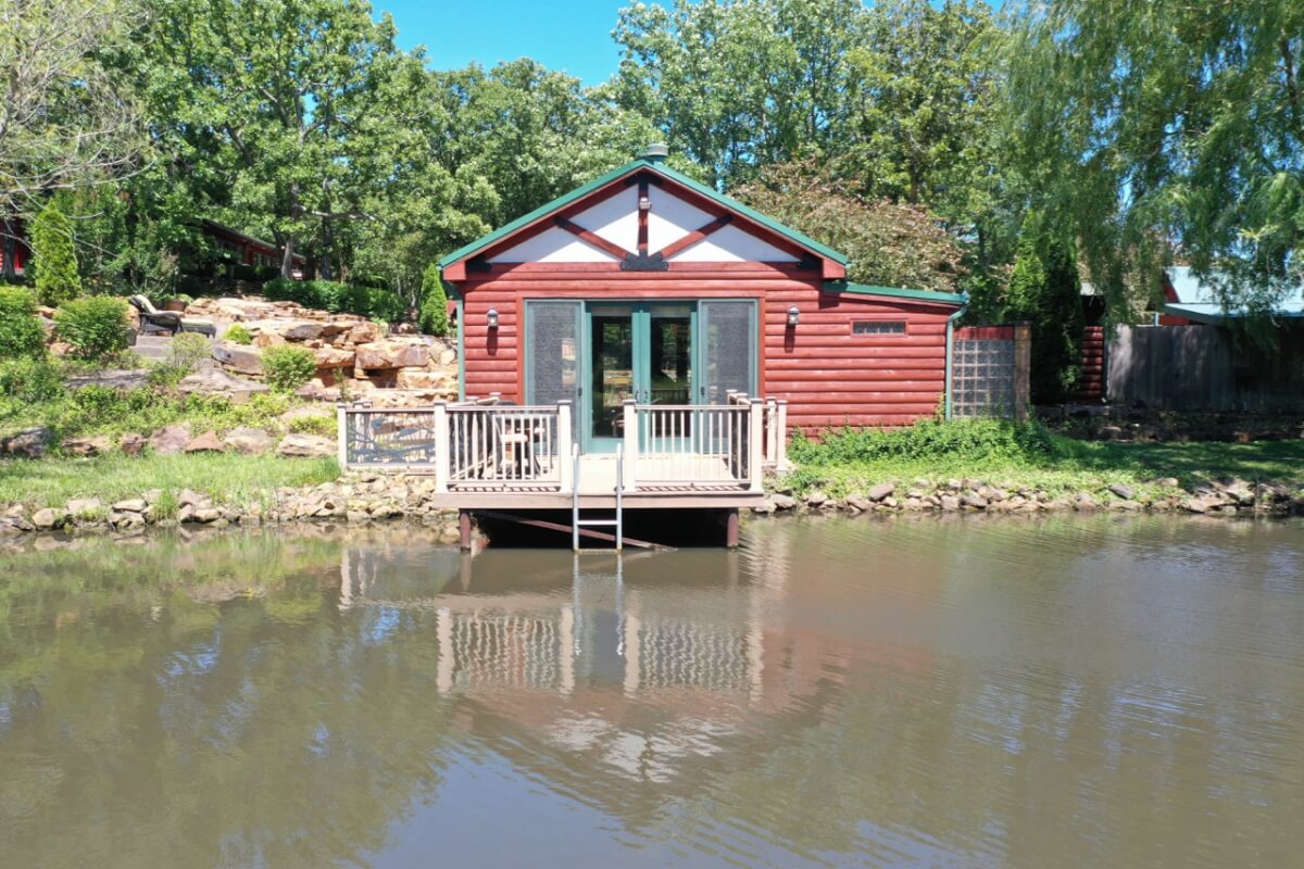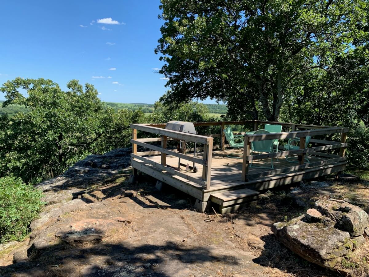 PROPERTY DESCRIPTION: 960+- acres of scenic retreat in the heart of the rolling hills of southeast Kansas. The main cabin is 1384 square feet currently set up with 3 bedrooms plus an additional bunk room. Furnishings, decor, and updates are all very tasteful and attractive. Enjoy both the interior and exterior fireplaces on a cool evening or during the heart of winter. Other amenities include steam shower, backup generator, reverse osmosis water filtration, and the list goes on and on!! The pool house has a native limestone wood burning fireplace, full bath, and an amazing view the native stone infinity pool, hot tub, and fishing pond.  Step right out the back door onto the dock and fish or jump in for a swim, then step into the outdoor shower to rinse off! Several additional buildings offer storage for vehicles, ATV’s, and gear. With two nice fishing ponds directly outside your front door, you won’t have an excuse not to fish!
