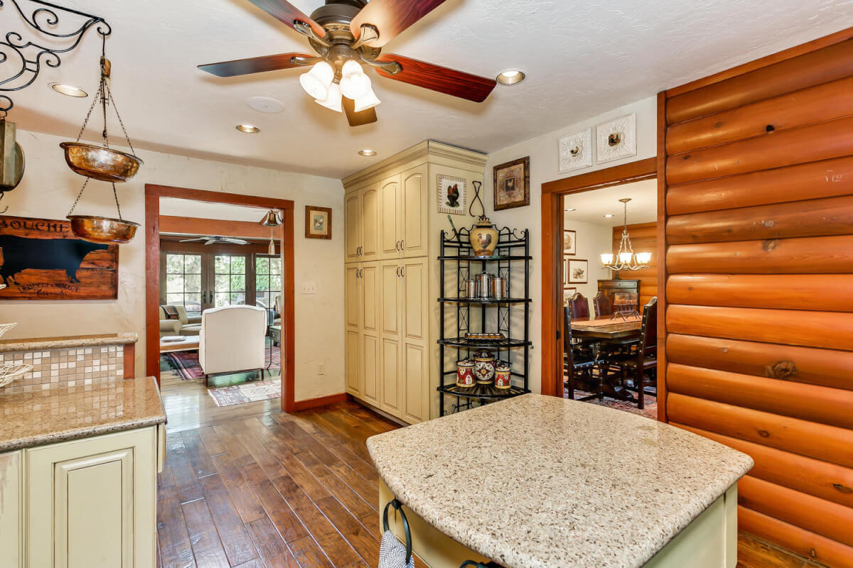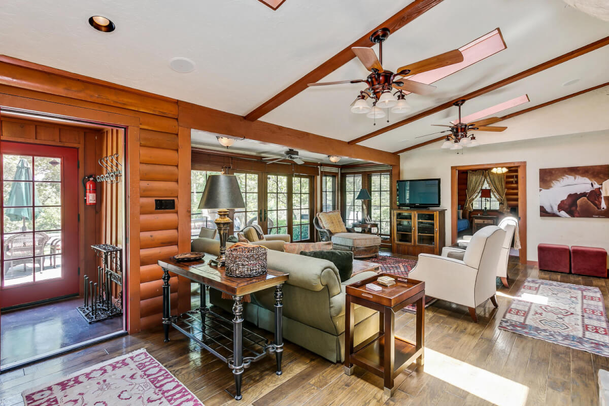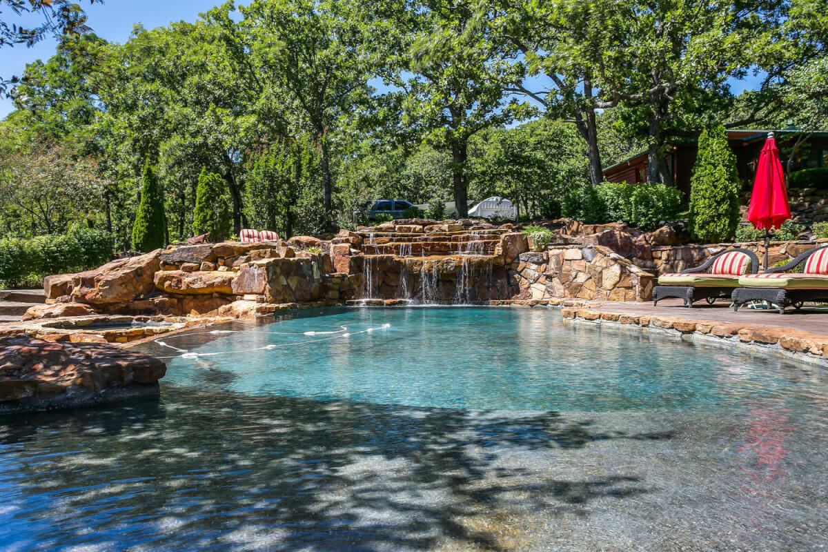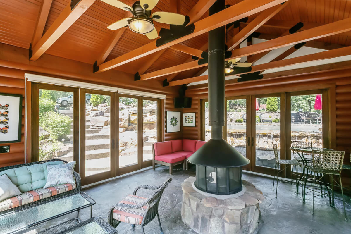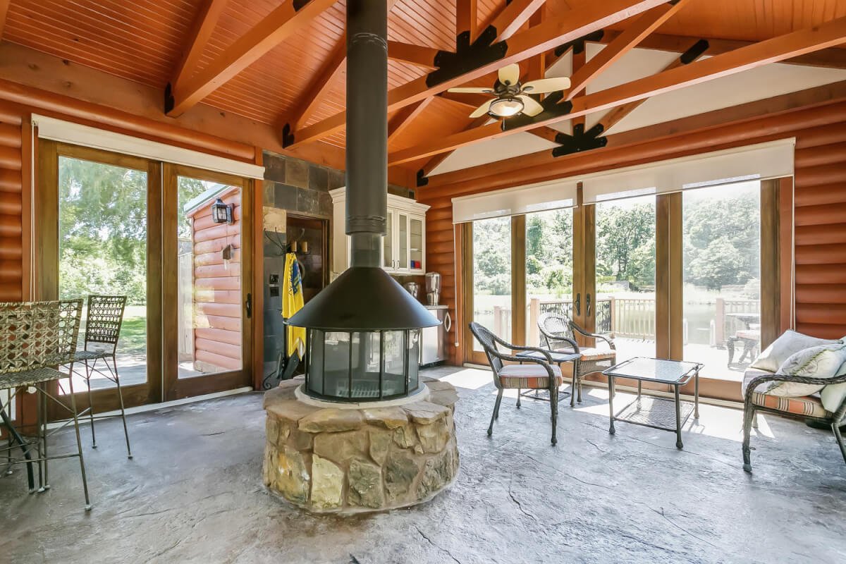 PROPERTY DESCRIPTION: 960+- acres of scenic retreat in the heart of the rolling hills of southeast Kansas. The main cabin is 1384 square feet currently set up with 3 bedrooms plus an additional bunk room. Furnishings, decor, and updates are all very tasteful and attractive. Enjoy both the interior and exterior fireplaces on a cool evening or during the heart of winter. Other amenities include steam shower, backup generator, reverse osmosis water filtration, and the list goes on and on!! The pool house has a native limestone wood burning fireplace, full bath, and an amazing view the native stone infinity pool, hot tub, and fishing pond.  Step right out the back door onto the dock and fish or jump in for a swim, then step into the outdoor shower to rinse off! Several additional buildings offer storage for vehicles, ATV’s, and gear. With two nice fishing ponds directly outside your front door, you won’t have an excuse not to fish!