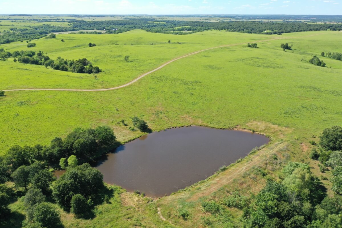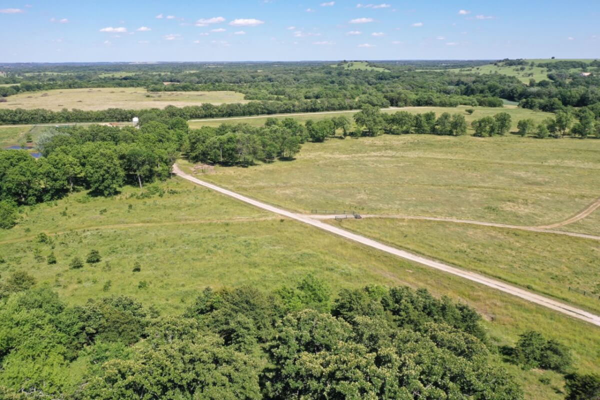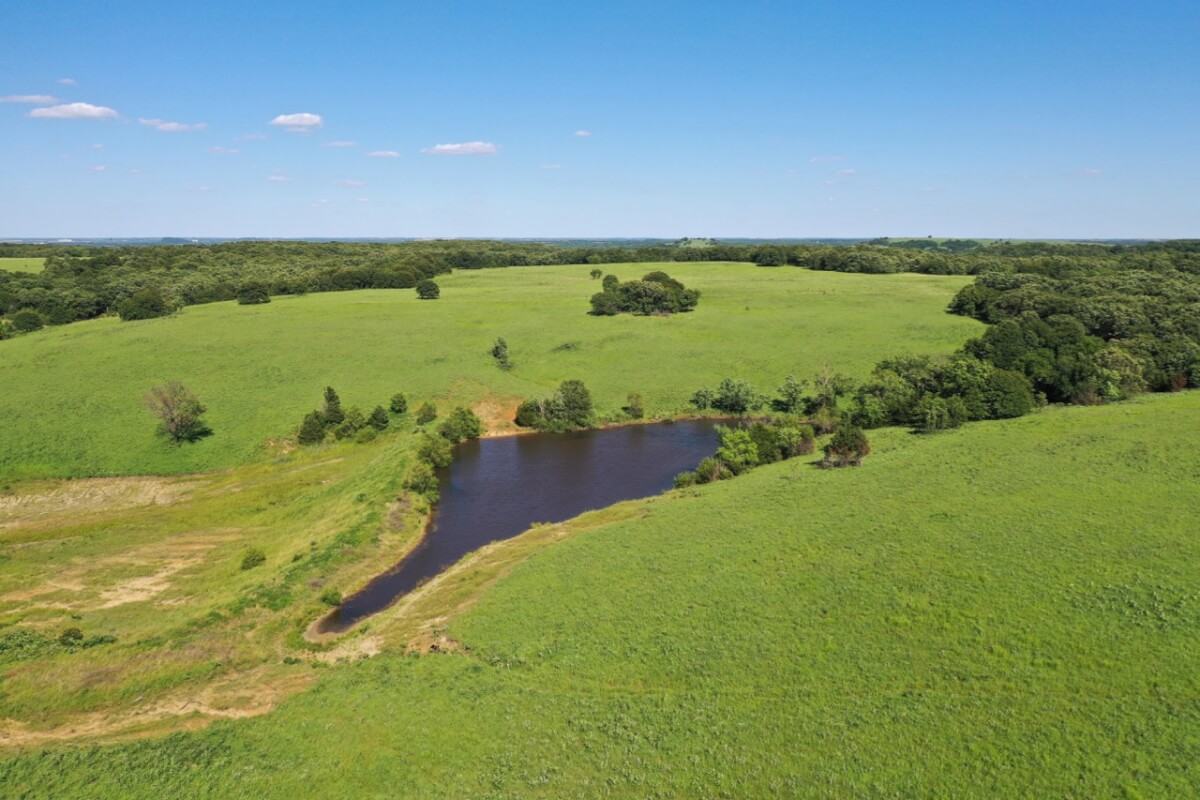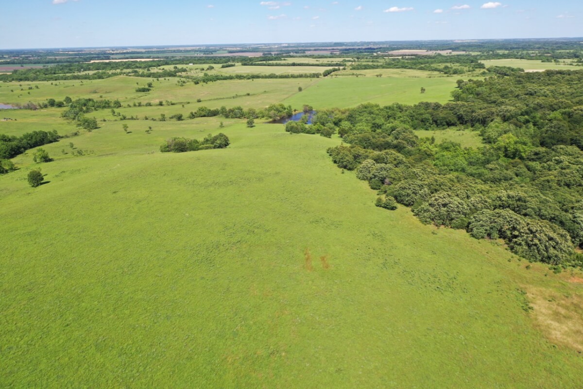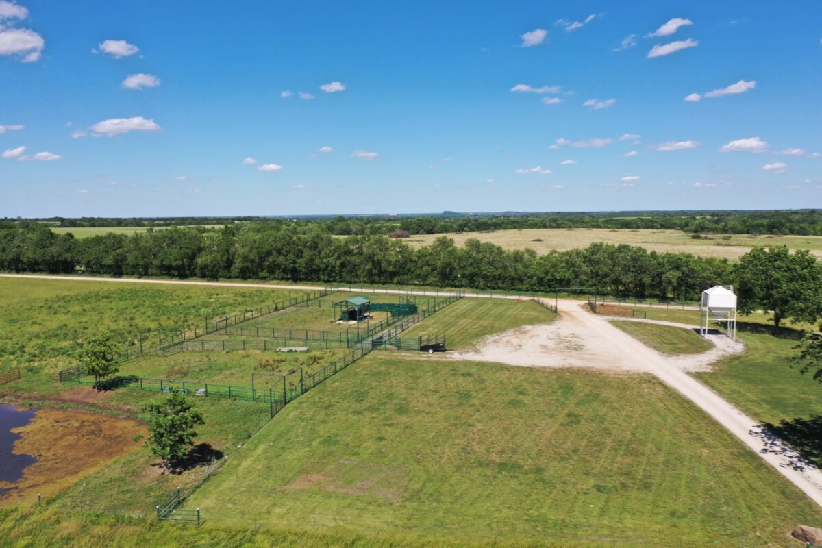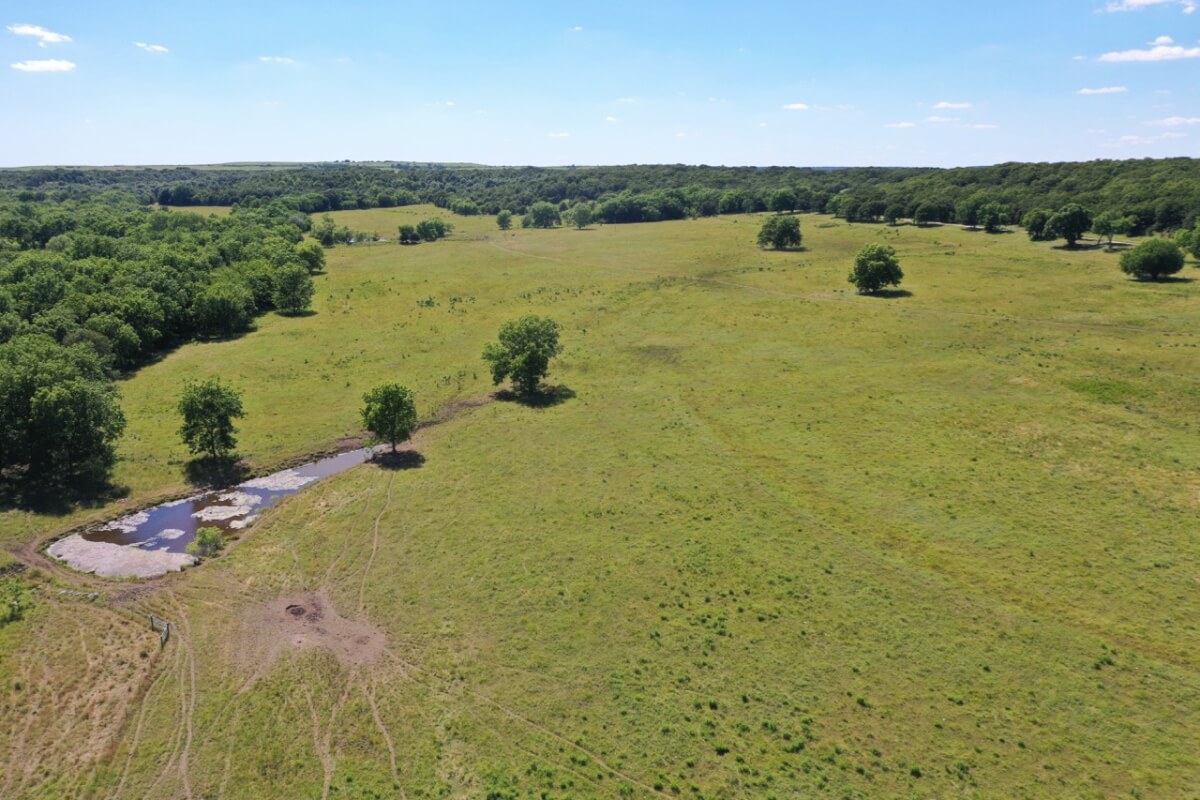 LAND, HUNTING, & CATTLE GRAZING: Diversity is the perfect word to describe this ranch! From the large rolling hills to the heavy timber, you have the opportunity to participate in agriculture production and hunting recreation that is often hard to find in such a perfect combination. 8 food plots are fenced off and strategically located around the ranch, each with a box blind and a bow blind. Large, rocky, timber covered draws offer habitat and cover for all forms of wildlife, including Kansas Whitetail Deer and Turkey. Quail are abundant, and the south food plot is specifically designed for top quality Turtle Dove hunting. 14 total ponds offer a combination of fishing and water for wildlife/livestock. There is a 450 yard shooting range with targets at every 50 yards complete with a covered shooting building. Timber includes American Oak, Pecan, Walnut as well as various other trees and brush.