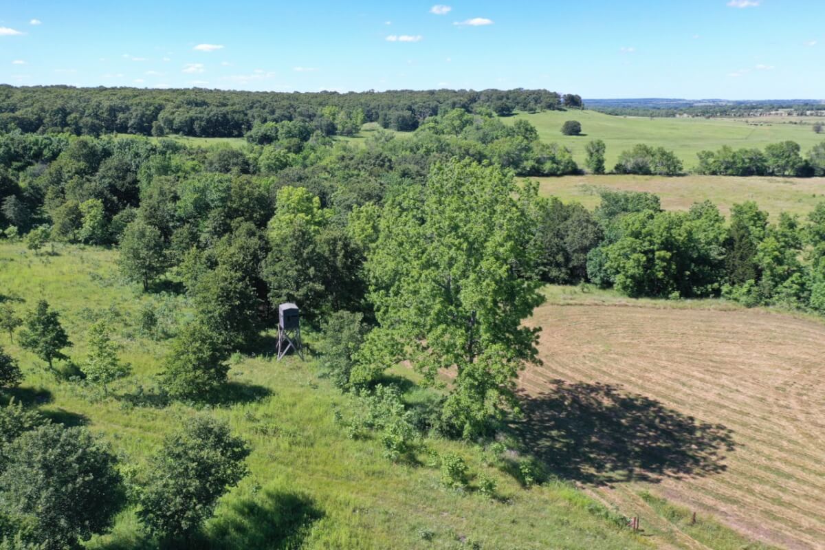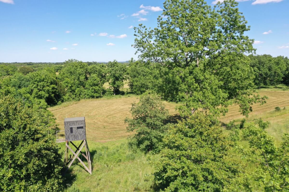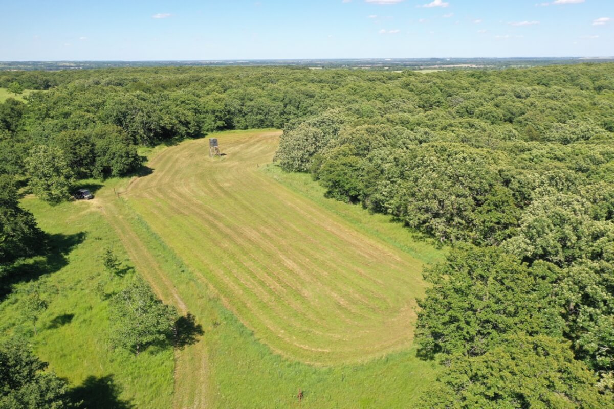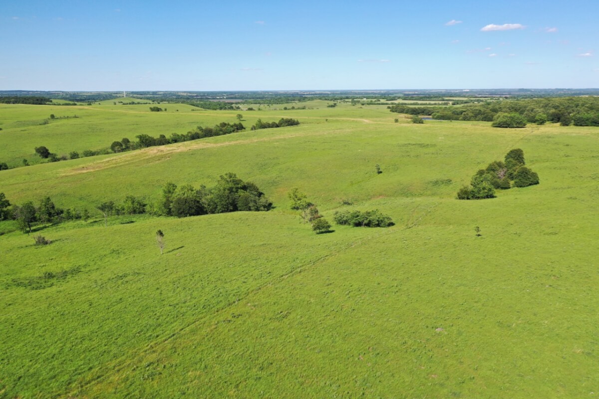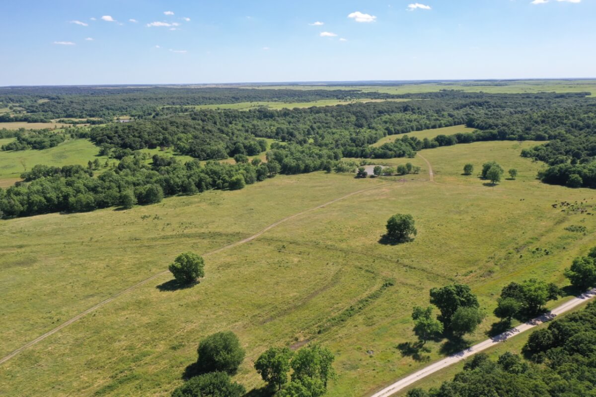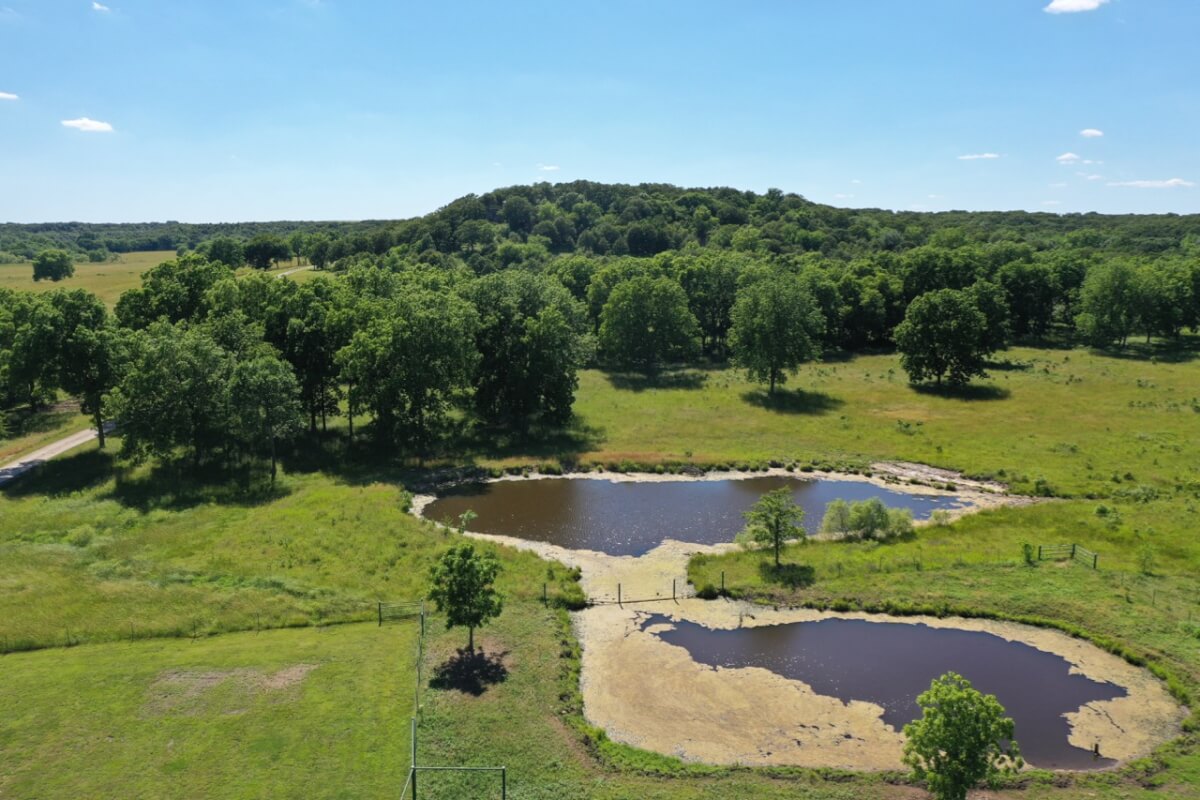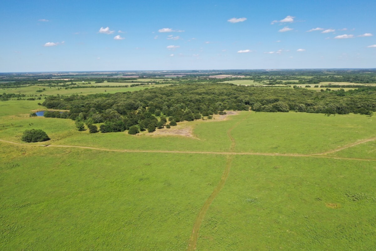 LAND, HUNTING, & CATTLE GRAZING: Diversity is the perfect word to describe this ranch! From the large rolling hills to the heavy timber, you have the opportunity to participate in agriculture production and hunting recreation that is often hard to find in such a perfect combination. 8 food plots are fenced off and strategically located around the ranch, each with a box blind and a bow blind. Large, rocky, timber covered draws offer habitat and cover for all forms of wildlife, including Kansas Whitetail Deer and Turkey. Quail are abundant, and the south food plot is specifically designed for top quality Turtle Dove hunting. 14 total ponds offer a combination of fishing and water for wildlife/livestock. There is a 450 yard shooting range with targets at every 50 yards complete with a covered shooting building. Timber includes American Oak, Pecan, Walnut as well as various other trees and brush.