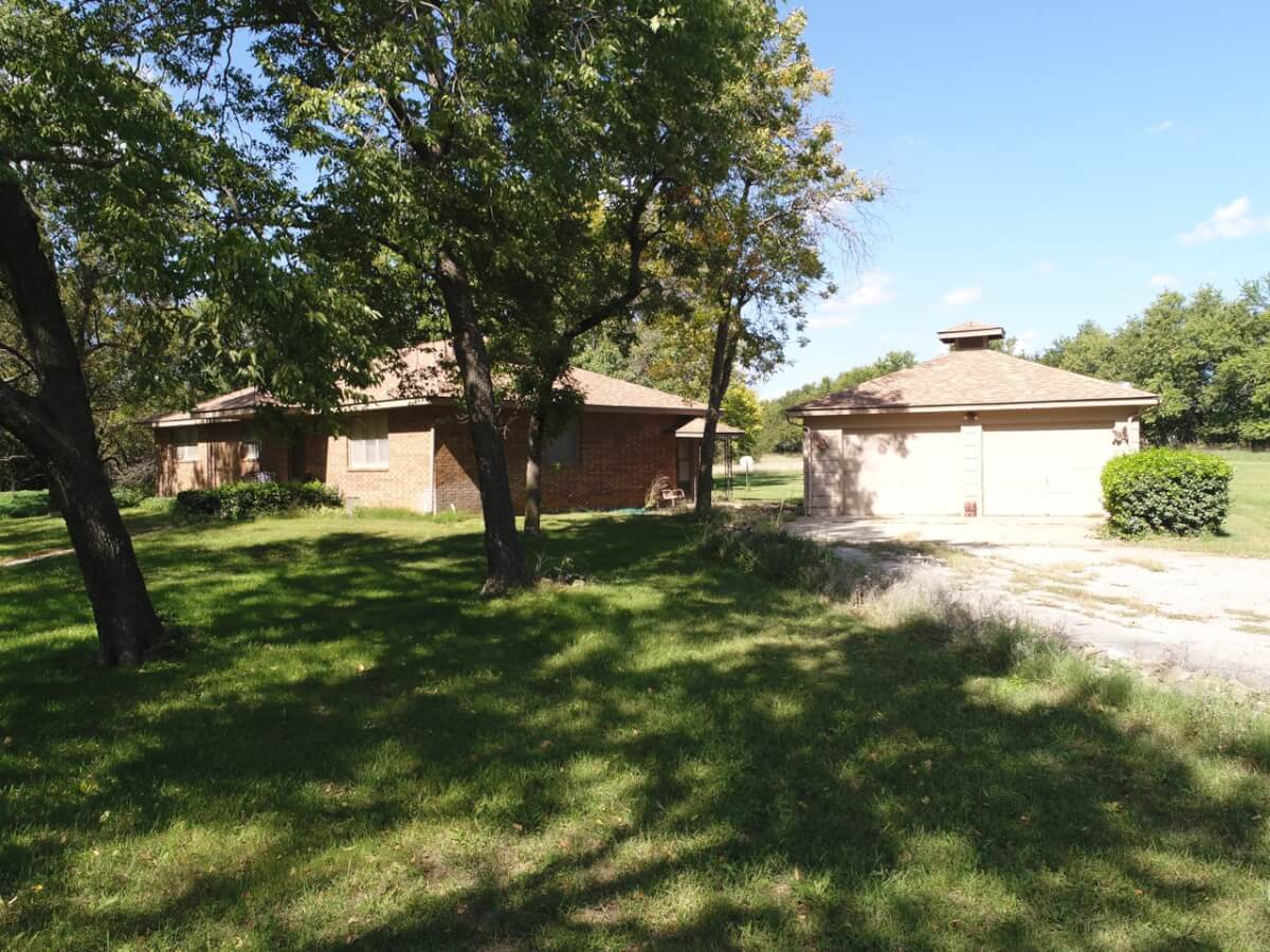PROPERTY DESCRIPTION: 3 bedroom 2 bath brick house on 13.27 acres of timber, pasture, and creek. The house was built in 1983, has rural water, and central heat & air. There are 1852 square feet of main floor finished living area and a full unfinished basement. Other buildings include a 24′ x 24′ detached garage, a storage building, and an old machine shop. This property is a great opportunity for both owner occupants and investors. With some updates and repairs, there is a lot of room for increased equity.