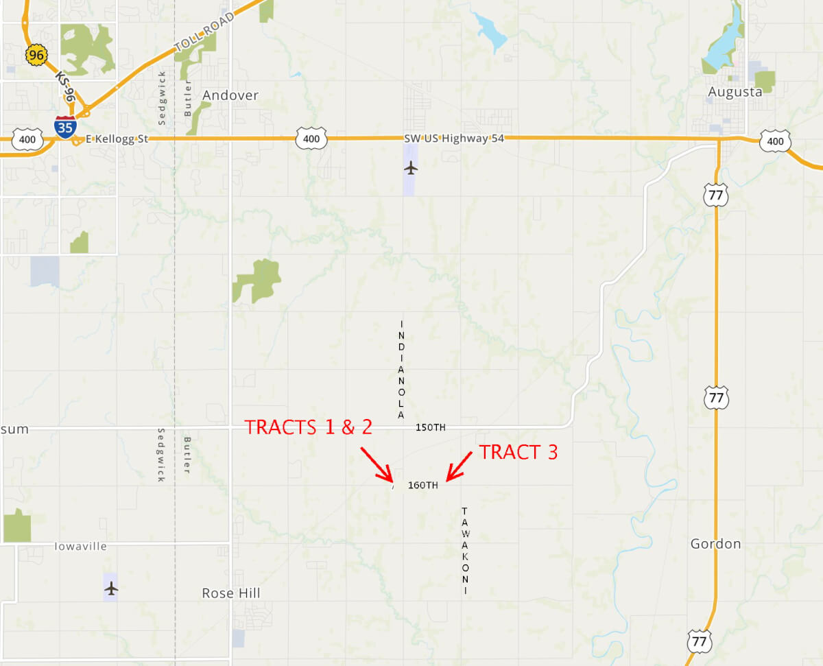 Brick Home & 234 Acres Between Andover, Rose Hill, & Augusta-3 Tracts