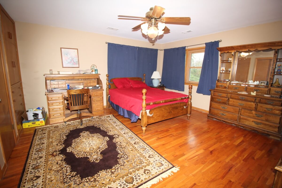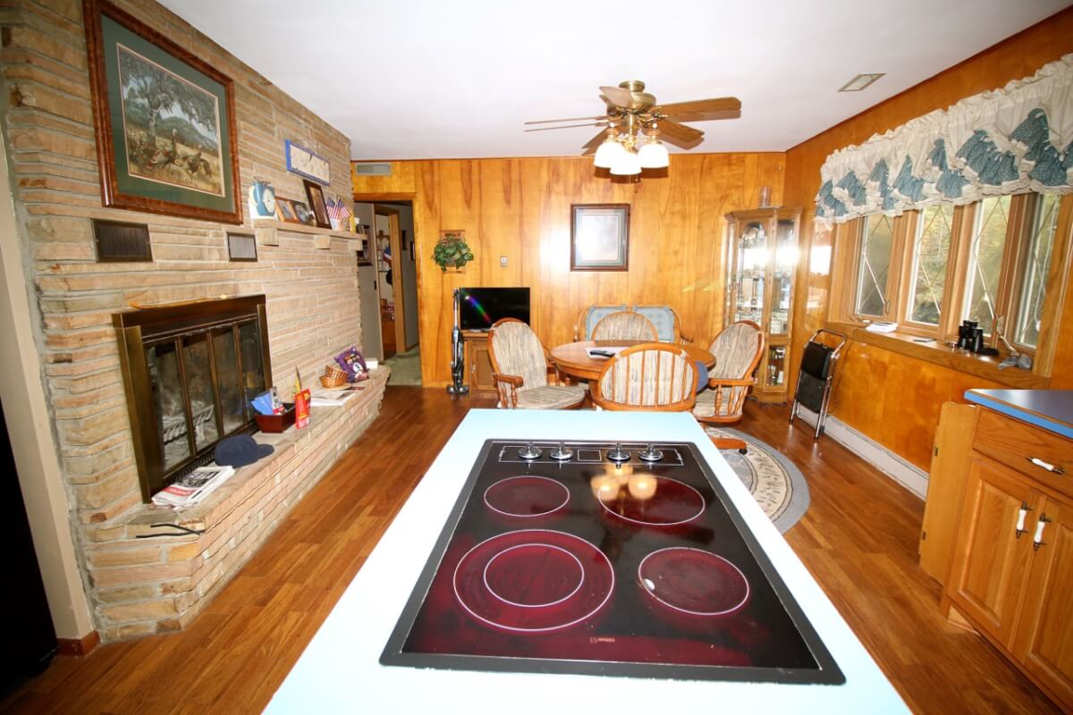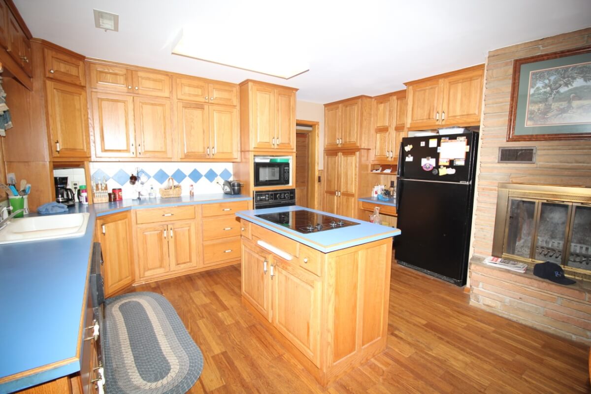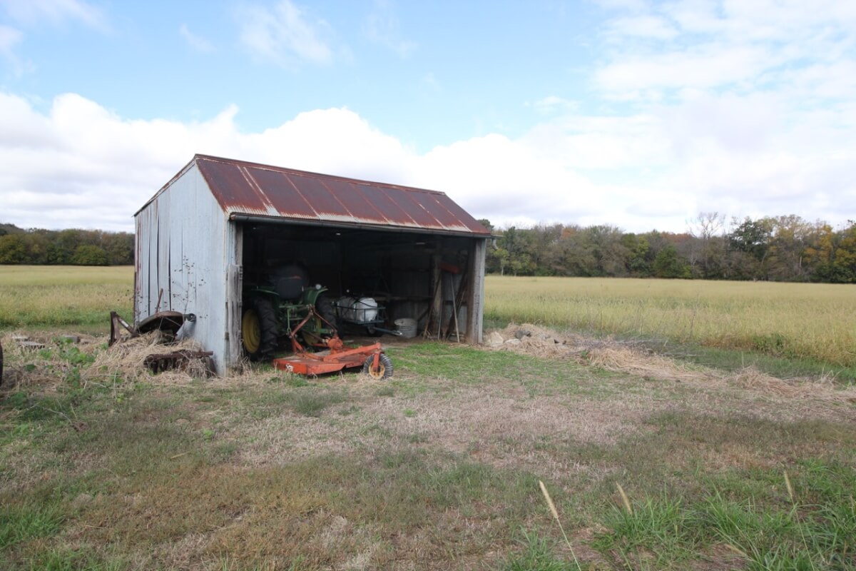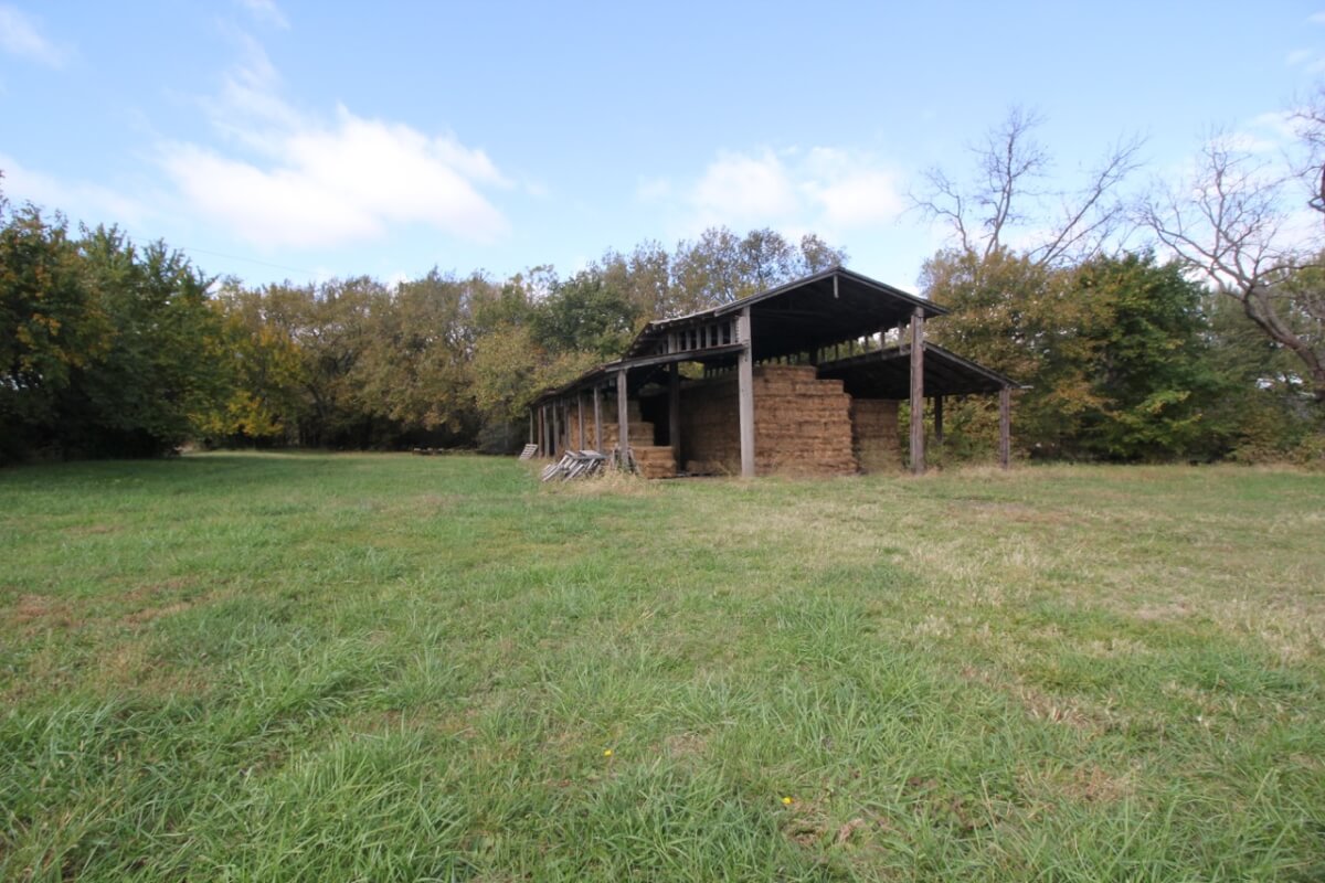 IMPROVEMENTS: Great all brick ranch style home on 50+- acres just north of El Dorado, Kansas with blacktop frontage. Interior amenities include 3 fireplaces, 3 bedrooms, 2 bathrooms, living room & formal dining combination, eating area in the kitchen, and an attic fan in the enclosed breezeway. The full basement features a kitchenette and large wide open space. A nice large 2 car attached garage provides good built in storage. Other improvements include a storage building, tools shed, and hay pole barn.