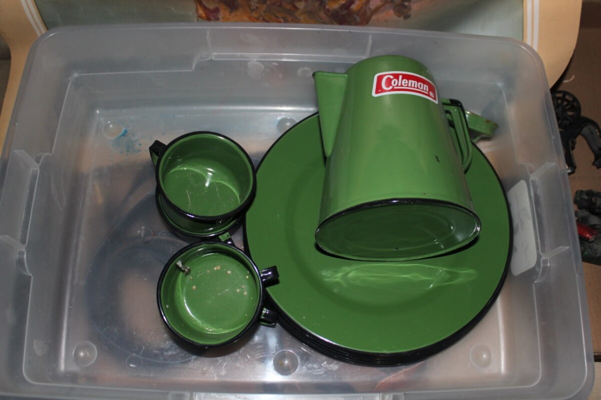 Coleman Plates, Cups, Coffeepot Set