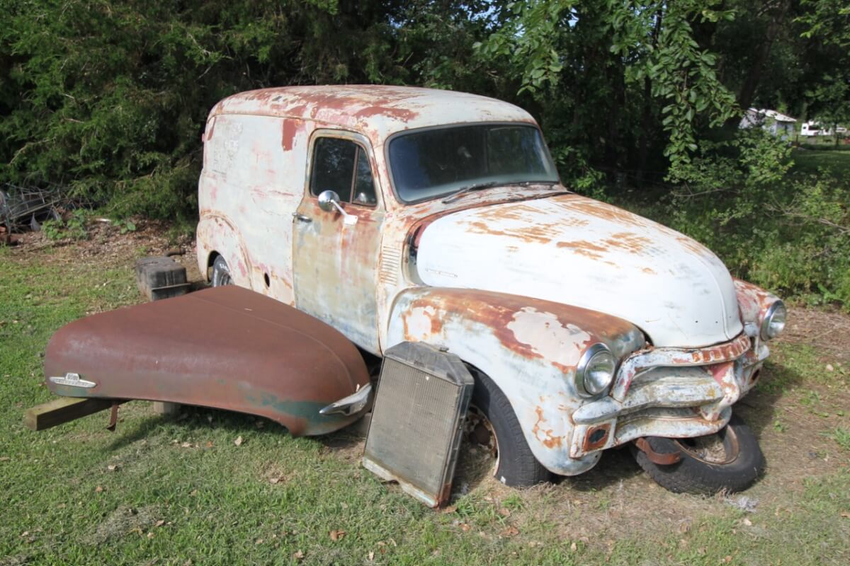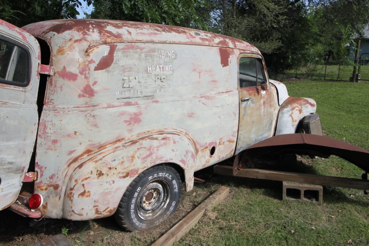 ’54 Chevrolet Panel Truck, No engine, floor intact