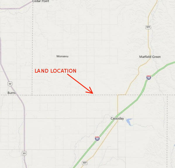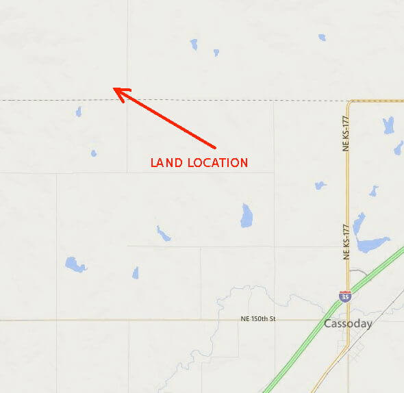 LAND LOCATION: From Cassoday, Ks West 4 miles on NE 150th St (1st St.) to Price Rd., North 2 miles to NE 170th St., East 1 mile to Munson Hill Rd., North 1 mile to the property.