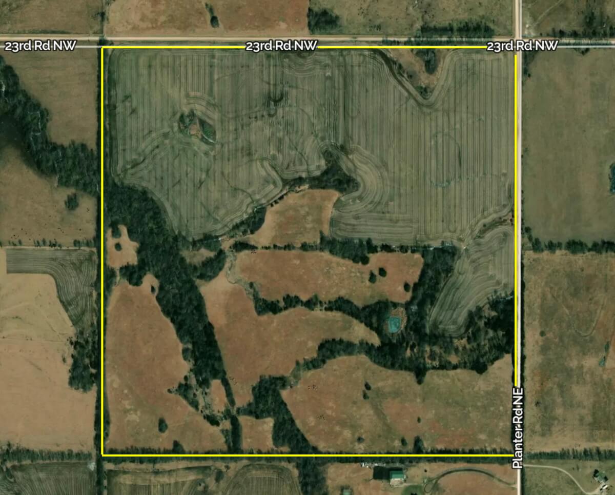 PROPERTY DESCRIPTION: 160+- acres of tillable, pasture, and timber with a pond and small creek located southwest of Waverly, Ks at the corner of Planter Rd and 23rd Rd. This diverse property offers a combination of agriculture uses with excellent recreation and wildlife habitat. There are 69.92 acres of tillable. Invest In Land!