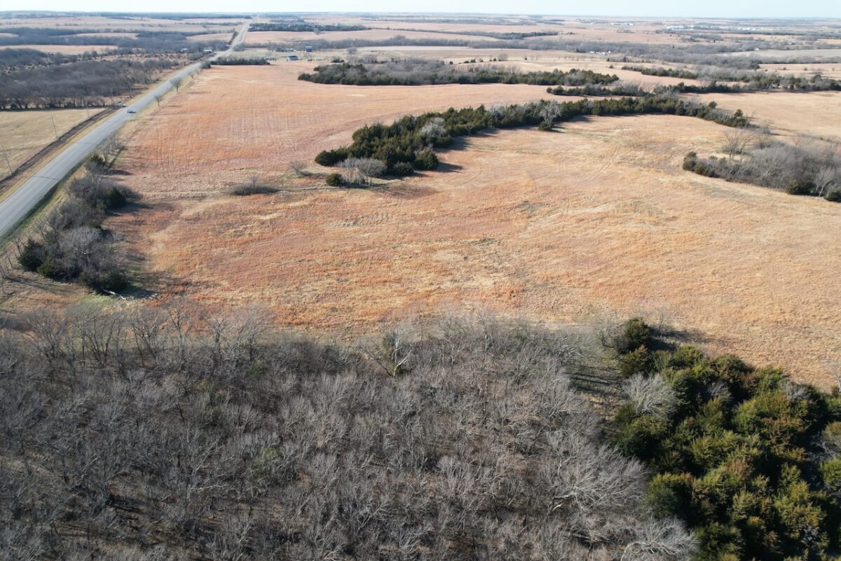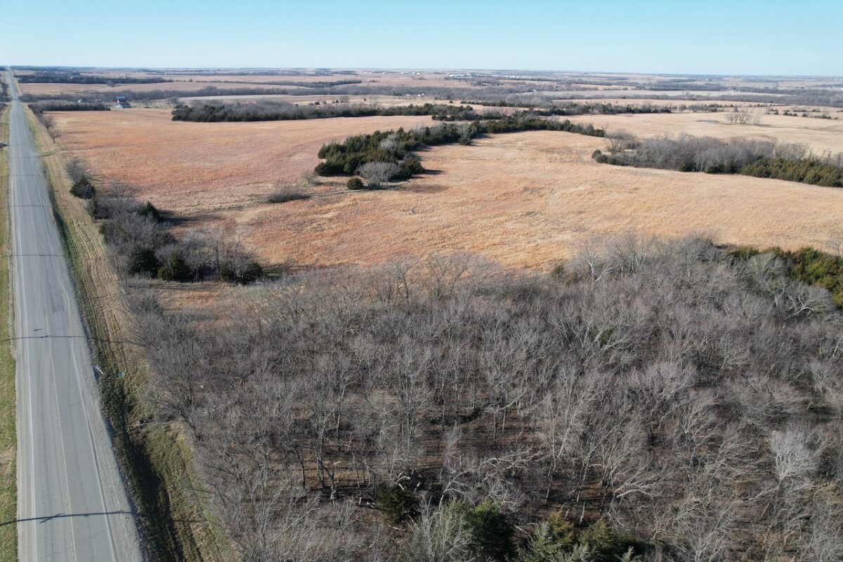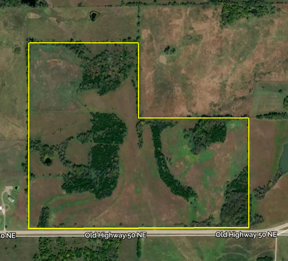 LAND LOCATION: From I-35 Exit 155 at Beto Junction, south on HWY 75 1 3/4 miles to Old HWY 50 (26th Rd), east 1 1/4 miles to the property.