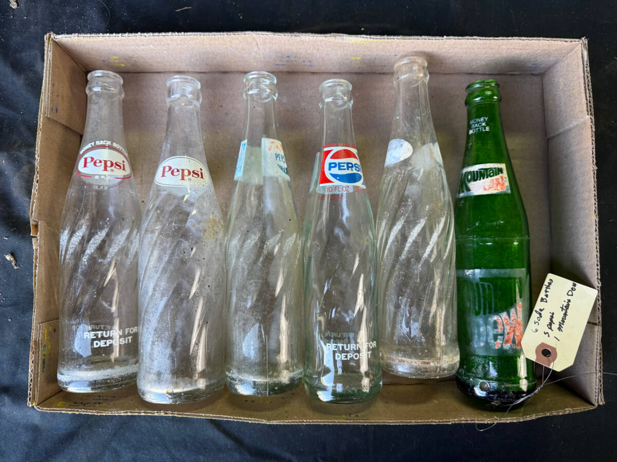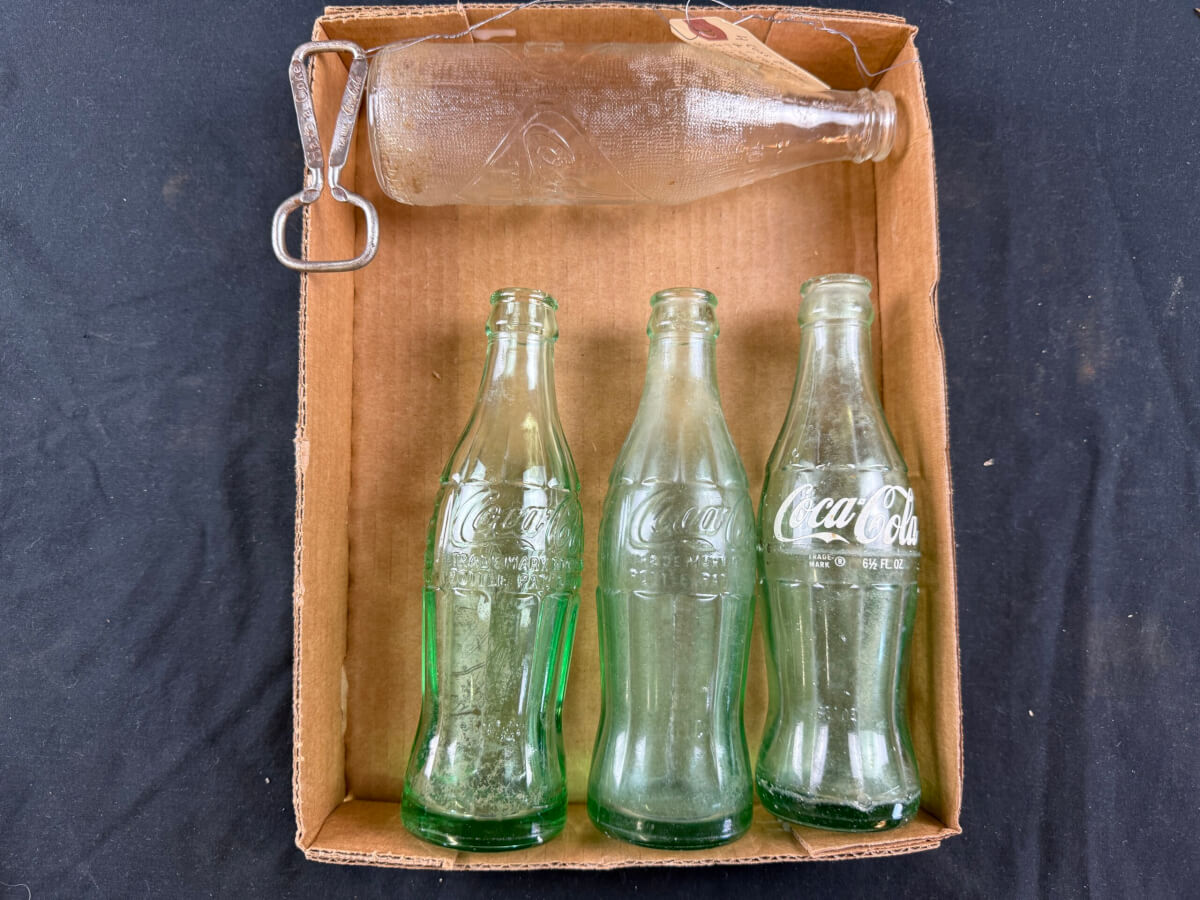 115 (6) Glass Bottles: (3) Coke, (2) Barq’s Root Beer, Nehi